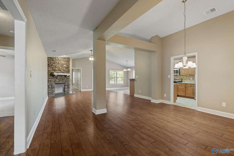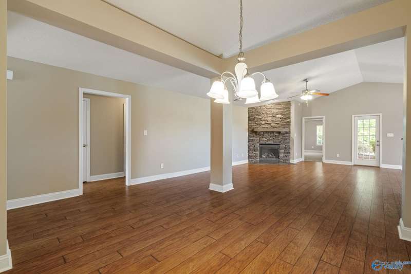 Located in a quiet cul-de-sac in Lanier Lakes neighborhood, this meticulously maintained 3BD/2BTH home offers perfect blend of comfort & function. Inviting floor plan features fresh paint, wood floors in main living areas, vaulted ceiling, & cozy vented gas fireplace. Spacious galley kitchen provides abundant cabinetry, functional flow, & separate breakfast area, while large dining room is ideal for family gatherings. Oversized primary suite boasts trey ceiling, double vanities, tile shower, jetted tub, & huge walk-in closet. Two additional bedrooms offer flexible living space. Enjoy a private backyard retreat with a covered patio and gorgeous, peaceful pond views!