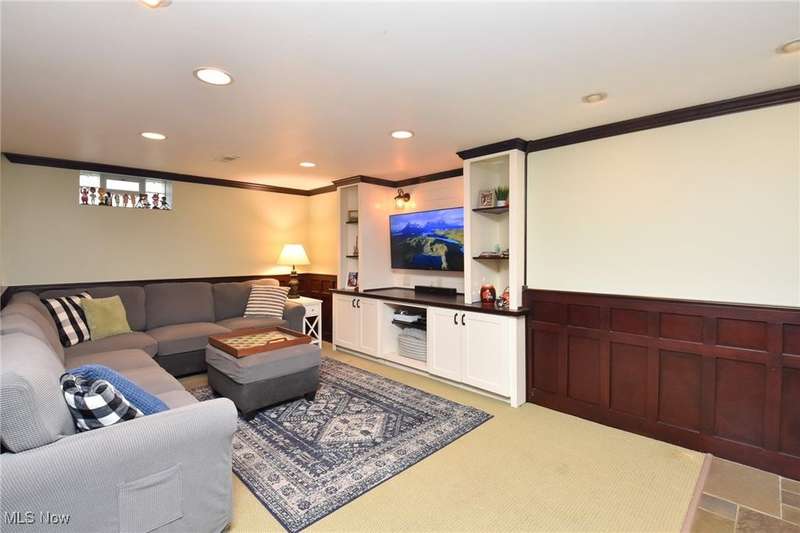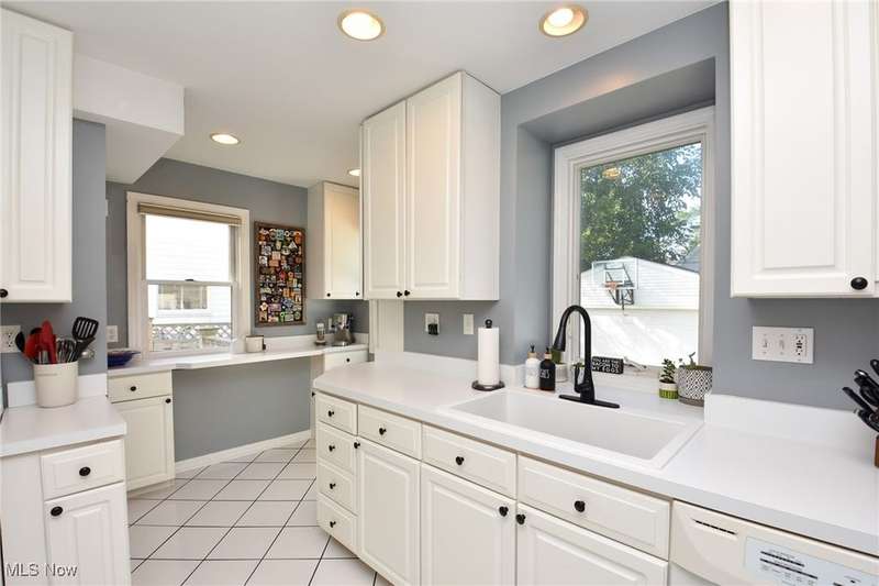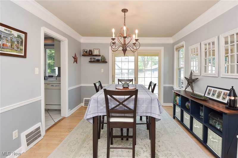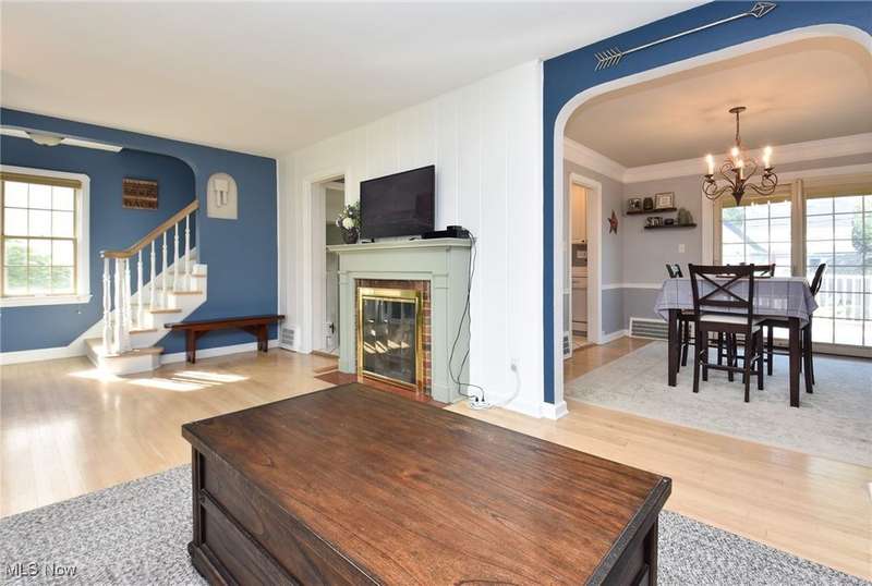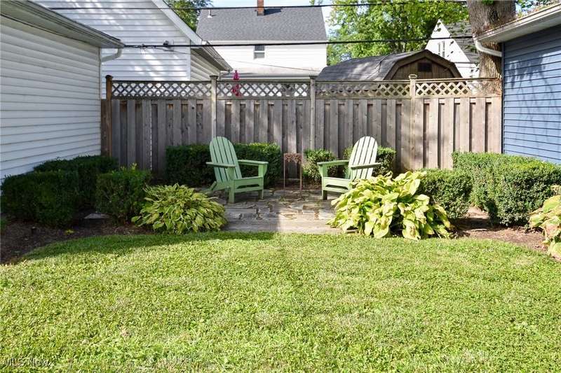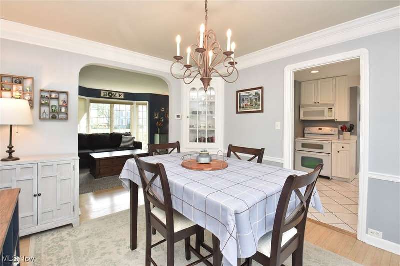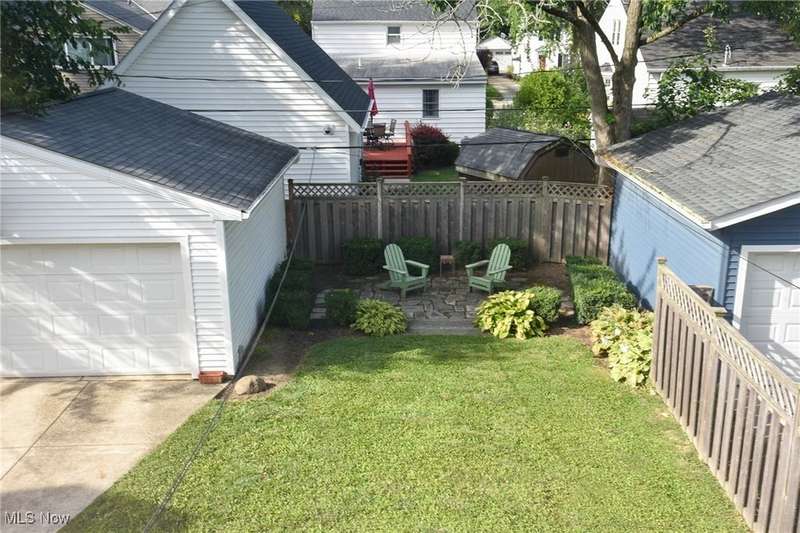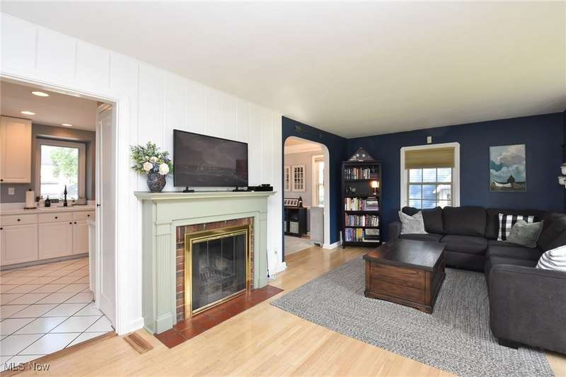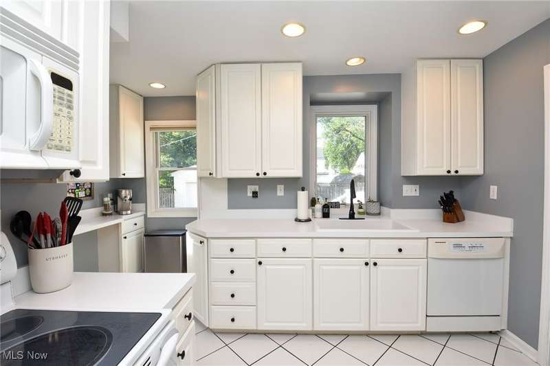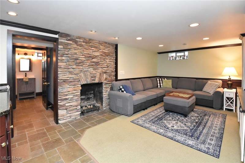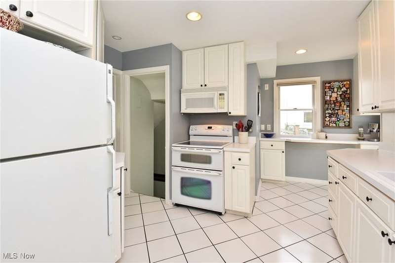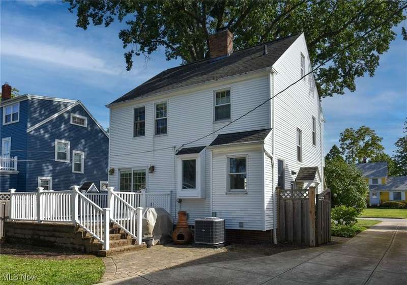 Bright and Welcoming! Situated in the popular "Library District" of Rocky River. Perfect marriage of classic and modern styles.Three bedrooms. One full plus two half baths. Living Room & Dining Room features include hardwood floors, fireplace, bay window & corner cabinet. Dining Room doors open to an inviting outdoor raised patio space. White kitchen cleverly designed with lots of windows, storage and a versatile breakfast bar/prep counter/workspace. Second floor bedrooms have built-ins and abundant closet space. Third floor full attic for storage or possible expansion! Remarkable, showstopper lower-level recreation room ready for game day (!) or relaxation! Very impressive. All appliances remain.Two car detached garage. Fenced & gated yard. Located a few short blocks from the library, schools, dining, shopping and downtownRocky River. Metro park entrance nearby.