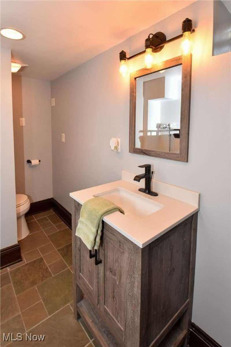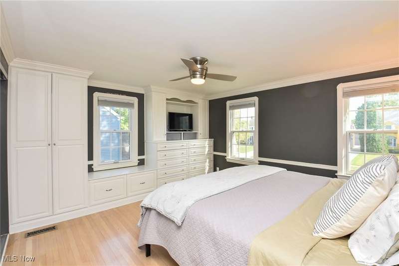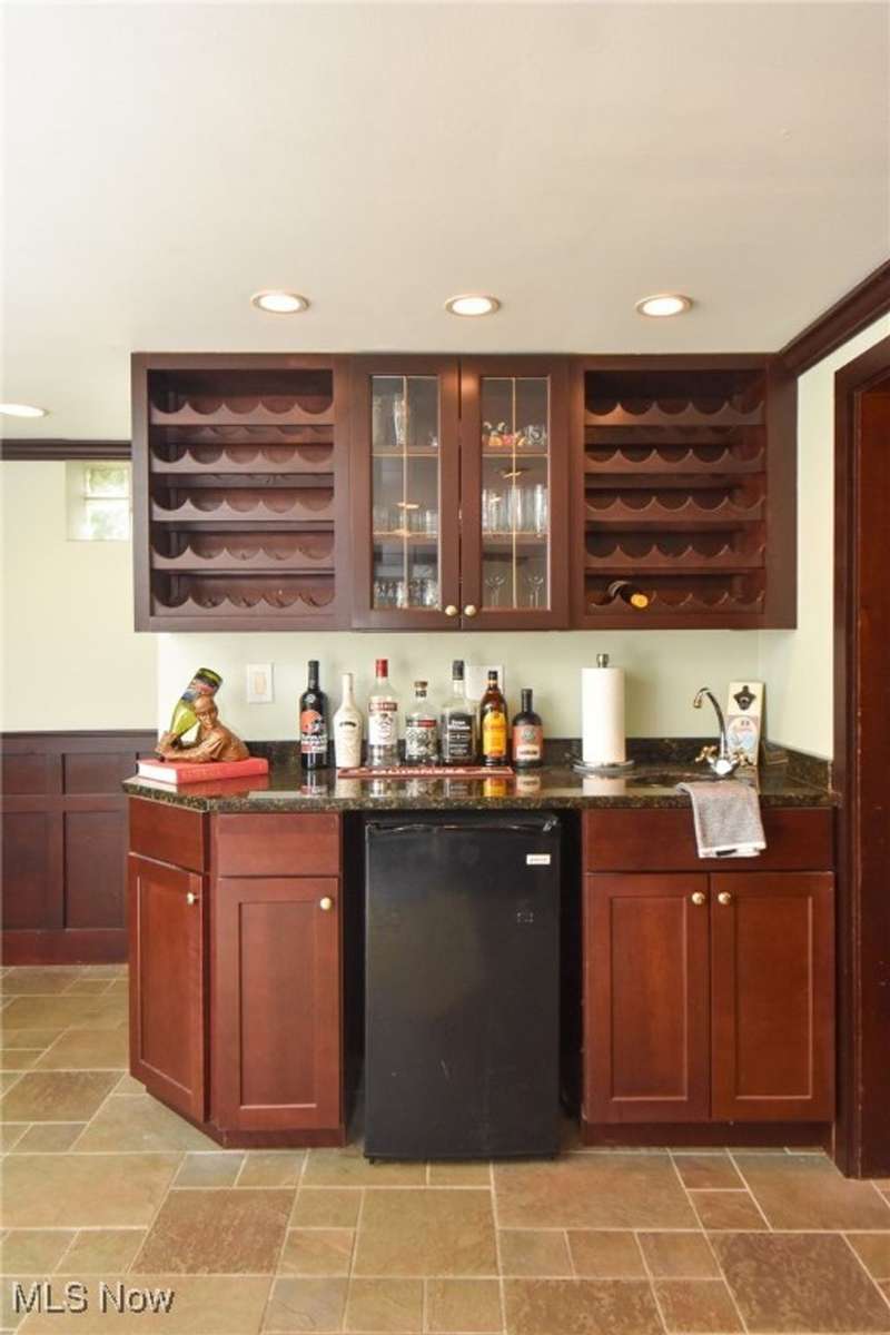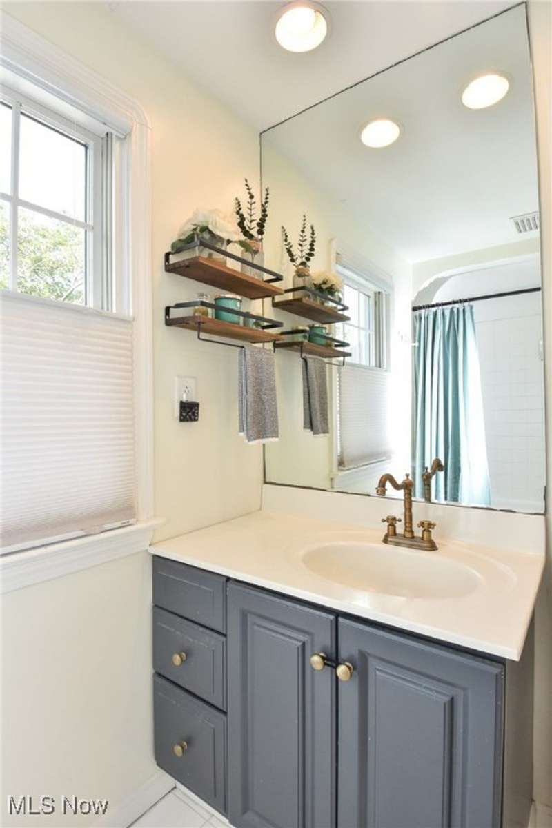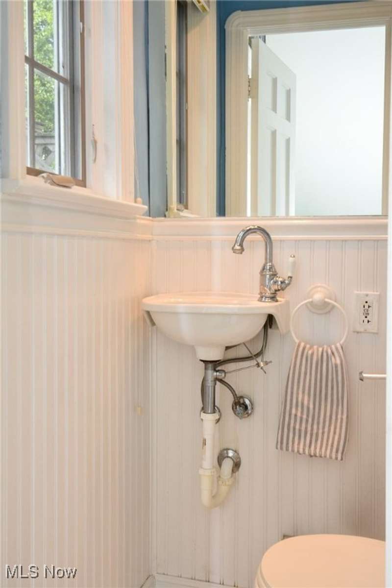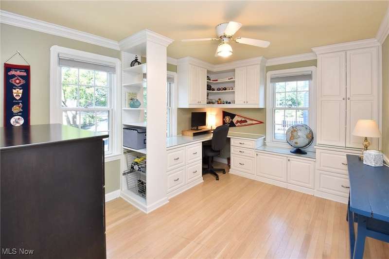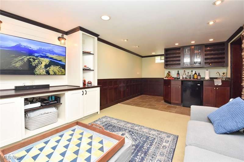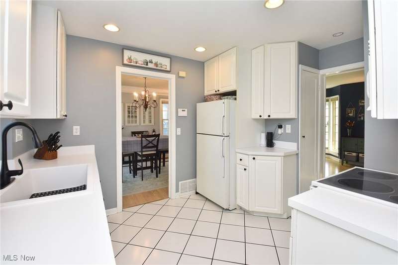Bright and Welcoming! Situated in the popular "Library District" of Rocky River. Perfect marriage of classic and modern styles.Three bedrooms. One full plus two half baths. Living Room & Dining Room features include hardwood floors, fireplace, bay window & corner cabinet. Dining Room doors open to an inviting outdoor raised patio space. White kitchen cleverly designed with lots of windows, storage and a versatile breakfast bar/prep counter/workspace. Second floor bedrooms have built-ins and abundant closet space. Third floor full attic for storage or possible expansion! Remarkable, showstopper lower-level recreation room ready for game day (!) or relaxation! Very impressive. All appliances remain.Two car detached garage. Fenced & gated yard. Located a few short blocks from the library, schools, dining, shopping and downtownRocky River. Metro park entrance nearby.