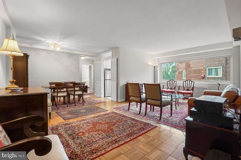 This is your chance to own a piece of coveted Chevy Chase in a stunning top-floor, end-unit at The Jocelyn House. This 958-square-foot, two-bedroom on bath home is bathed in natural light, offering serene, private nature views that feel miles away from the city hustle. Step inside and be instantly impressed: gorgeous wood floors, a fresh coat of paint, and a perfectly updated kitchen with crisp white cabinetry and brand-new stainless steel appliances. The spacious, open flow between the living and dining rooms is perfect for both relaxed weeknights and entertaining friends. It's move-in ready and truly has it all! Location, location, location! Everything you need is literally a stone's throw away: Grab groceries at Safeway, or meet friends at Starbucks. With the library, community center, and easy public transportation steps from your door, you get the quiet elegance of Chevy Chase with instant access to the entire city. Come Live the Jocelyn House Lifestyle!