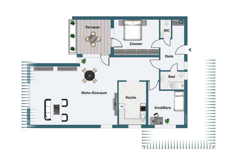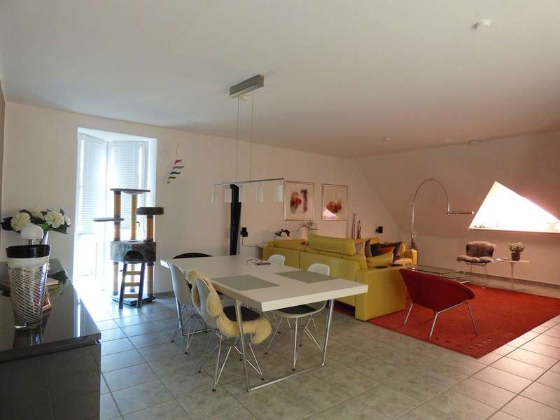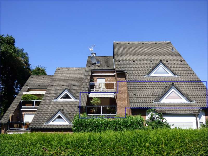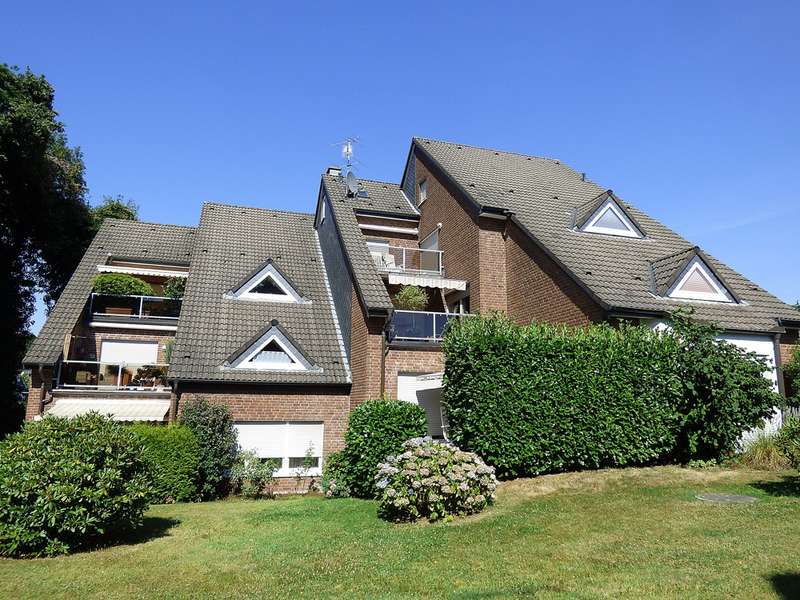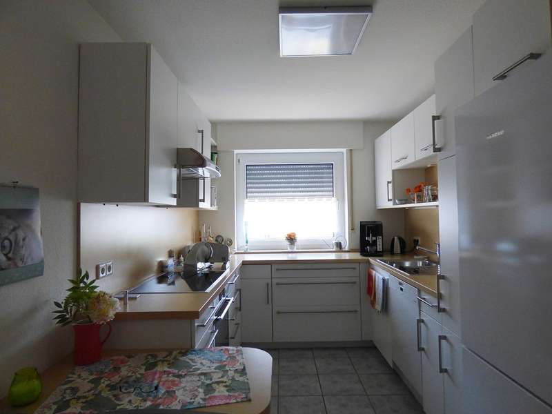 This attractive condominium is located in a well-maintained residential complex, consisting of two brick terraced 6-family houses. They were completed in 1994 on a leasehold plot. On the second floor (no elevator) approx. 97 m² living space are distributed on a wide, bright living-dining area with exit to the loggia, 1 bedroom with exit to the loggia, 1 further room, kitchen, daylight bathroom (bath + toilet), guest toilet as well as kitchen and hallway. A highlight of the apartment is the triangular window and the floor-to-ceiling triangular glass bay window in the living / dining area. The kitchen is equipped with a modern, white fitted kitchen. The daylight bathroom has a bathtub, toilet and sink. In the basement you have your own spacious storage room as well as a large laundry room and a general storage room, which is currently used as a spacious drying room, also available. The garage, which is located directly next to the house entrance, is included in the purchase price. It should be noted that the property and the garden are in a very well-kept condition. The apartment is rented since 01.11.2009 and generates a net cold rent of 8,040.00 €. The tenants have been informed about the sale. Arrange an appointment with me - I look forward to viewing this lovely apartment with you!