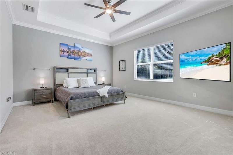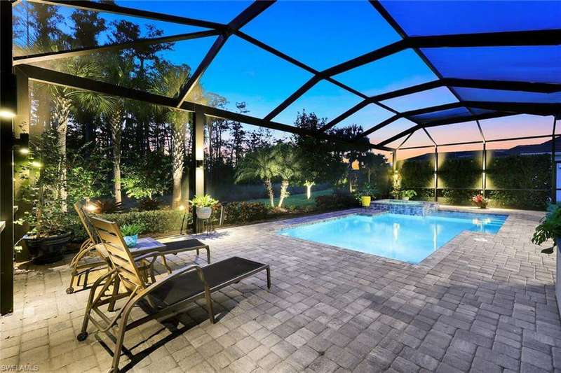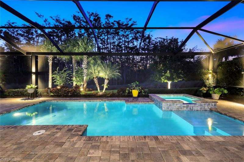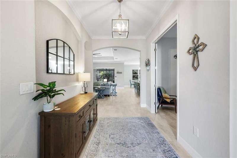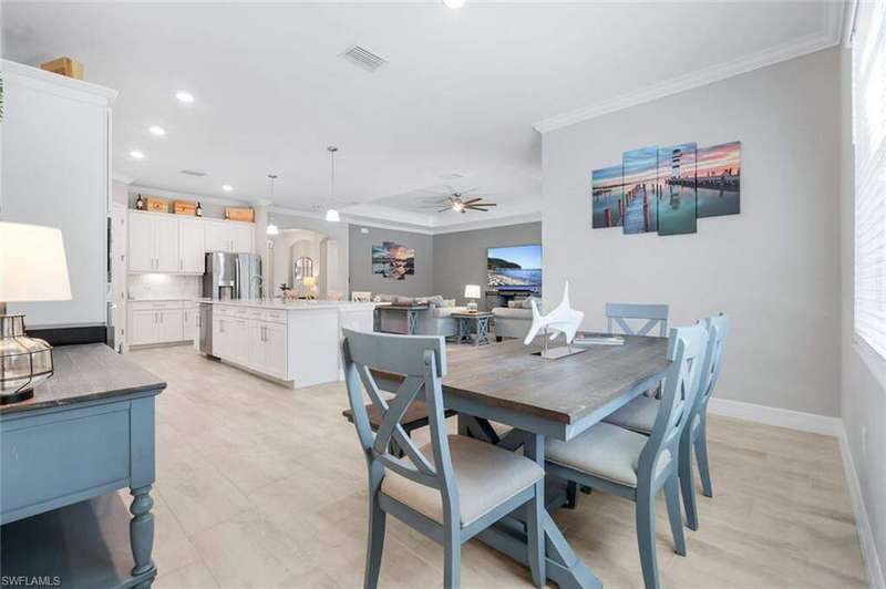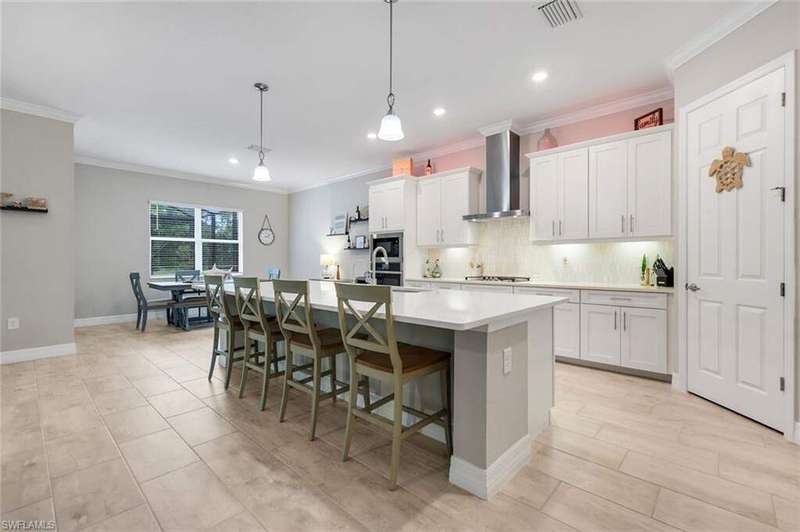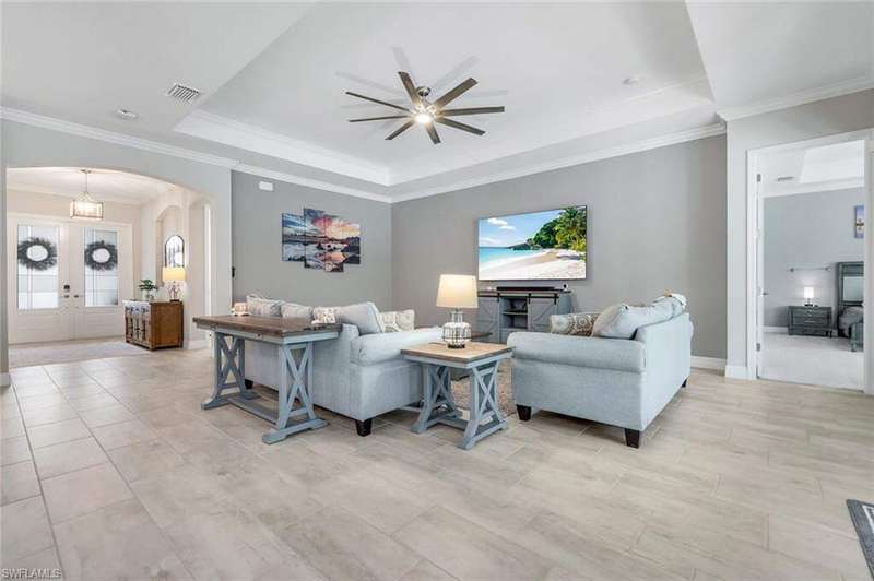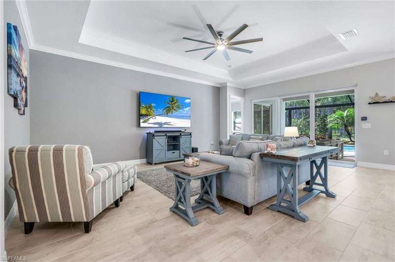 Welcome to 14841 Blue Bay Circle, an EXCEPTIONAL 3 Bedroom + Den, 3 Bath, 3 Car Garage residence located in the amenitie rich community WildBlue. Situated on a desirable Pie-shaped lot offering enhanced privacy and outdoor space, this FURNISHED Summerville floorplan showcases MODERN design, thoughtful upgrades, and seamless INDOOR-OUTDOOR living. The open-concept layout features a CHEF'S KITCHEN with an oversized QUARTZ island, Natural gas cooktop, and Stainless steel appliances, ideal for both daily living and Entertaining. The SPACIOUS living area flows effortlessly to the lanai, where a Heated Pool and Spa overlook beautifully maintained landscaping. The primary suite offers a tranquil retreat with grand master bath and generous walk-in closet. The home features AIR CONDITIONED 3 car GARAGE with epoxy flooring, insulated garage doors, and additional BUILD-IN STORAGE for optimal functionality. A whole-home WATER FILTRATION SYSTEM along with reverse osmosis ensures exceptional water quality throughout the residence. The home is equipped with hurricane-Impact Windows and slider doors, providing peace of mind and storm protection. The upgraded landscaping, complemented by a CUSTOM low-voltage Lighting system, enhances curb appeal and creates a Beautifully illuminated exterior setting. Residents of WildBlue enjoy access to 800 acres of freshwater lakes, private white-sand beache, spectacular lakeside pool and lap pool, dining, spa, fitness, tennis, pickle-ball and an array of boating and recreational activities, creating a lifestyle that is both luxurious and effortless.