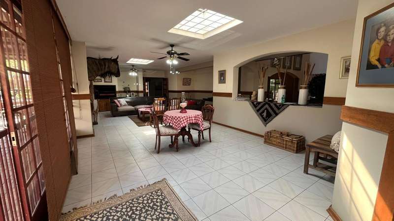 SPACIOUS FAMILY HOME WITH LARGE GARDEN ?Çô PERFECT FOR ENTERTAINERS 4-Bedroom Home with 2 Cottages, Entertainment Area, Pool & Development Potential Property Size: 900m?? under roof | Stand: 5 000m2 of Total Stand10 000m?? If you're looking for generous guesthouse feel living space, a lush garden, and superb entertainment features, this beautifully designed 4-bedroom home ticks all the boxes. Ideal for a large family, work-from-home setups, or even future development, this home offers comfort, versatility, and convenience in a prime location. Property got amble potential to change and develop into a business opportunity. MAIN HOUSE FEATURES: Welcoming reception area Three versatile living areas including: Private lounge TV lounge with fireplace Poolside lounge Dining room with skylight opening onto the patio Guest bedroom (downstairs) with air-conditioning, fireplace, and modern exposed trusses Stylish built-in bar Farm-style kitchen with electric oven & gas hob Separate scullery with ample cupboard space Dedicated laundry room with space for chest freezers and top loader washing machines Upstairs Accommodation: Spacious main bedroom with air-conditioning and en-suite bathroom (corner bath, basin, toilet) Two additional bedrooms, both carpeted with built-in cupboards One bedroom is double-sized ?Çô perfect for a study, playroom, or teen retreat Family bathroom with separate bath/basin and separate shower/basin/toilet OUTDOOR FEATURES: Large entertainment patio Sparkling swimming pool with cover Tennis court Four garages plus a carport BONUS: Two separate cottages ?Çô ideal for guests, rental income, or home office use The additional portion of 5 000m2 land available for further development ?Çô perfect for a guesthouse or extended living Prime Location: Conveniently located just off Jean Avenue with quick access to top schools, Centurion Mall, Southdown's Shopping Centre, Irene Link, and Jean Crossing. Easy connectivity to the N1, N14, and R21 highways, Gautrain Station, and just a short drive to OR Tambo International Airport. Call now to book your appointment to view with Chas Everitt