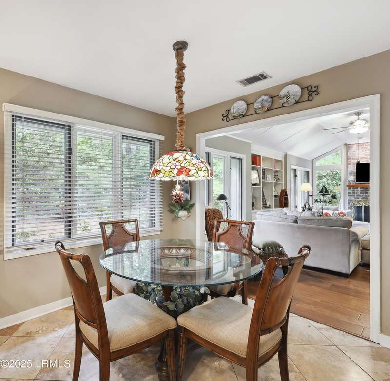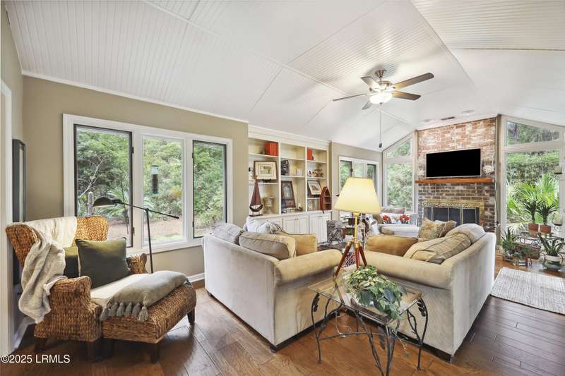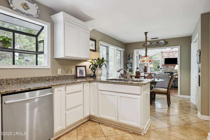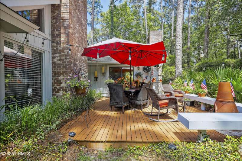 The perfect home in the perfect neighborhood! 3-bedroom 2 bath home in the Rookery section of HHP. This home is located at the end of a quiet cul-de-sac with a huge, wooded lot. The kitchen has travertine flooring and granite counter tops overlooking a large open den with a large brick wood burning fireplace. The large living room has a second wood burning fireplace with cathedral ceilings and floor to ceiling windows. The master bedroom has a large walk-in closet and private bath with skylights. There is plenty of room for a private swimming pool or home expansion. The Rookery has its own swimming pool area for residents.