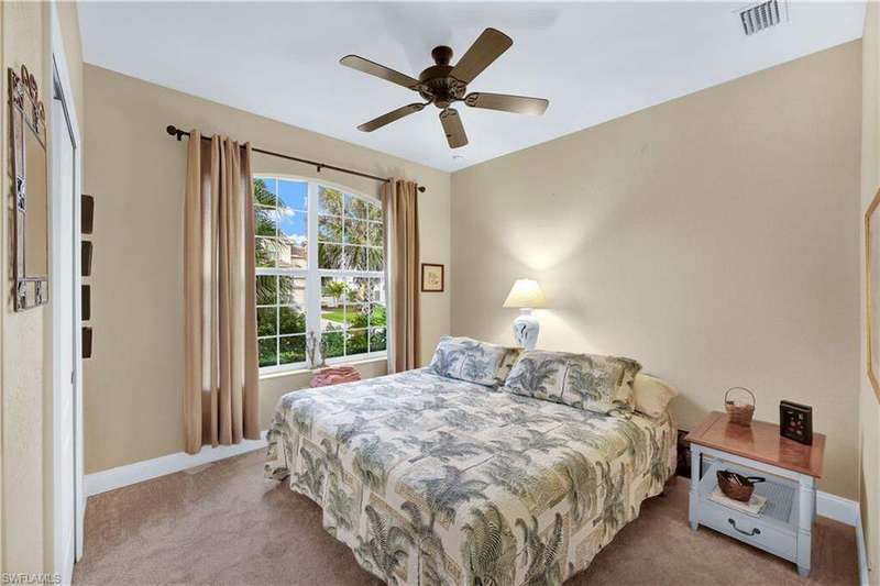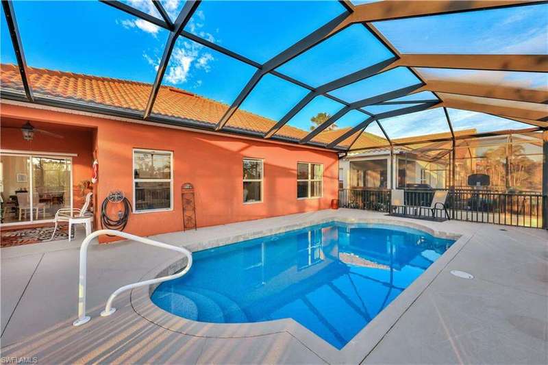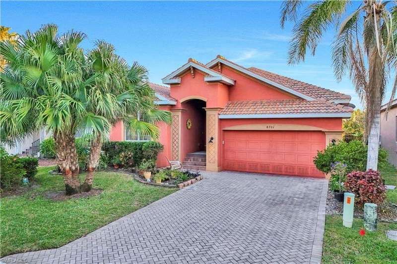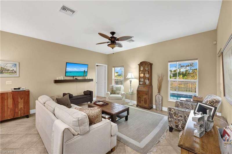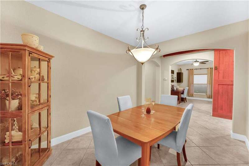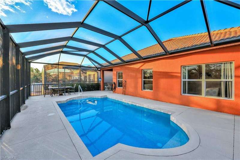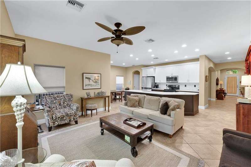 **OWNER FINANCING AVAILABLE** Welcome to 8701 Banyan Bay Rd. This beautiful 3 bedroom + Den, 2 bathroom, 2 car garage pool home is located in gated Banyan Bay with low HOA Fees and minutes from beaches, shopping, restaurants and much more. Through the front door you are greeted with the neutral color palette and large 18" tile on the diagonal leading you through the main living areas. Entertaining is a breeze in this open living/kitchen area with large kitchen Island for extra storage and counter space or take your dinner party to the formal dining room. The kitchen was beautifully upgraded in 2023 including new two-tone kitchen cabinets, quartz counter tops, fridge/freezer, dishwasher and stunning tile backsplash. Additional 2023 improvements include new carpet in the bedrooms, new water heater and a new roof. The primary suite offers ample space, walk-in closet and ensuite bath featuring dual sinks and large slate tile walk-in shower. 2 additional bedrooms, den with barn style door and 2nd bath provide plenty of space for family and friends. Outdoors you can enjoy SWFL living at its best from the comfort of your screened in lanai boasting your own private heated pool; updated in 2023 with a new pool pump and heater, this private oasis will entice you to relax and soak in the warm sun. This quiet Winkler extension corridor community also features a community pool. It's quite lovely at Banyan Bay!