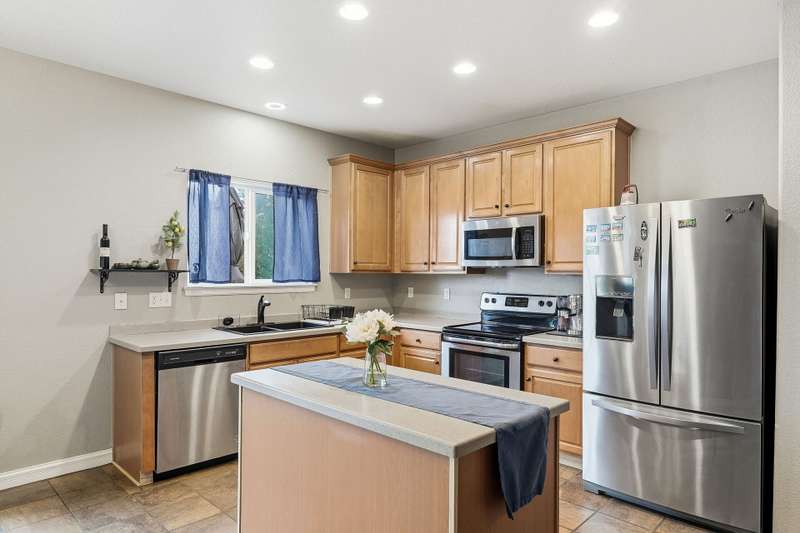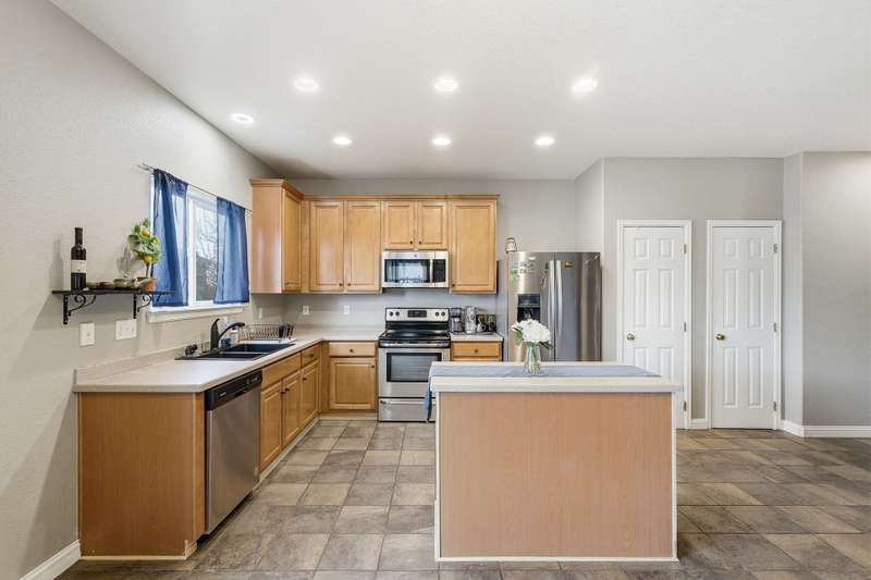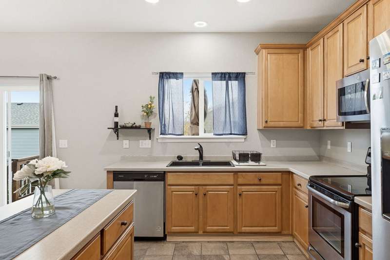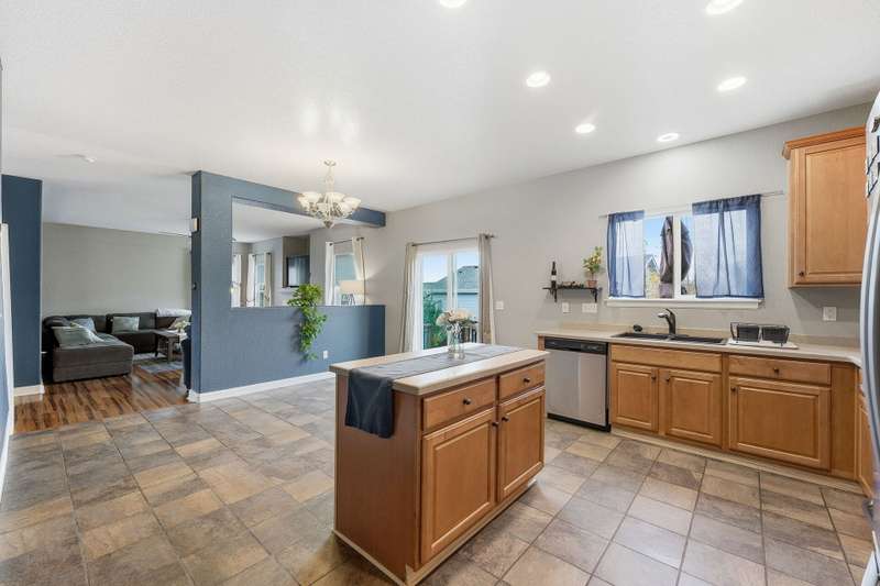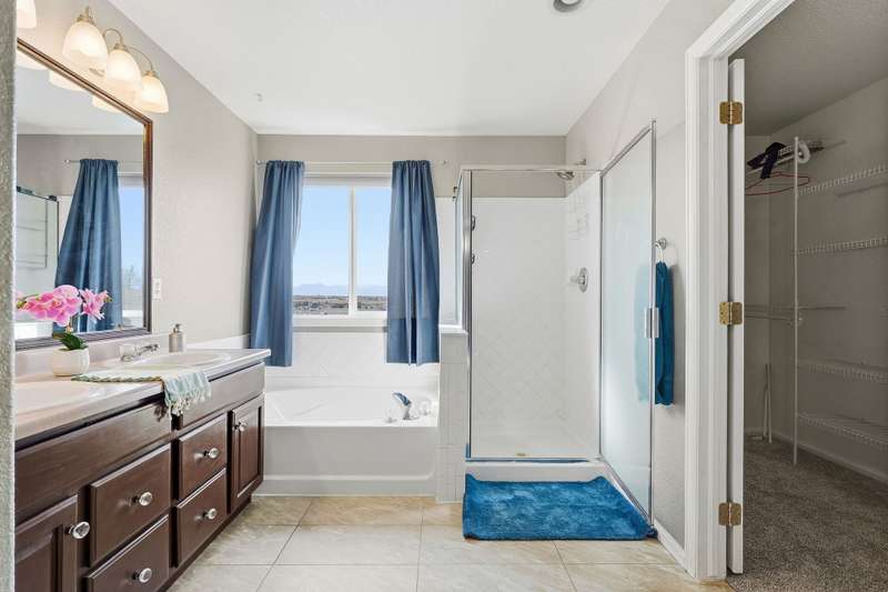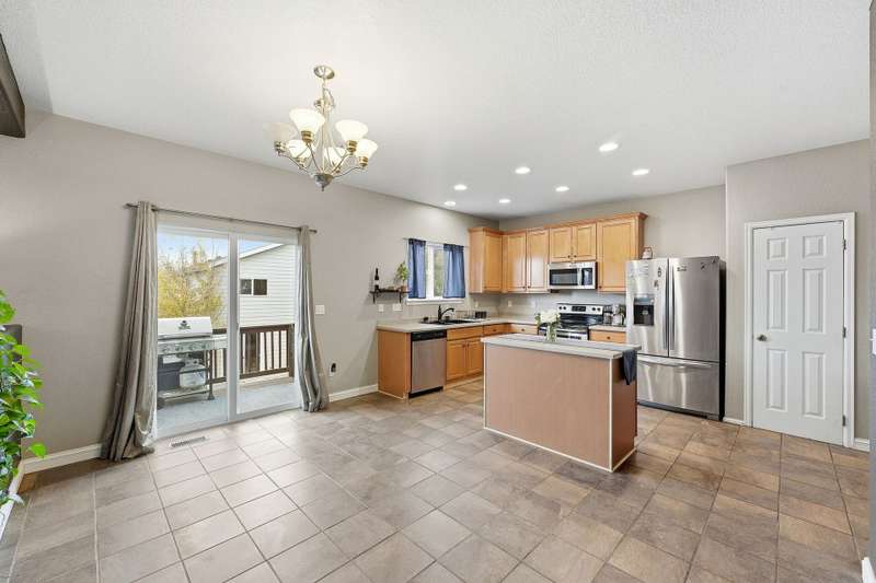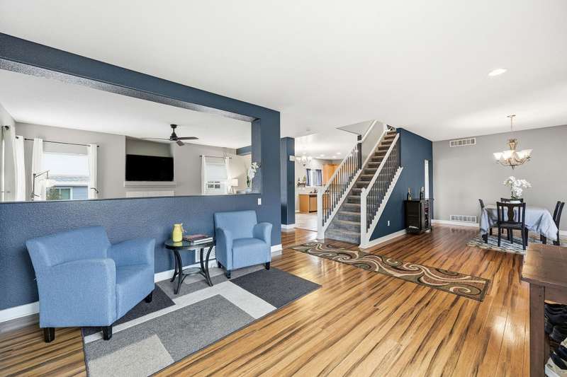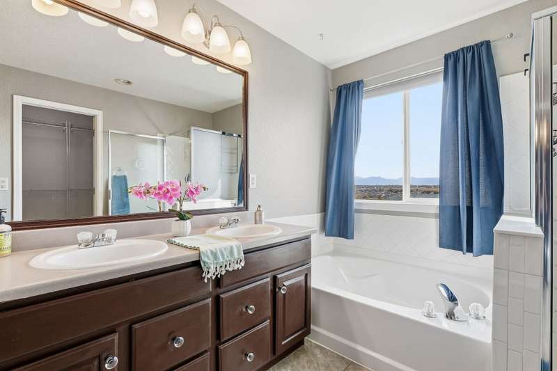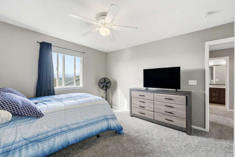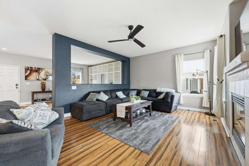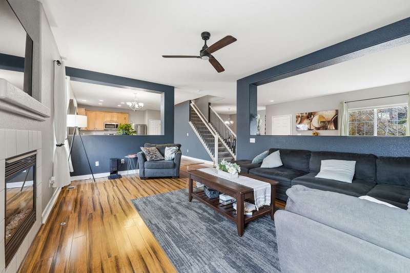 Beautiful 4-bedroom, 4-bathroom home with panoramic mountain views and a finished walkout basement in the sought-after Grandview neighborhood! The main floor boasts a bright living room, formal dining room, and a cozy family room with a gas fireplace. The kitchen features an island, eating area, 2 pantries, stainless steel appliances, corian countertops, and access to the deck. Upstairs, the primary suite offers a full bath and walk-in closet, along with two additional bedrooms, a full bath, and a versatile loft. The finished walkout basement provides even more living space with a wet bar, large rec area, bedroom, bathroom, and storage. Enjoy a beautifully maintained yard with a patio and plenty of space to play or unwind. Recent updates include tile in all bathrooms, bamboo flooring on the main level, laminate flooring in the basement, new carpet upstairs and in the basement bedroom, newer roof, and several updated windows.