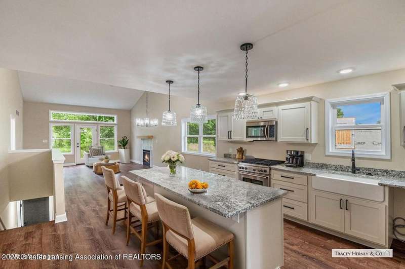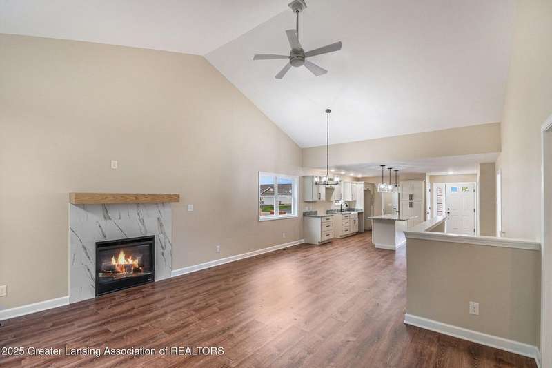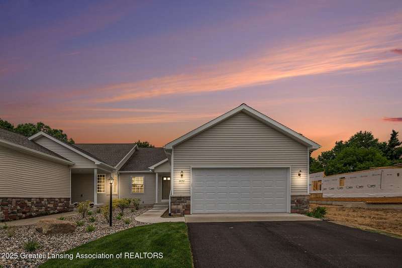 Welcome to 4053 Eastbridge Circle, your dream home awaits in this charming Stockbridge neighborhood! This BRAND NEW 2 bedroom, 2 bath home is ready for its new owners. This thoughtfully designed home offers modern, open-concept living with beautiful finishes throughout. The spacious kitchen features granite countertops, a farmhouse sink, a large center island, soft-close cabinetry, and stylish pendant lighting. Blending seamlessly into the dining and living room - boasting vaulted ceilings and large windows allowing natural light to pour in, highlighting the luxury vinyl plank flooring and cozy gas fireplace. Convenience is key with a first-floor laundry room and an on demand hot water heater, simplifying daily chores. The primary suite is a true retreat, complete with a full bath and walk-in closet, providing plenty of built-in storage space for your wardrobe. An additional bedroom and full bath finish off the main level. The full basement is already stubbed in for an additional bathroom and offers an egress window, providing the opportunity to customize and finish this space to suit your needs. Whether you envision a home gym, a playroom, or another bedroom, the possibilities are endless. The insulated & drywalled, attached 2-car garage provides added convenience for storage. Nature enthusiasts will appreciate the easy access to the beautiful Lakeland Trails, just a short walk away, while downtown Stockbridge, with its charming shops, dining, and community events, is also within walking distance. For commuters, this home offers the best of both worlds: a peaceful suburban retreat with a short commute to Lansing and Jackson. Schedule your showing today to experience all that Eastbridge condos have to offer!