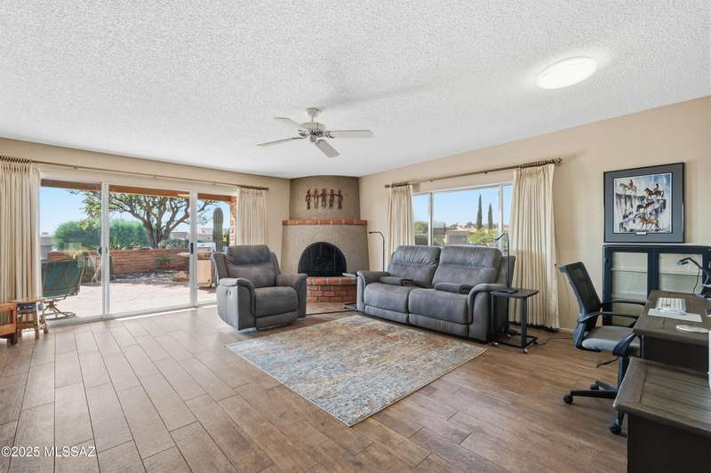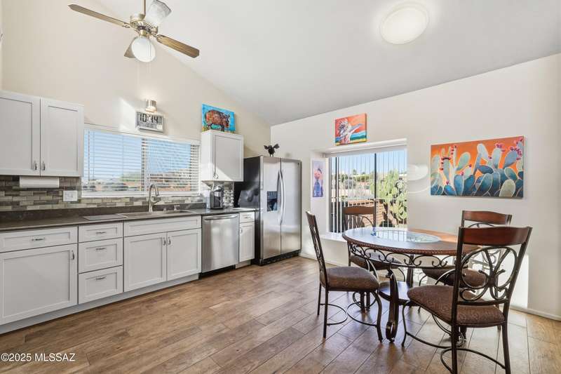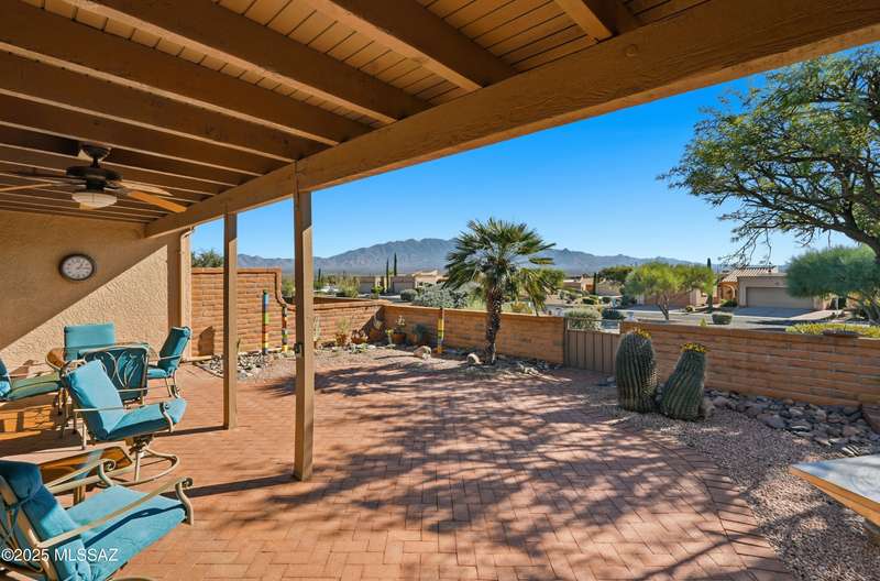 STUNNING MOUNTAIN VIEWS from EXPANDED BRICK PAVER back yard patio!!! FULLY FURNISHED, ELEVATED corner lot, CHARMING enclosed front courtyard, MULTIPLE SKYLIGHTS, NATURALLY LIGHT and BRIGHT, VAULTED CEILINGS, BEAUTIFULLY UPDATED kitchen with MODERN white cabinets with SOFT CLOSE feature, QUARTZ counter tops, TILED back splash, STAINLESS STEEL appliances and sink, CERAMIC TILE WOOD PLANK FLOORING THROUGHOUT, gas log BEE-HIVE FIREPLACE in great room, COMPLETE BATHROOM REMODEL with EXECUTIVE HEIGHT cabinets, QUARTZ counter tops, MODERN fixtures and lighting, WALK IN ceramic tile showers, ALL NEW UPDATED MECHANICALS; heating and cooling, water heater, and roof. TRANSFERABLE service warranties to new buyer. NEW outside PAINT. Ceiling fans, blinds, plantation shutters also included.