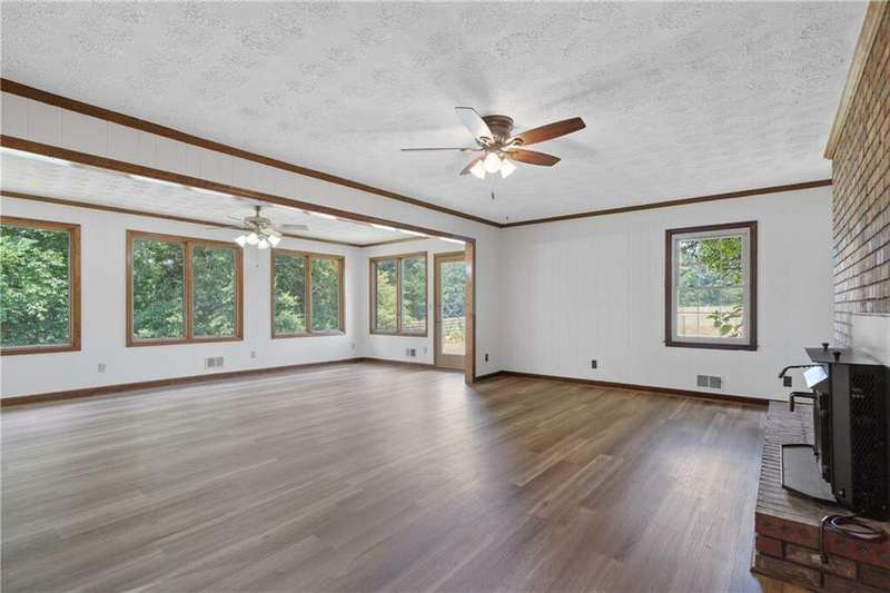 Here you go!! Quintessential farmhouse sitting on 13.16 private acres in Henry County near Rock Spring elementary & 11 miles from Ola Highschool. This property was well loved and now ready for new owners. Newly installed LVP flooring and freshly painted throughout. There's a HUGE family room with a wall of windows looking out to pasture. There's a primary on Main, two Living rooms w/a fireplace & wood burning stove and dining room. Upstairs are beautiful hardwood floors along with 3 additional bedrooms. There's a large unfinished basement with both interior & exterior entrances. Gorgeous land with mature trees! RARE find! This property sits in the middle of two other large acreage tracts - to the west is 17.9 (tract1) acres and to the east is 12.3 acres (tract 3) , both of these tracts can be sold with the home.