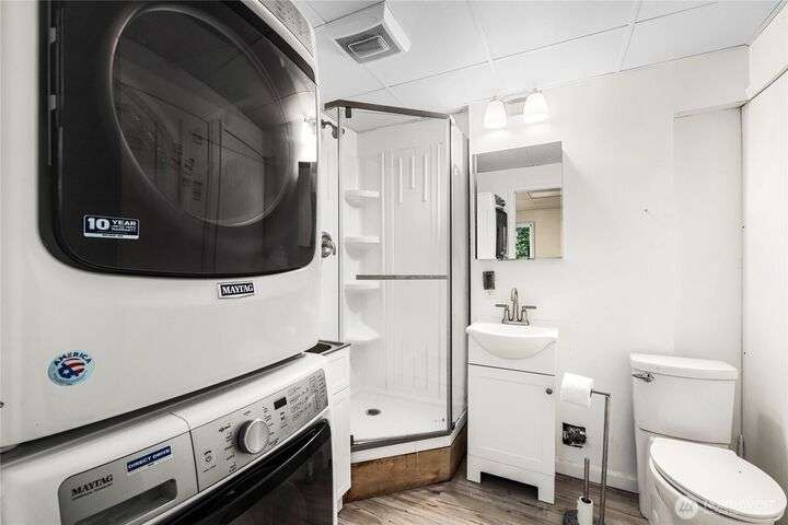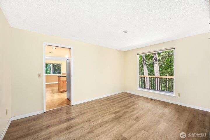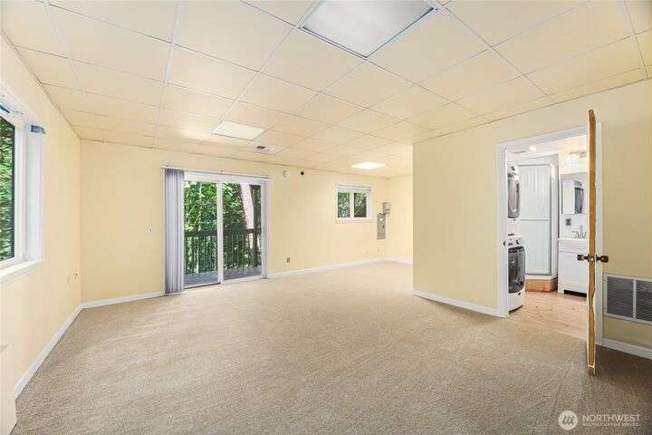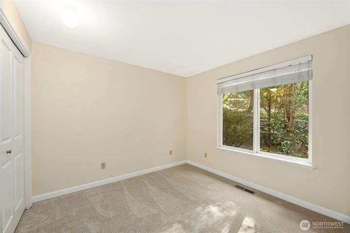 Cougar Hills Treehouse in the city. Multi-generational and/or rental potential. Primary Suite w/natural backdrop + 3 more bedrooms on main level. LARGE APARTMENT/STUDIO/ADU on lower level w/¾ bath, utility sink, storage & slider leading to serene rear yard & deck. Living room has cozy brick fireplace. Separate dining space plus great room. Low maintenance private rear yard w/deck running entire length of house, w/ tree views. Some of the UPDATES & QUALITY FEATURES: Furnace, LVP, carpet, granite, undermount sinks, remodeled bathrooms, street waterlines, EV charger, wired for generator, etc. No HOA. A multitude of walking & hiking trails nearby. Sought-after top Bellevue School District. Just a few minutes drive to get onto I-90 and I-405.