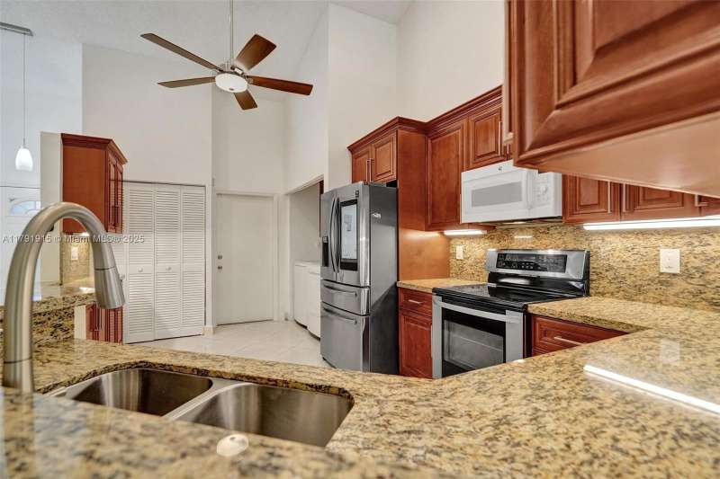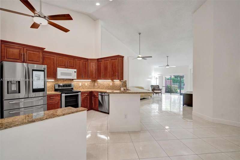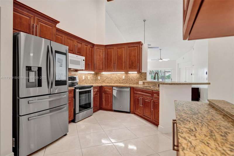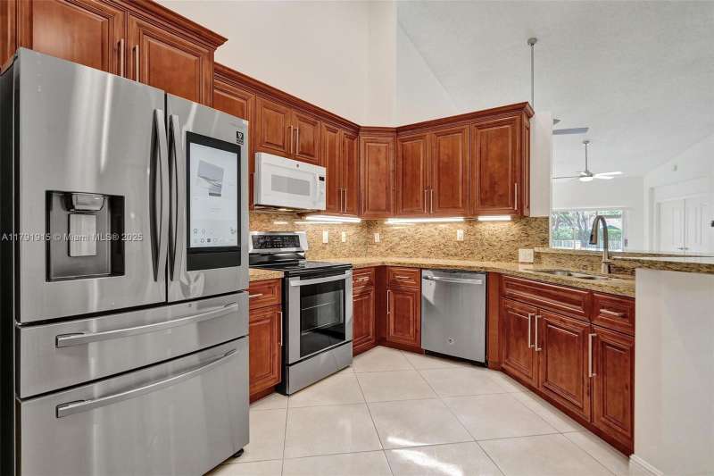 Wow! Spectacular Villa in Gated 55+ Kings Point Community. 2 BR/2 BTH+ Den. Move-in ready! Screened in Patio. One Car Garage. Split floorplan. Vaulted ceilings. Large, upgraded Kitchen with plenty of rich, solid wood cabinetry for storage; Soft close drawers; granite countertops; SS Appliances includes Samsung Smart Refrigerator with AI family Hub; Updated master bath with new shower, dual sinks, & a Walk-in Whirlpool tub (optional). Hurricane Shutters. Pets welcome. OK to BBQ. Steps to the Pool. Internet and cable included. Kings Point offers many Resort Style amenities including a 2,000+ seat Theater; Professional Entertainment; Full Gym; Exercise classes; Heated indoor Pool; Pickleball; Courtesy bus; and Lots of clubs & social activities. Close to shopping and restaurants.