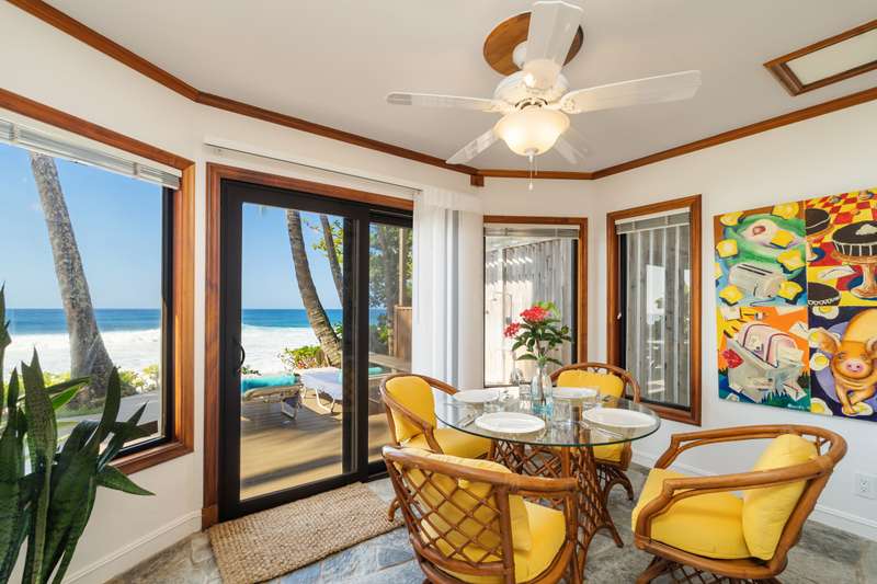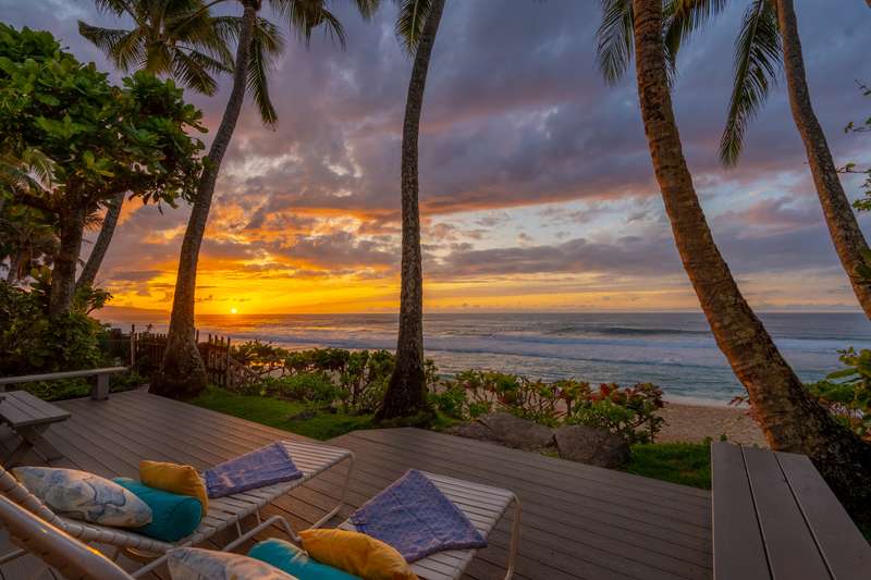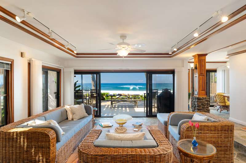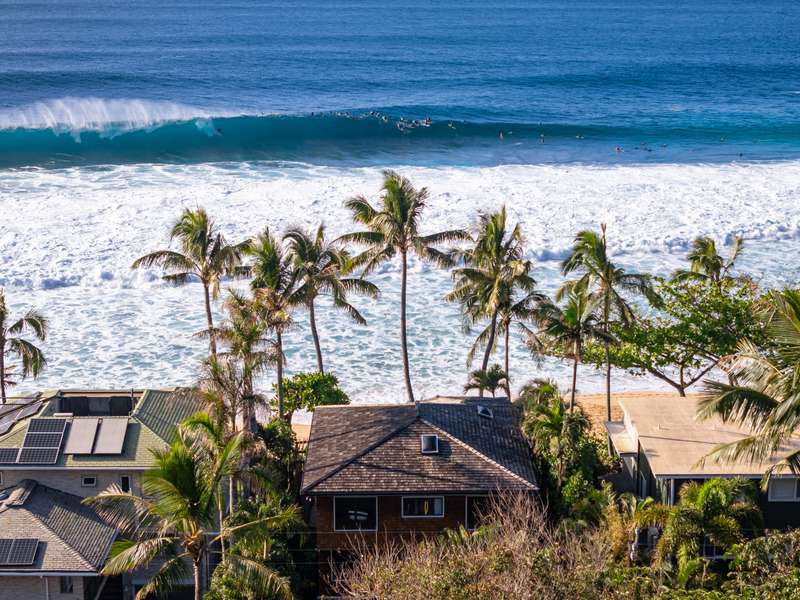 Front and center at Pipeline ~ absolutely unbeatable view into the most famous wave in the world! Relax in the comfort of your living room, downstairs open lanai, upstairs bedroom lanai or beautifully landscaped yard and watch the best surfers in the world take on this incredible iconic wave. This home has had only one adoring owner for 35 years and has been meticulously maintained as a family home. From first glance, the home will reveal that it has always been carefully maintained with detail, love and gratitude. From the cedar shake exterior siding and roof to the koa floors inside, high-quality appliances AND legal seawall you will feel surrounded by a sense of confidence, charm & security. Also includes outside hot water shower. This turn-key, well-built, fully-furnished beautiful home and property is available now. Shown to qualified Buyers by appointment only. Listing agent must be present.