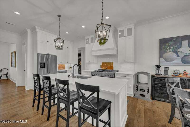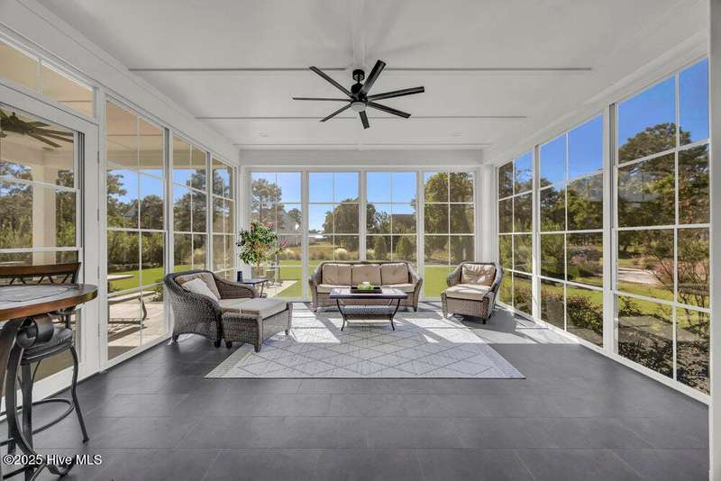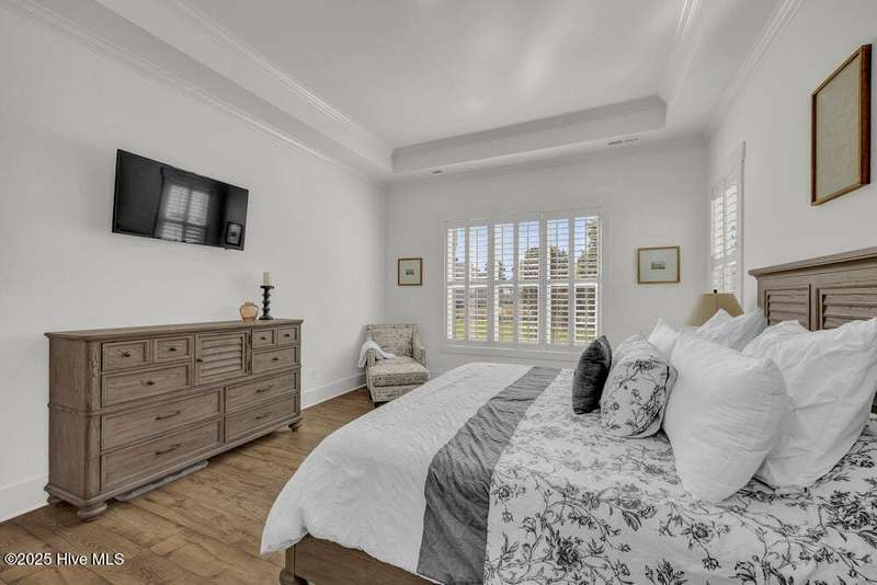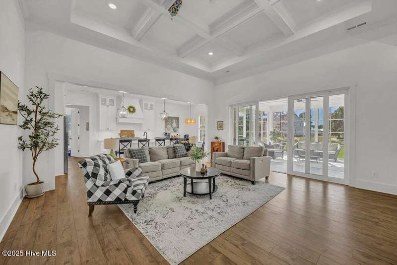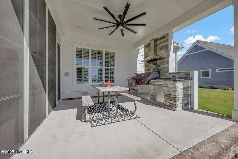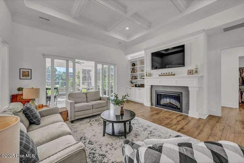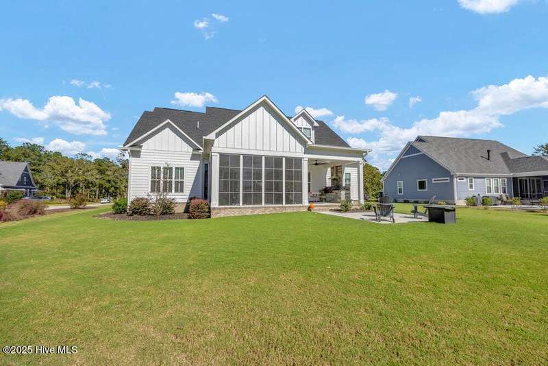 Welcome to 3829 Bay Colony Road, a beautifully designed five-bedroom home in one of Leland's most sought-after gated communities, The Bluffs on the Cape Fear. Built with timeless Hardie-board siding and elegant architectural details, this residence blends upscale finishes with comfortable, livable spaces.Step inside to discover 12-foot ceilings, coffered ceilings in both the living and dining rooms, and a bright open layout that connects seamlessly to the outdoors. Throughout the home, you'll find upgraded LVP flooring that provides the perfect blend of style and durability that adds warmth, comfort, and easy maintenance to every living space. The living room features custom built-ins and an electric fireplace, while the chef's kitchen showcases quartz countertops, soft-close cabinetry and drawers, two pantries, and an upgraded 48-inch gas range - perfect for entertaining or everyday cooking. The primary suite is conveniently located on the first floor and offers a peaceful retreat with a soaking tub, walk-in shower, and a spacious walk-in closet.Enjoy year-round comfort in the exceptional outdoor living area, featuring an oversized screened porch with sliding panels that can easily convert it into a three-seasons room. From there, step out to a covered patio with an outdoor kitchen and sitting area, all overlooking your beautifully landscaped backyard complete with a private chipping green.Residents of The Bluffs on the Cape Fear enjoy resort-style amenities, including a saltwater pool and clubhouse, boat ramp with river access, boat and RV storage, pickleball and tennis courts, and a private beach club at Oak Islandall surrounded by the natural beauty of the Cape Fear River and only 15 minutes from Dowtown Wilmington.