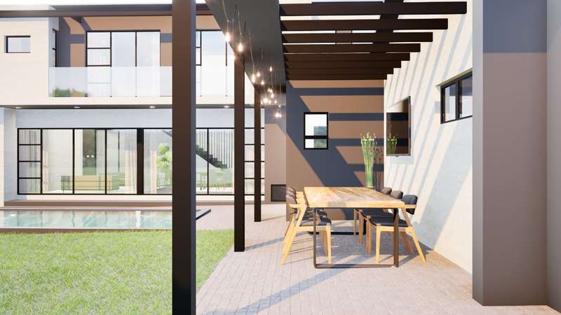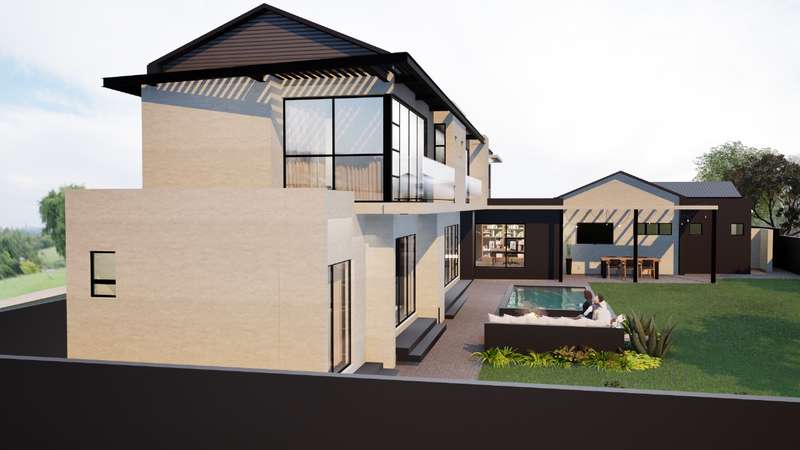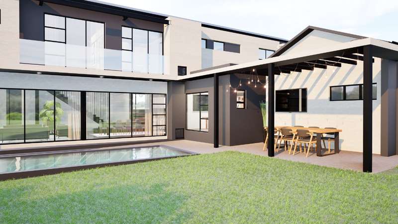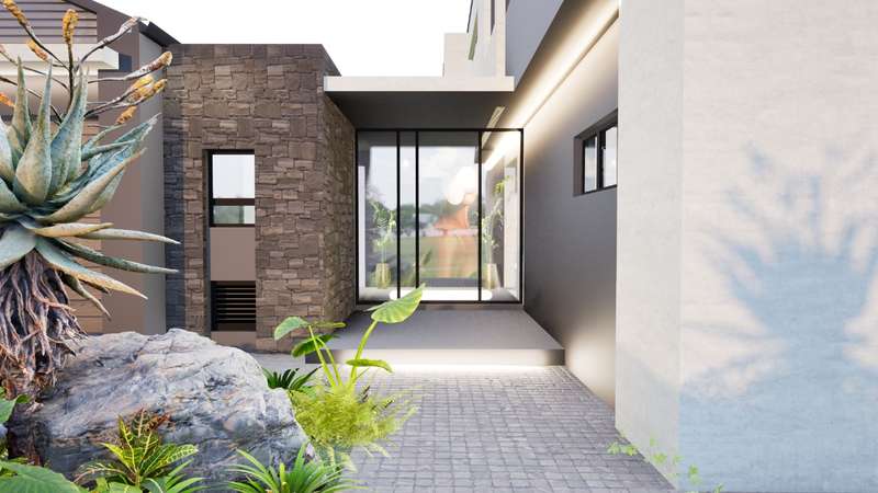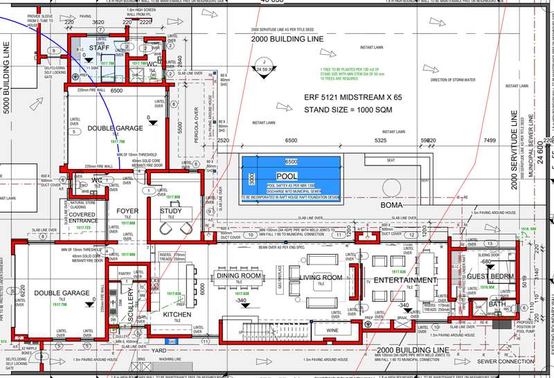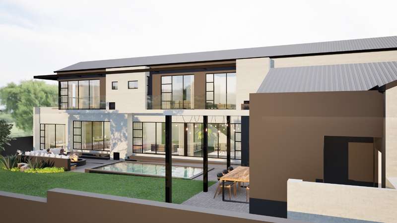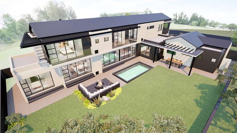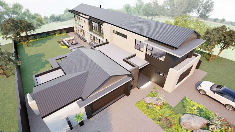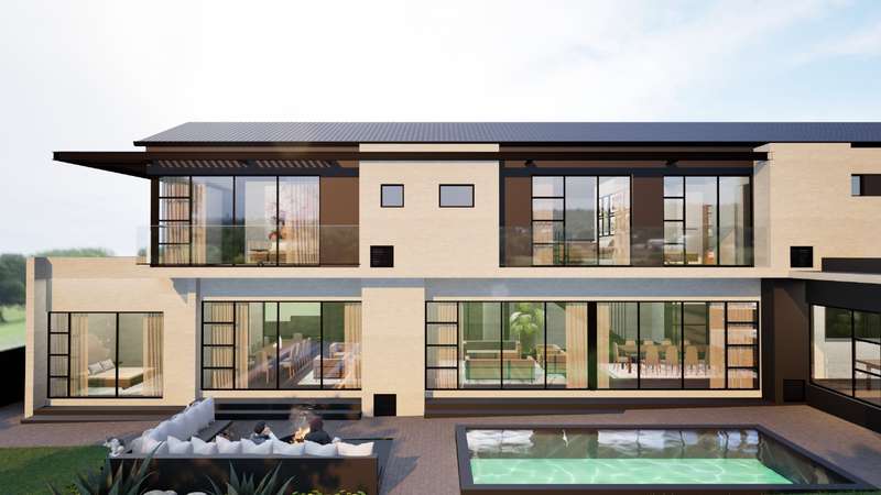 Imagine a unique and massive house to be built in Midstream Ridge, one of the last currently available building packages in the Ridge. The artistic architectural design for this monster mansion is truly unique and welcoming, perfect for hosting special guests. Let's explore what this mansion has to offer, situated conveniently close to the Midstream main gate, children's park area, schools, and restaurants. A welcoming covered entrance leads you to the foyer, where you'll find walking doors to the garages, two on each side, making a total of four garages, and a study or office nearby. As you proceed to the right-hand side of this El-shaped plan house, you'll be greeted by a massive open living area, complete with a modern kitchen, scullery, dining area, living area, entertainment area, and an ensuite guest bedroom. This beautifully designed living area faces a massive swimming pool and boma. The ground floor is completed by an outside staff room. Upstairs, a staircase leads you to a PJ lounge, with three full ensuite bedrooms on your left and a massive ensuite main bedroom with a huge walk-in closet on your right. Don't miss this opportunity to own one of the last properties near the Midstream main gate. Contact us today to schedule a viewing.