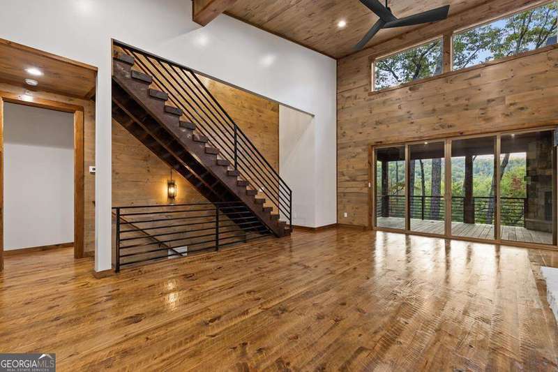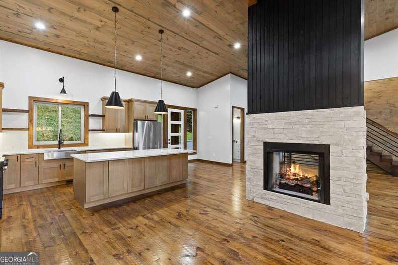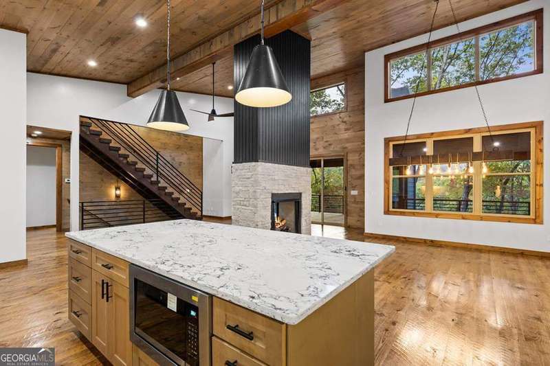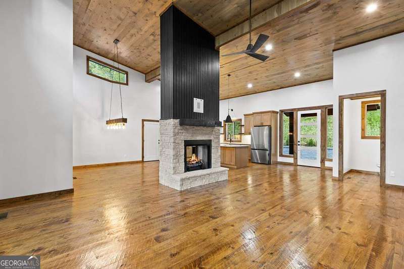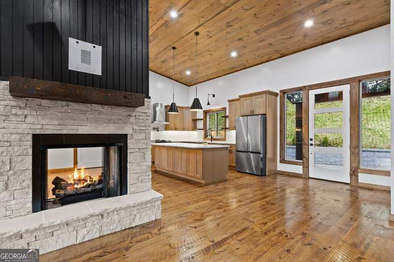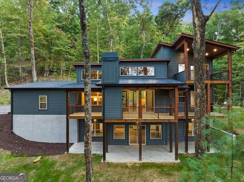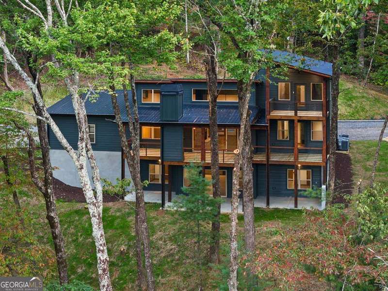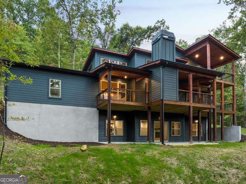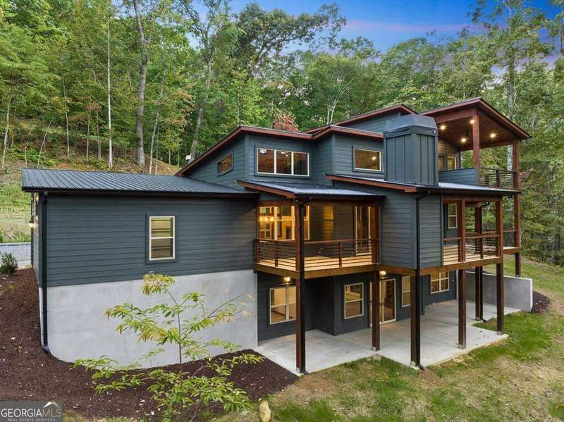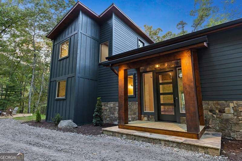 Stunning Mountain Modern with Year-Round Views! Thoughtfully designed new construction offering four bedrooms, four and a half baths, and a rare attached two-car garage, all tucked behind a long private driveway for added privacy. Open-concept layout showcases vaulted ceilings, dramatic double-sided fireplace, and expansive sliding glass doors that frame sweeping mountain vistas. Primary on main and The spa-like primary ensuite and main-level laundry provide everyday ease and comfort. The terrace level is perfect for entertaining, featuring an oversized great room with a stylish wet bar and a second laundry room for added convenience. Outdoor living is just as impressive, with a spacious firepit area, private lot with plenty of usable land, and panoramic views that make every gathering unforgettable. Ideally located just minutes from downtown Blue Ridge, you'll enjoy boutique shopping, fine dining, hiking trails, and the beauty of Lake Blue Ridge, all with easy year-round access. Whether you're searching for a full-time residence, a weekend getaway, or a potential high-income producing short-term rental, this modern mountain retreat offers the perfect blend of luxury, comfort, and lifestyle.