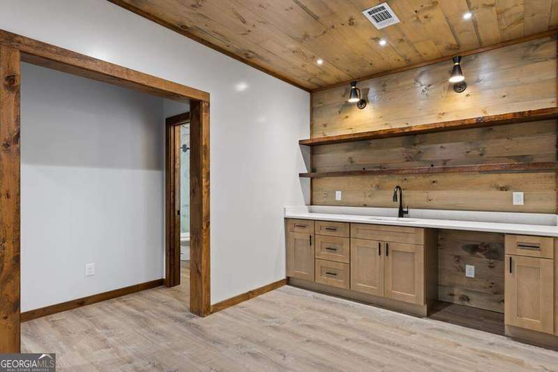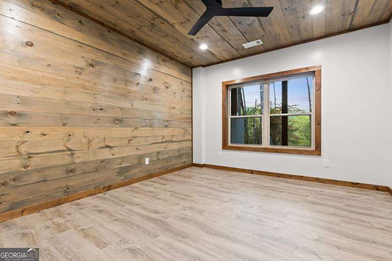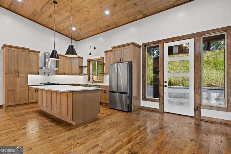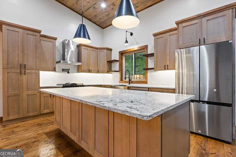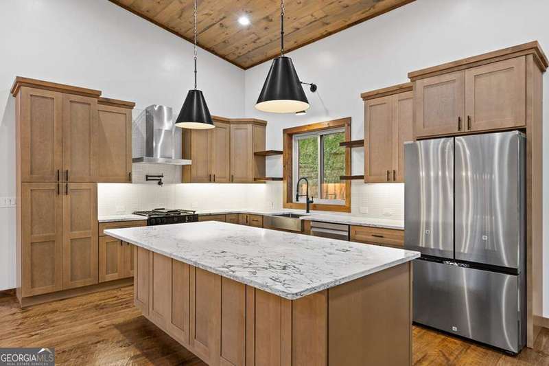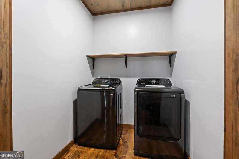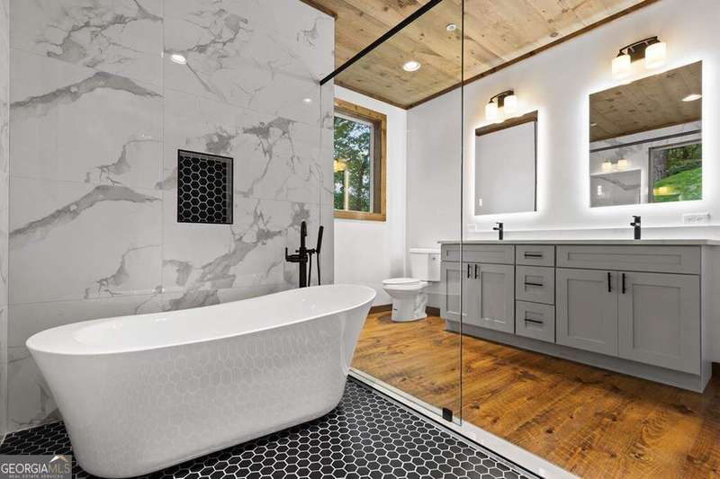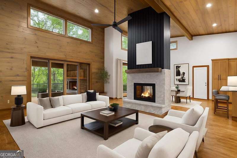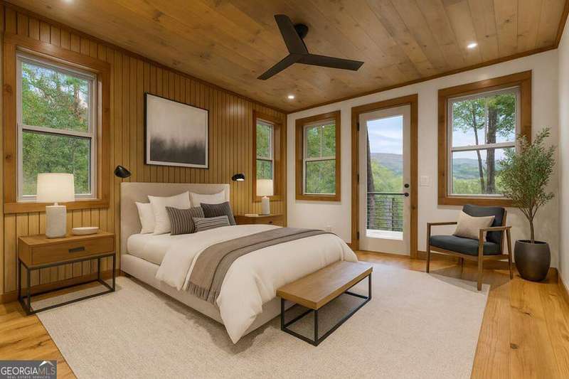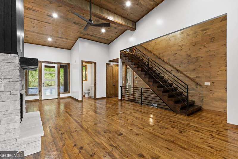 Stunning Mountain Modern with Year-Round Views! Thoughtfully designed new construction offering four bedrooms, four and a half baths, and a rare attached two-car garage, all tucked behind a long private driveway for added privacy. Open-concept layout showcases vaulted ceilings, dramatic double-sided fireplace, and expansive sliding glass doors that frame sweeping mountain vistas. Primary on main and The spa-like primary ensuite and main-level laundry provide everyday ease and comfort. The terrace level is perfect for entertaining, featuring an oversized great room with a stylish wet bar and a second laundry room for added convenience. Outdoor living is just as impressive, with a spacious firepit area, private lot with plenty of usable land, and panoramic views that make every gathering unforgettable. Ideally located just minutes from downtown Blue Ridge, you'll enjoy boutique shopping, fine dining, hiking trails, and the beauty of Lake Blue Ridge, all with easy year-round access. Whether you're searching for a full-time residence, a weekend getaway, or a potential high-income producing short-term rental, this modern mountain retreat offers the perfect blend of luxury, comfort, and lifestyle.