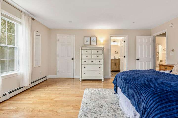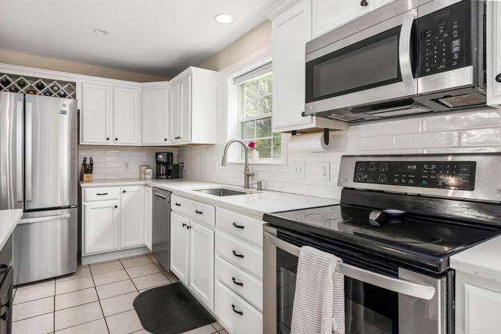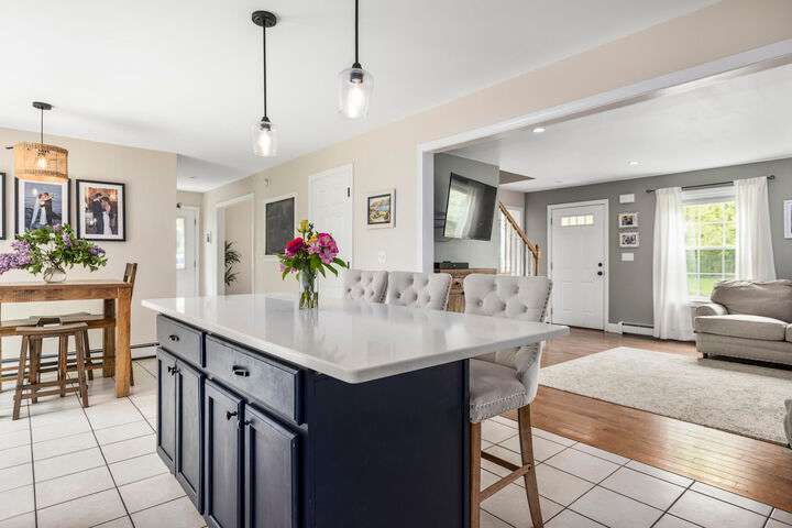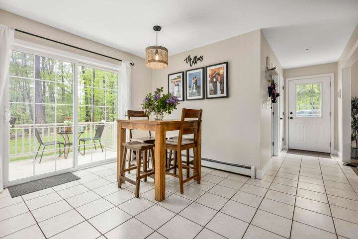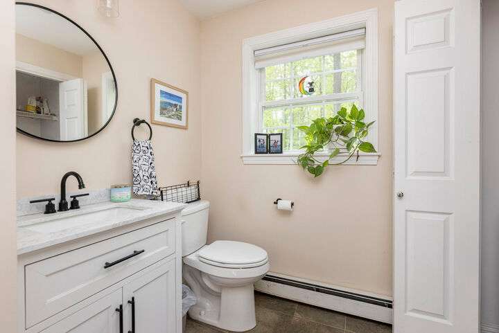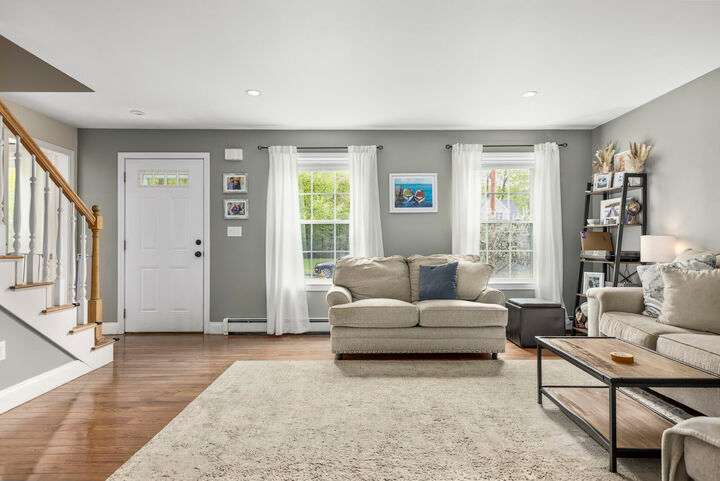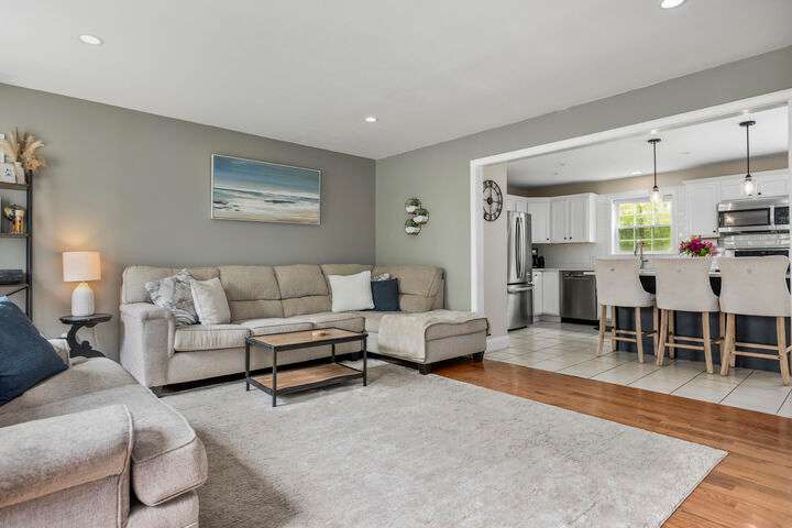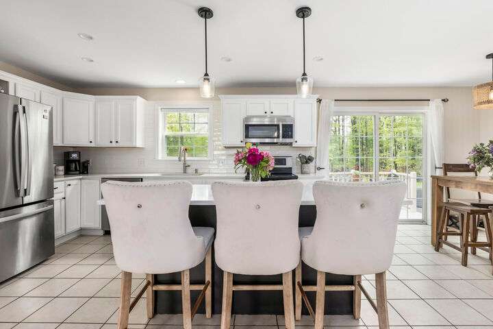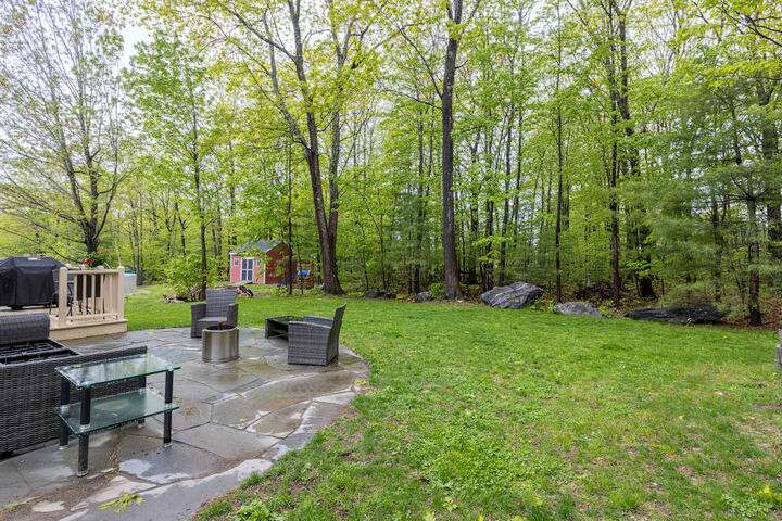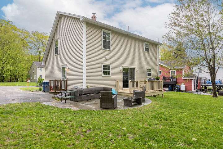 Build in 2006, this 3 BR, 2.5 BA dormered Cape Cod style home is nestled into a quiet neighborhood at the end of a dead end street. The first floor features an open-concept floor plan. Eat-in Kitchen has large island with new quartz countertops, pantry, tile flooring, and slider access to a deck, lovely stone patio and private back-yard. The Kit opens to a spacious Living Room with hardwood floors. The first floor also offers a formal Dining Room (den/office/playroom) and a half-bath with laundry. Upstairs there is a delightfully large Primary Suite (easily holds king sized bed) with a newly renovated Bathroom. Walk in-shower boasts custom glass/stone, tile work. The suite also has a walk-in closet. Two additional bedrooms share a full Bath with recent updates. There is a full, unfinished basement and shed for storage. This comfortable home has the benefit of surrounding woods and amazing trails. Located just 10 minutes to downtown Portland and close to local shopping, eateries and major roads. OPEN HOUSE Sat., Nov 15, 1-3