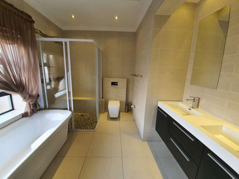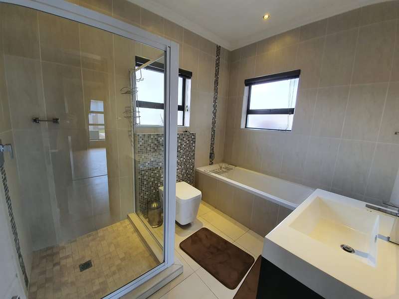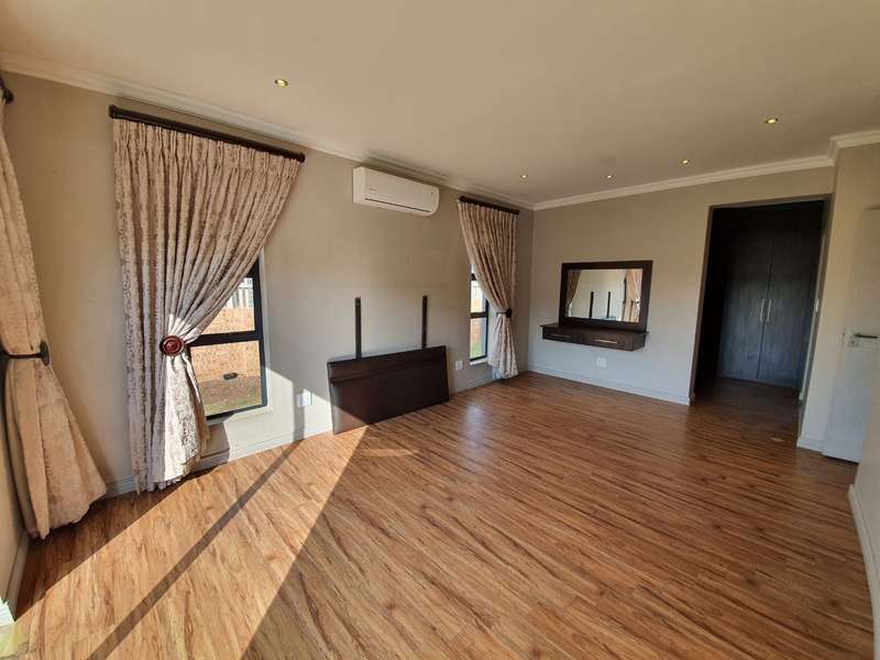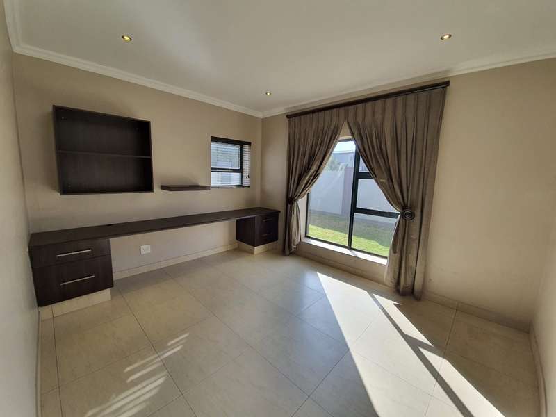 EXCLUSIVE MANDATE Modern Family Home with Stylish Finishes and Ample Space This sublime, contemporary home offers comfort, functionality, and modern elegance. It features two garages and an additional parking bay, providing ample space for vehicles. As you enter, you’re welcomed by a spacious open-plan layout that seamlessly connects the living area, dining space, and a large, well-designed kitchen with a private scullery. One bedroom is thoughtfully positioned apart from the others, making it ideal as a guest suite or home office, with a bathroom (toilet, basin, and shower) conveniently located next door. Down the hall, you’ll find three bright and airy bedrooms accompanied by two modern bathrooms, offering comfort and privacy for the entire family. The outdoor area is perfect for entertaining, featuring a beautiful garden and a boma area to enjoy gatherings with family and friends. The home also includes staff accommodation for added convenience. No cats are allowed. Midstream offers you a peace of mind lifestyle, a lifestyle that any family would want. There is the Med clinic flagship hospital that opened in March 2015, that makes this area a sound investment. It also boasts with Two primary schools and one high school, a day hospital, a retirement village, a mas-hie golf course, indoor bowling facilities, fly fishing dams, Churches, gas stations, shopping centers and a day spa that are just a few of the amenities on the Estates. It is safe and secure with 2.4 m high palisade walls and electric fencing that surrounds the whole perimeter of the Estates. Access control is monitored via bio metric fingerprints taken at the guard houses at each entrance with CCTV monitoring systems and roaming guards. Experience a life of freedom in Midstream Estates. Come and live your dream in Midstream Estates.
