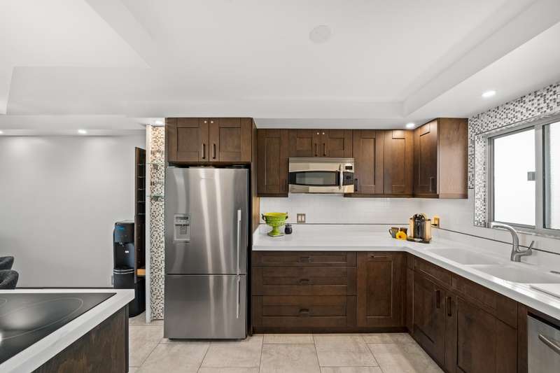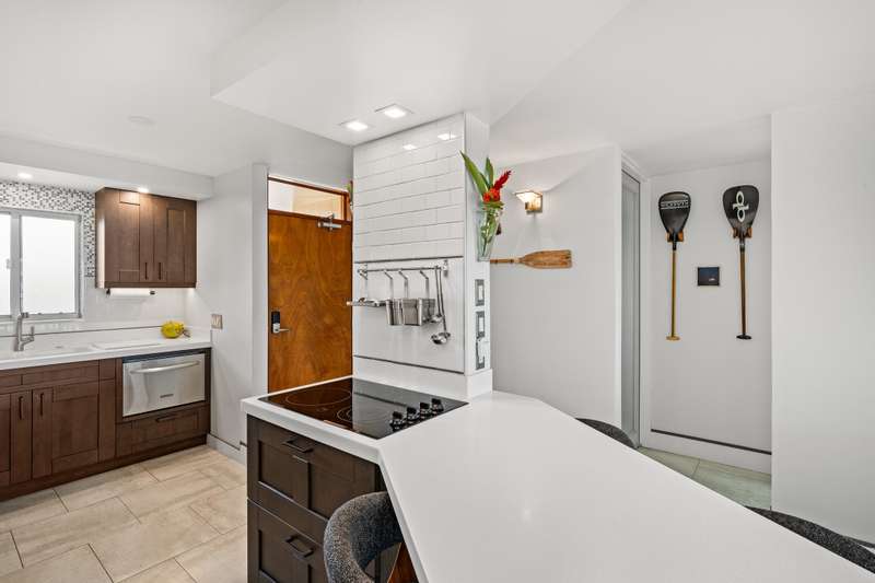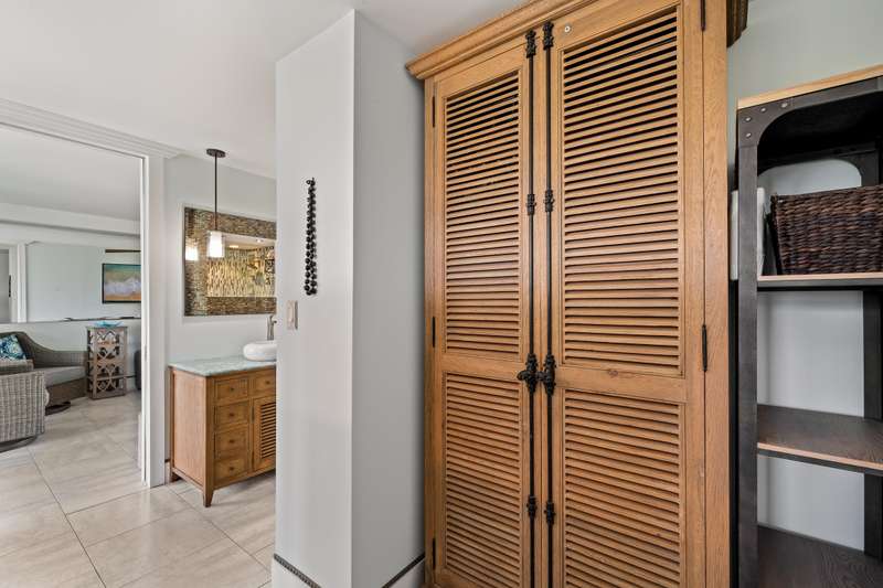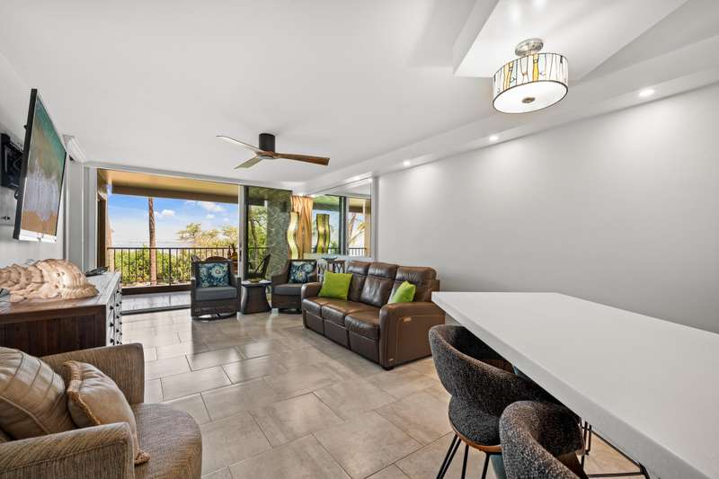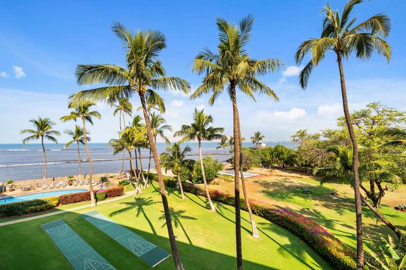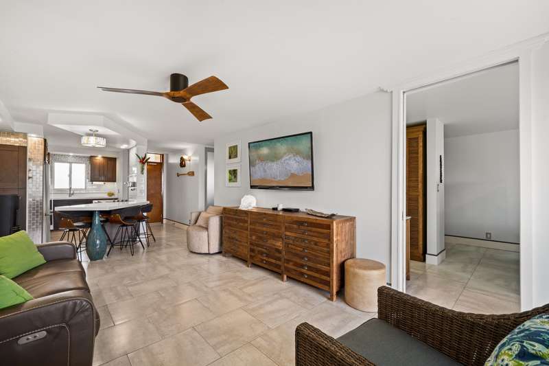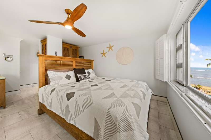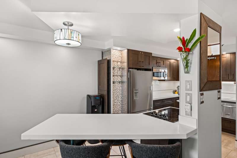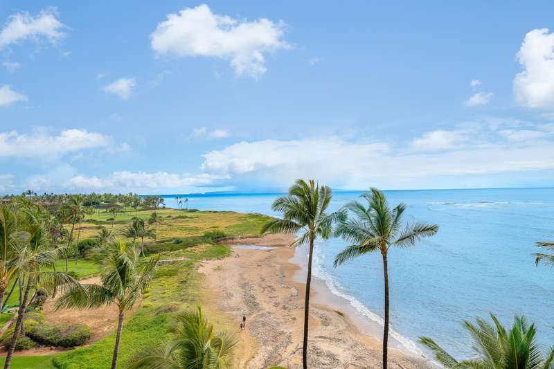 Hotel Zoned, one-of-a-kind stunning remodel at Menehune Shores. Ocean, Maalae'a and West Maui mountain views abound as you step through the front door. So many luxury touches throughout make this condo live like a home. The chef inspired kitchen has been completely reimagined. Exclusive appliances include Fisher Pakel refrigerator, KitchenAid drawer dishwasher, GE profile convection oven/microwave, and full size LG front load washer and dryer. Custom Avonite kitchen countertops feature an integral drainboard with a sink that is oriented towards the front window so you may enjoy Haleakala and Upcountry views. The cooktop flows into a unique dining island with space for four. Fleetwood windows throughout with the exception of the jalousies in the Primary Bedroom. The Primary Bedroom and its reconfiguration sets it apart from others in the complex. Restoration Hardware storage furniture is included in this "turn-Key" condo. Luxury tile in both bathrooms lends to a spa like feel. The second bedroom features a custom built "Murphy" style bed, cabinetry and plantation shutters. Menehune shores sits beachfront in front of a historical Hawaiian fish pond, with adjacent lawn area and shuffleboard. Choose between the beachfront barbecue area or rooftop deck entertainment area with barbecues and kitchen all while watching the whales play, when in season and enjoy magnificent sunsets and stargazing opportunities. Outer island views of Kaho'olawe, Molokini Crater, Lana'i and the West Maui Mountains can be enjoyed poolside. Centrally located to all island beaches, water and sport activities, boat harbors, world class dining, shopping, golf and resorts. There's even a restaurant on the ground floor! You won't want to miss this one. Easy to show with 24 hour notice.