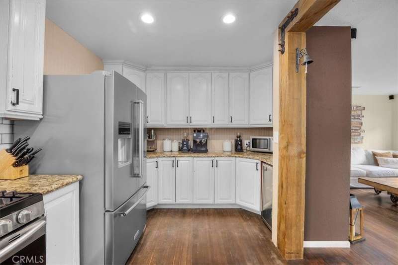 Discover a property that beautifully blends classic charm with modern design, offering 2,708 sq. ft. of versatile living space across a 3 bedroom, 2 bath main residence, a newly built (2024) ADU, a finished recreation room with loft, and an upgraded two-car garage with studio. The main home exudes farmhouse warmth with original hardwood floors, remodeled bathrooms (2020 & 2025), a spacious kitchen with farmhouse sink, subway tile, and granite countertops, plus cozy touches like an electric fireplace. Thoughtful upgrades include central heat and A/C, tankless water heater, copper/PEX plumbing, new roof, solar, and a 200-amp panel (2023). Outdoor living is highlighted by a gated front yard, mature landscaping, automated sprinklers, a new 200 sq. ft. deck, and backyard plumbing for a future fire feature. The newly built (2024) two-story ADU offers a sleek modern contrast, with 2 bedrooms, 2 bathrooms, polished concrete floors, 10’ ceilings, a custom kitchen with new appliances, gas fireplace, upstairs bedrooms with ceiling fans, luxury laminate flooring, and independent solar and utilities. A finished rec room with half bath, kitchenette, and vaulted loft provides additional living or creative space. The polished concrete garage impresses with a full glass high-lift door, beverage refrigerator, custom storage, and a finished studio with wired speakers and A/C. Perfect for multi-generational living, private retreat, or rental income, this unique property blends rustic comfort with modern convenience, all within walking distance to Main Street dining, shops, and the beach, with easy freeway access.