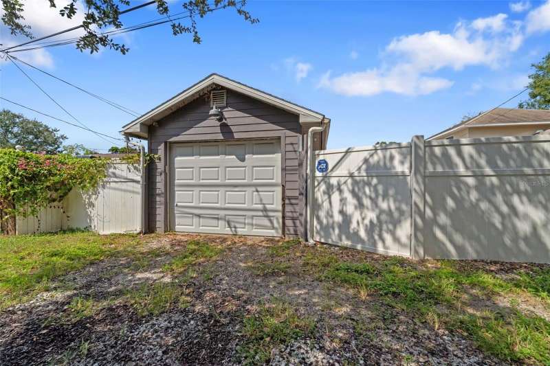 Adorable St. Pete home with a brand new roof (scheduled Oct. 2025), spacious layout, and plenty of charm. This 2 bedroom, 1 bath home features a large kitchen, comfortable living room, inside laundry, and even an additional bath in the garage for extra convenience. Throughout the home you’ll find timeless interior shutters that add style and function while filling each room with natural light. The fenced front and back yards offer great space for pets, gardening, or simply enjoying the Florida sunshine. Best of all, it’s not in a flood zone, giving you peace of mind along with a great location. Centrally located near shopping, dining, the interstate, and just minutes from the beach, this home is ready for its new owner. Schedule your showing today and see why this one won’t last long!