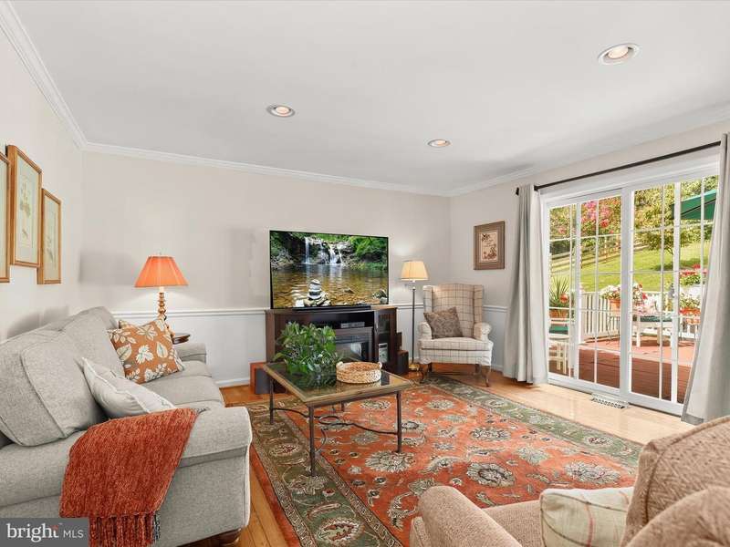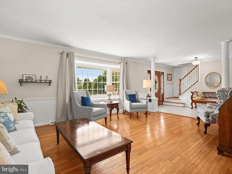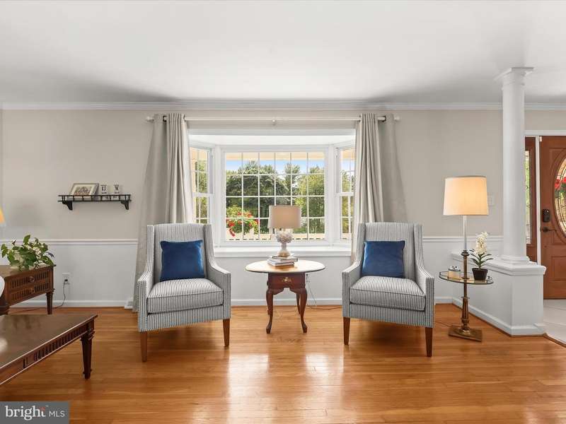 Beautifully sited at the end of a cul-de-sac in sought after Round Acres, this 4-bedroom, 2.5-bath home has been lovingly maintained by its original owner and offers timeless beauty inside and out. Rich hardwood floors, a sophisticated color palette, and custom millwork set the stage for elegant living. An inviting covered front porch with breathtaking views welcomes you, airy foyer that opens through a pillared entrance to the large living room, where crown molding, chair railing, and a sunny bay window create a warm feel. The formal dining room continues the refined look, perfect for memorable gatherings. Your culinary skills will shine in the gourmet kitchen boasting stainless steel appliances, cherry cabinetry with under-cabinet lighting, and a planning station spotlighted by the decorative backsplash. A charming breakfast nook with a bay window offers views of the beautifully landscaped rear lawn. Just off the kitchen, the family room features recessed lighting, hardwood floors, crown molding, and French-style sliders that lead to the composite platform deck. an ideal spot to relax and enjoy the sweeping lawn and exquisite surrounding landscaping. Upstairs, the serene primary suite with an en-suite bath awaits, along with three additional bedrooms and an additional full bath, providing comfort for family and guests. The full, unfinished lower level with walk out stairs is ready for your personal touch and expansion ideas. Located close to shopping, dining, MD-Rt. 1, and I-95, this home blends convenience with classic charm-truly checking all the boxes of the perfect home.