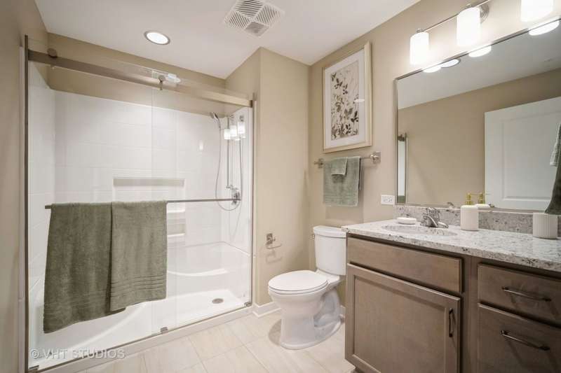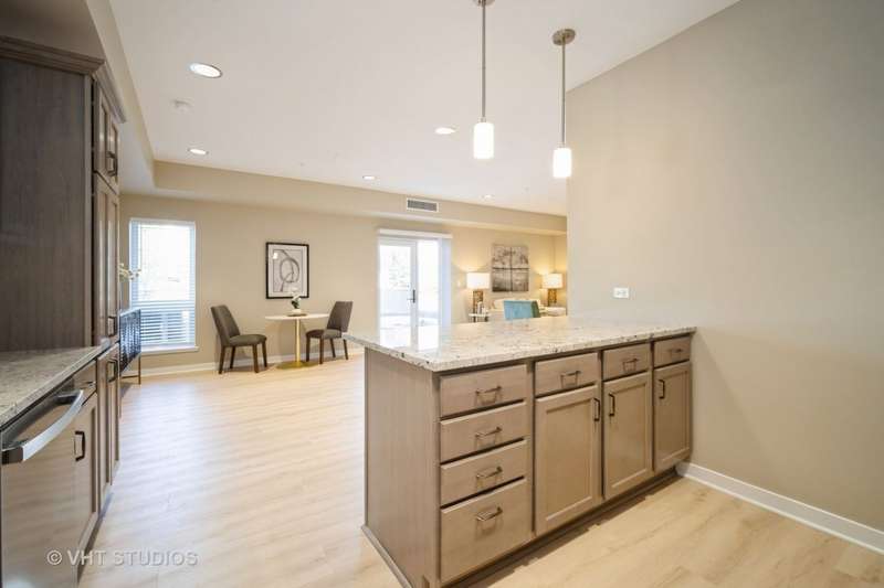 Introducing new construction at The Lodge of Northbrook, an active senior living community for residents aged 55 and better. This spacious unit is located in a quiet first-floor wing, offering convenient access to the main floor concierge, mail room, and dining room. As you enter, you'll be captivated by the stylish grey cabinetry, stainless steel appliances, and elegant granite countertops in the brand new kitchen. Enjoy ample counter space and storage with roll-out shelves, complemented by neutral, light, wide plank flooring throughout the kitchen, living area and dining area. The open-concept design seamlessly connects the kitchen to the living and dining areas, bathed in natural light from the northern exposure. Step outside to your first-floor patio. The bedrooms are positioned on opposite sides of the apartment for added privacy. The primary suite features a walk-in closet and an ensuite bath with a double vanity and walk-in shower. The second bedroom is located near the second bath, which also boasts porcelain tile and a walk-in shower. You'll appreciate the convenience of a full-size washer and dryer located in the unit, along with additional storage nearby. Residents at The Lodge of Northbrook enjoy a vibrant lifestyle with daily activities, including exercise classes, card games, movies, bingo, and special presentations. Start your day with a complimentary continental breakfast, and take advantage of transportation within an 8-mile radius available Monday through Friday. Conveniently located near shopping, dining, and expressways, this community offers everything you need. Please visit the Lodge of Northbrook website for more information. Income qualification is required for residency, and all expenses-including utilities, cable, internet, property taxes, and interior maintenance-are included in the monthly fee. Make your appointment today to tour this exciting active senior living community!