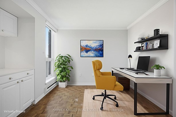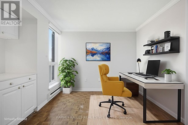 Welcome to the heart of Clarkson Village. This spacious 1,350 sq ft suite plus a large balcony offers a bright and private 5th floor view overlooking landscaped gardens and mature trees. The layout features two generous bedrooms, a large den, an updated 4-piece ensuite bathroom and a second updated 4-piece bathroom. Plenty of insuite storage, including a large walk-in storage area and convenient ensuite laundry. The standout balcony spans approximately 16'11 x 7'11, perfect for outdoor relaxing or entertaining. Parking a large tandem spot located close to the elevator. This well-managed building offers excellent amenities including an outdoor heated pool, sauna, gym, party room with full kitchen, bike storage, car wash with two bays, and ample visitor parking. The lobby, entrance doors and hallways have been recently renovated, adding to the fresh and welcoming feel. Just steps to Clarkson GO, shopping, dining, parks, Lake Ontario, Rattray Marsh trails, and quick access to QEW and 403. A wonderful opportunity to own in a highly desirable and convenient location. *Some photos are virtually staged.