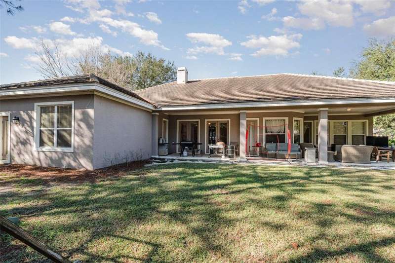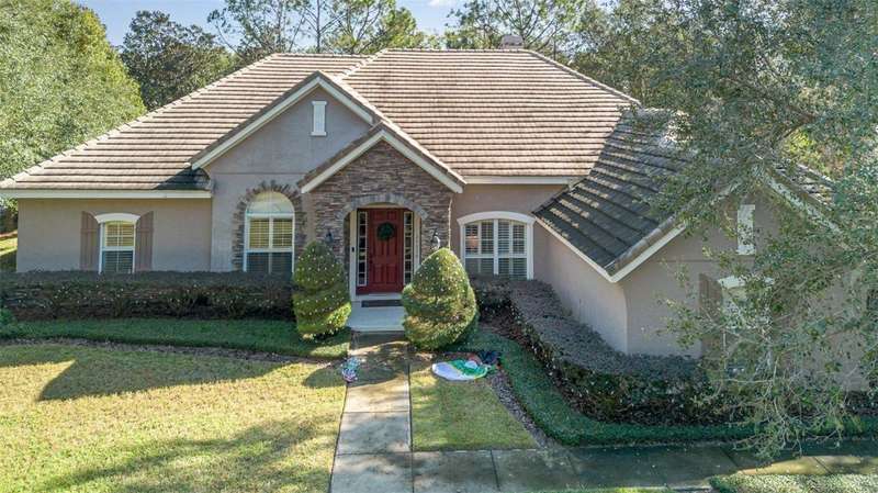 Come enjoy the very best Central Florida has to offer! Relax on your expansive wrap-around Lanai with a view to a tropical garden often teaming with colorful birds and butterflies. RedTail, a highly desirable gated Golf Community with abundant amenities, recreational activities, and miles of walking and biking trails, readily fills-the-bill of today's active lifestyles. Nestled among 100 yr. old oaks draped w/Spanish Moss, RedTail abounds in wildlife: Turkeys, Bald Eagles, Sandhill Cranes, & more. The spacious Clubhouse, deluxe Fitness Center with junior Olympic Community Pool, HardTru Tennis Courts, and Golf Course afford unparalleled opportunities for sporting pursuits, or simply taking a walk among this lovely natural setting relaxing with the children or family pet. This home with its marvelously equipped kitchen with an attractive backsplash and granite counter tops, stainless steel appliances, a center prep-island, and warm wood cabinets will delight your inner 'celebrity chef and is perfect for entertaining. An expansive combo kitchen/great room with a cozy wood burning fireplace provides plenty of space for entertaining, encouraging get-togethers with family & friends. The Primary Bedroom Suite features an attractive tray ceiling and its spacious en-suite bath offer a double vanity with dual sinks, a center piece jetted soaking tub, separate glass enclosed shower, and abundant walk-in closet space. High traffic areas feature durable and easy to maintain tile flooring. Just minutes from the quaint shops & dining of the charming village of Mt. Dora out to the west and the upscale restaurants and night life of Lake Mary to the east; now with the Wekiva Parkway outside the back gate, the Resorts, Downtown & the Int'l Airports are just minutes away.