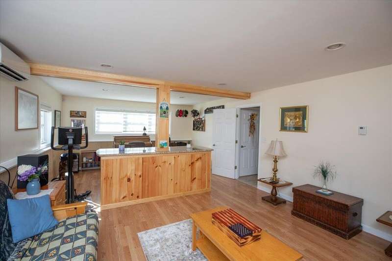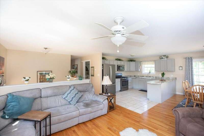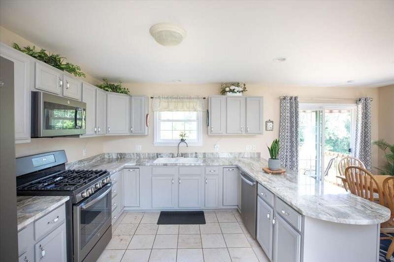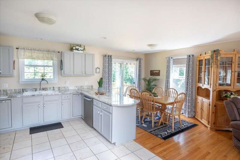 Be impressed by this bright, open home with beautiful hardwood and tile floors. The spacious kitchen with attractive cabinetry and appliances flows to a generous dining area with deck access overlooking a large, private backyard. Living room offers comfort and charm, while the primary bedroom features a walk-in closet and full bath, plus two additional bedrooms and a second full bath. Lower level includes direct entry to a heated two-car garage, laundry room, and a large family room. Throughout the home, you'll find custom-made wooden furniture, stunning woodwork, and ample pantry space. Conveniently located near shopping and in a desirable school district.