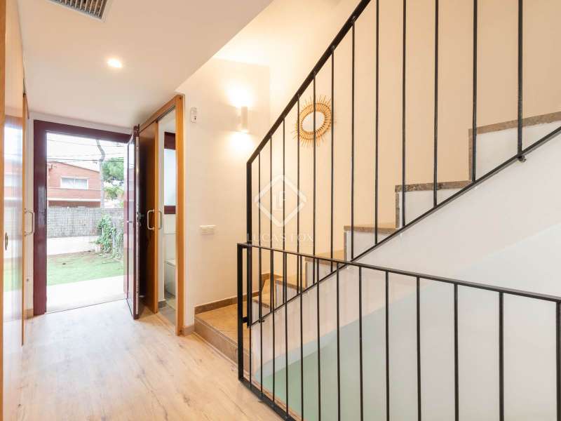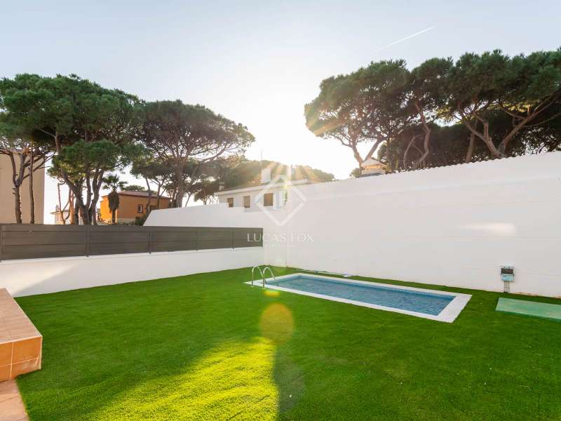 Lucas Fox presents this exclusive, recently renovated townhouse located just one block from the beach in La Pineda, Castelldefels. Thanks to its privileged orientation, it enjoys abundant natural light. It also enjoys great privacy and spaciousness, with rooms connected by glass doors to the exterior. The property boasts a generous 200 m² plot , with a large private garden with a swimming pool and lawn, ideal for relaxing and enjoying the weather. Inside, this modern property features three bedrooms, each with its own private bathroom. Each bedroom has been carefully designed for comfort, with high-quality finishes that enhance the property's elegance. The day area features a living-dining room with a Exterior glass door . The kitchen is separate and fully equipped. There is also a practical storage room and an underground garage for added convenience. Its privileged location in one of the most coveted areas of La Pineda allows you to enjoy tranquility and proximity to the sea. Contact us for more information.
