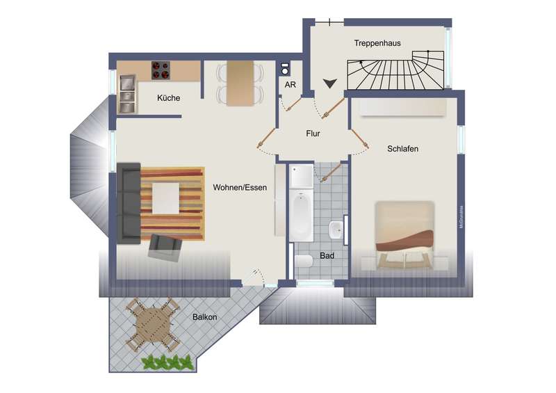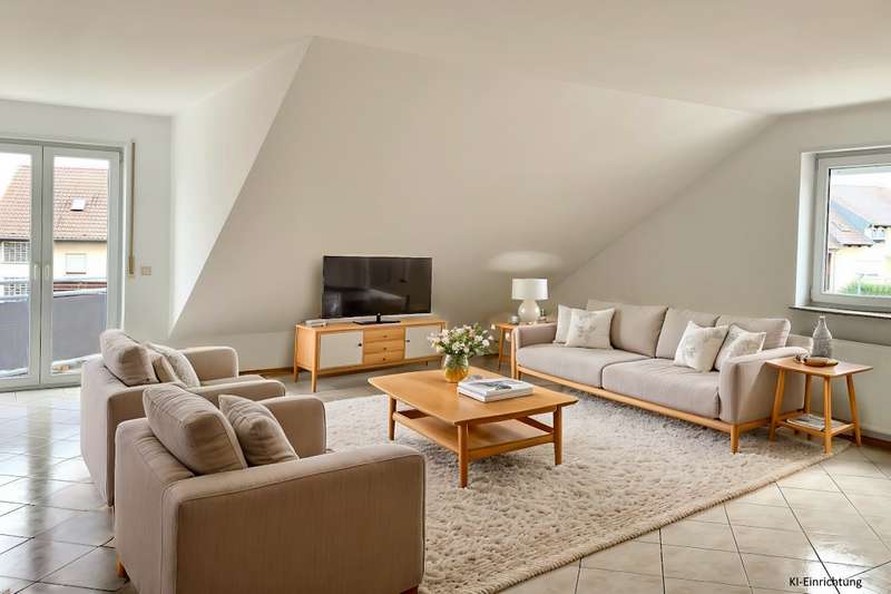 In a quiet side street and yet within walking distance of the main train station, this wonderful top-floor apartment in a six-party building awaits you. The exterior façade, which was repainted in 2023, and the staircase, which was also painted, give the apartment a well-kept appearance. You enter the apartment on the 2nd floor (top floor) and reach the spacious and open-plan living and dining area via the hallway with space for your wardrobe and a storage room. Numerous windows make the room bright and friendly, and the balcony door gives you access to the approx. 12m² south-facing roof terrace. You can cook together with friends and family in the semi-open kitchen. The approx. 16m² bedroom offers enough space for a large bed and space for your closet. A modern bathroom with shower and bathtub completes the floor plan. An outdoor parking space is available for your vehicle on the property. In the basement there is a cellar room and communal laundry, drying and bicycle storage rooms. Additional storage space is available in the attic of the house.