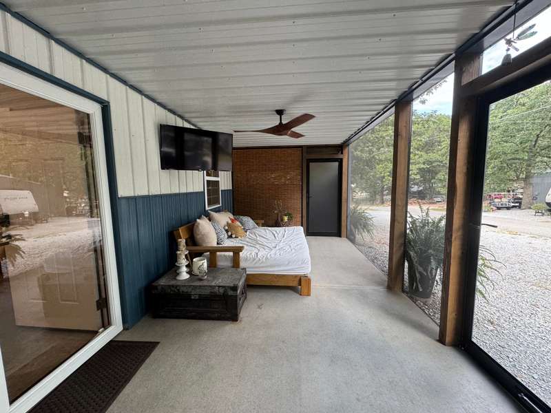 Looking for a place at Grand Lake? This completely remodeled manufactured home features an open floor plan in Woodland Shores. Relax on your large, covered front porch or in your fenced back yard. This 3 bedroom home, with 2 of them, large enough to put a second bed or bunk beds, has an updated bathroom with walk in shower. All kitchen appliances are included. But wait, there is more! There is a 30 x 80 metal building with additional living space! The apartment on the front of the building was just recently completed with a wonderful screened in front porch. Large open kitchen/ living room combo, polished concrete floors, 2 additional bedrooms and large bath with walk in closet. Shop area is insulated and heated with 4 garage bays. Community swim & fishing dock. Call today!