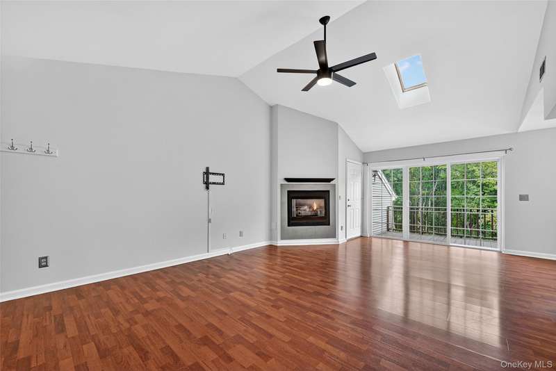 Stunning Top Floor condominium is ready to welcome a new owner. It offers a luxurious living experience with a range of impressive features and modern upgrades. The interior boasts beautiful highend laminent floors that add warmth and sophistication throughout the space. The kitchen has been updated and includes stainless steel appliances, and a convenient breakfast bar, perfect for casual dining or entertaining guests. The property features two bright and sunny bedrooms, each designed to maximize natural light and comfort. There are two full bathrooms, providing ample space and privacy for residents and visitors alike. The living area is enhanced by a cozy gas fireplace, creating a welcoming ambiance, while vaulted ceilings and skylites add a sense of openness and grandeur to the space. Step outside onto the terrace that gives a lush green woodlands view. Located within a vibrant development that gives residents access to an array of amenities. These include an inviting inground pool, a clubhouse, tennis courts for active recreation, and tot lot. The community is ideally situated with easy access to shopping centers, a variety of restaurants, entertainment venues, and outdoor activities. For commuters, the property is just minutes away from West Point Military Academy and Stewart International Airport/Air Force Base, making it a convenient location for service members and their families. Salisbury Mills Train Station is only about five minutes by car, providing easy connections to surrounding areas and beyond.