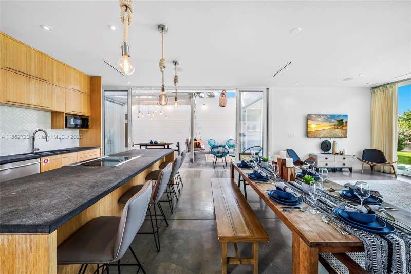 Villa Tulum is a waterfront retreat in Miami’s sought-after Upper East Side, where modern comfort blends with a tropical lifestyle. Located on an 11,000 sq.ft. lot, this 2017-built estate is designed for seamless indoor-outdoor living. The main residence offers an airy open-plan living and dining area, sleek kitchen, 4 bedrooms, and a breezy covered patio. A detached two-story guest house includes a 2-bedroom loft with kitchen and bath+maid’s quarters and storage. Outdoors, lush gardens surround an infinity pool overlooking the Miami River, complemented by a new private dock for boats up to 65 feet with direct access to the bay. Ready to move in, this property is perfect for those seeking a tranquil primary home, a vacation escape, or a smart investment in a rapidly growing neighborhood.