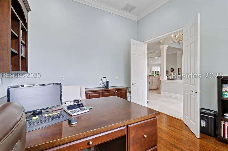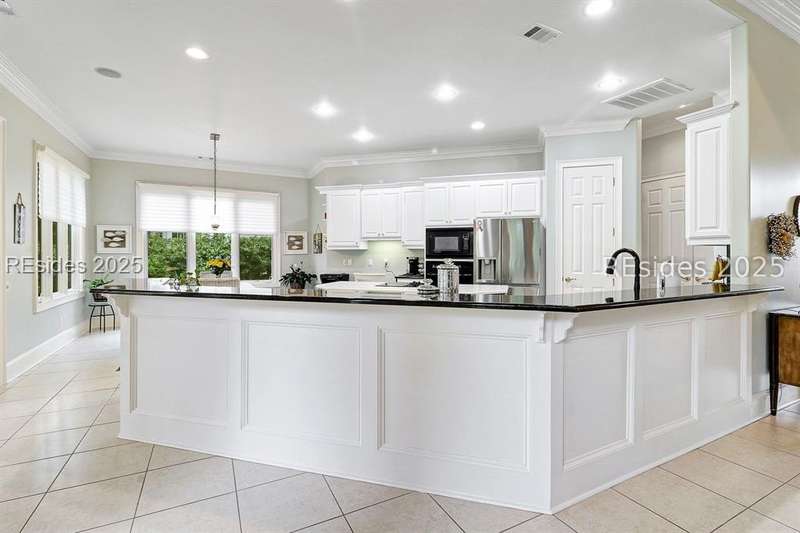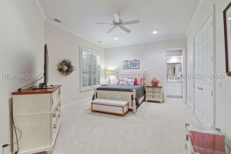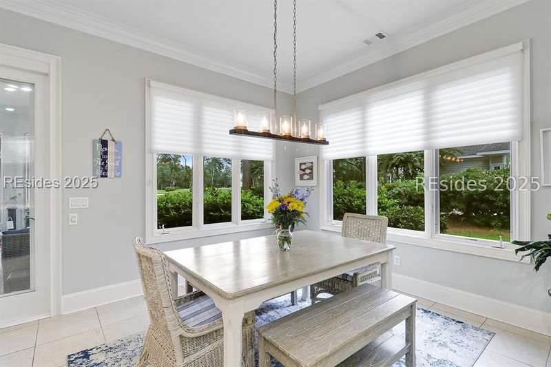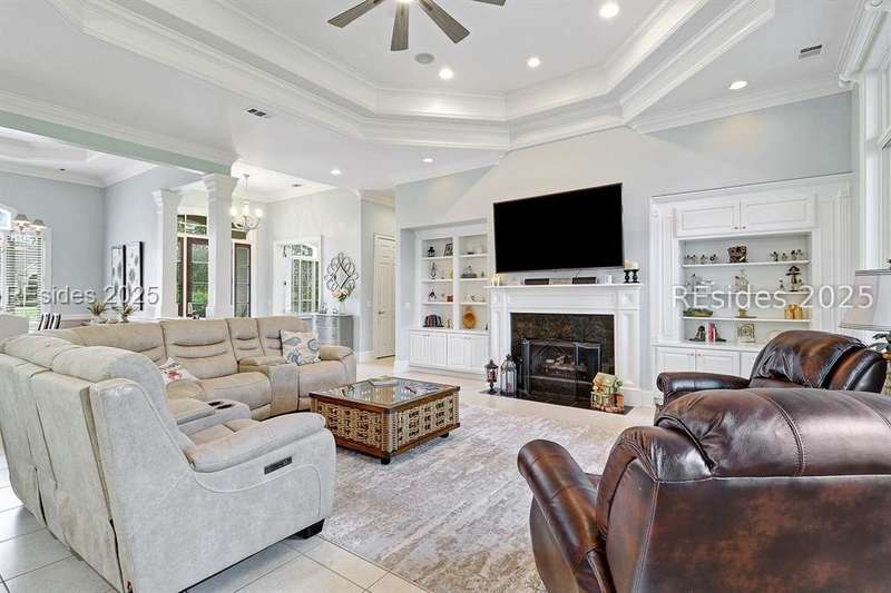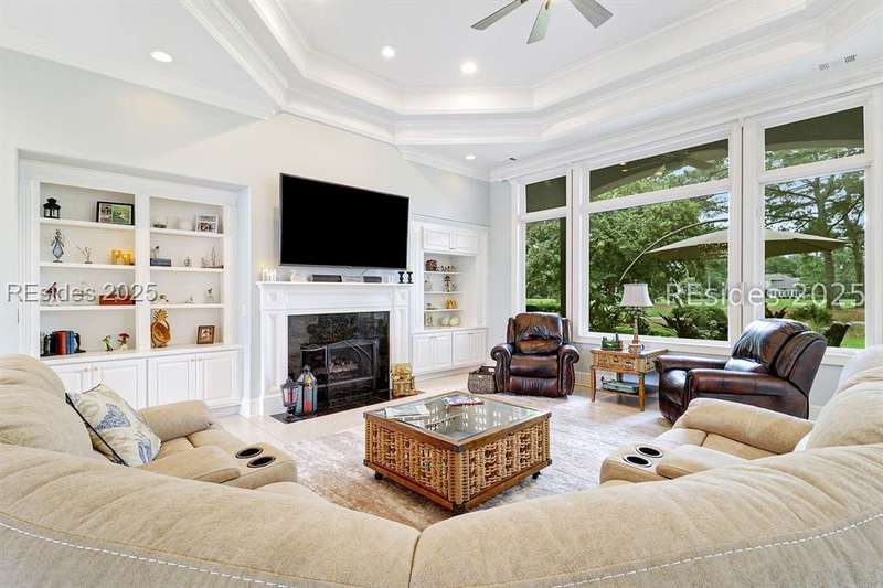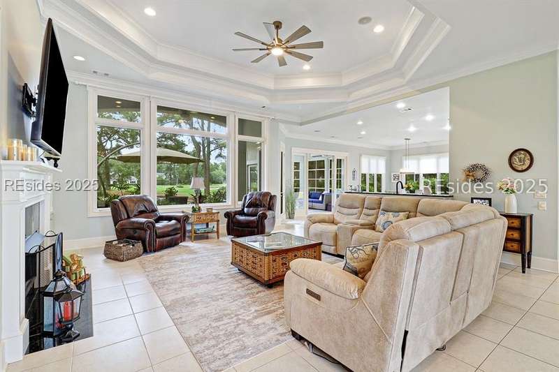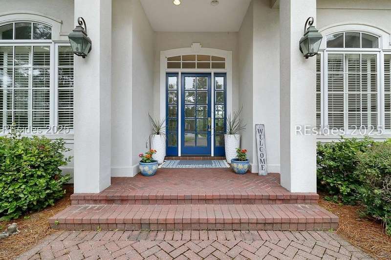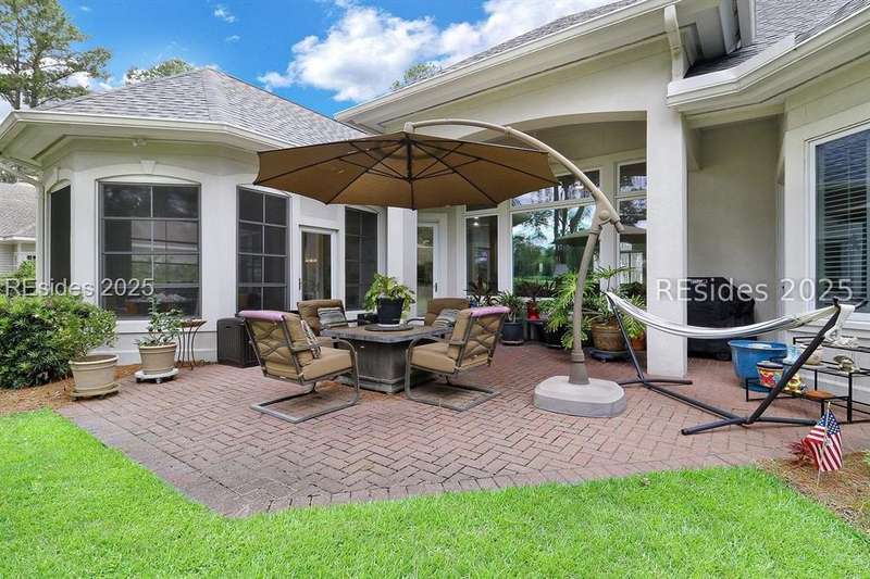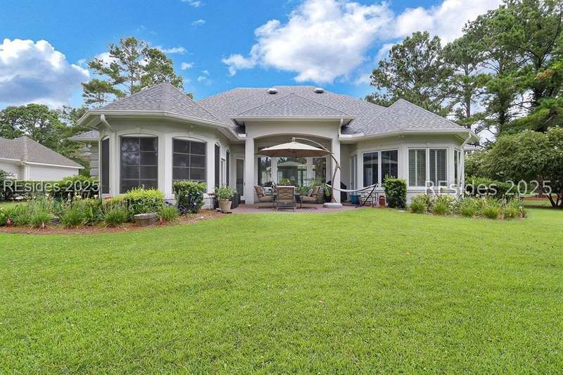 This well-maintained 4-bedroom, 4.5-bath home sits on the 2nd hole of Belfair's West Course and offers stunning golf course views from the large windows in the light-filled great room. The open-concept floor plan flows seamlessly from room to room, ideal for both everyday living and entertaining. The eat-in kitchen features new stainless steel appliances, dual pantries, and cabinet roll-out drawers for maximum convenience. Enjoy excellent bedroom separation, including a spacious upstairs bonus room with a kitchenette and full bath perfect for guests or multi-generational living. Relax year-round in the enclosed sunroom with an EZE-Breeze vinyl/screen system and dedicated HVAC split unit. Additional highlights include a three-car garage, walk-in attic, paver driveway, and plenty of storage throughout. Room for a pool and a brand new roof in Dec of 2024! Ideally located midway between the Belfair clubhouse and lifestyle center. 3,882 SF including the 4-season room.