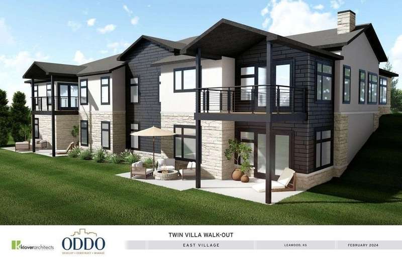 The Avon Twin Villa on Lot 9A, built by Oddo Construction, LLC is currently at planning stage. This stunning Reverse 1.5 Story home has a stone exterior featuring a 2 car garage, 4 bedrooms, 2.1 baths. The main level boasts a serene primary bedroom suite along with a second bedroom on main floor that can be transformed into a private office, perfect for work or relaxation. In the Lower Level, you’ll find 2 additional bedrooms sharing a bathroom with a large family room offering comfort and privacy for family or guests. East Village of Leawood is one of the newest planned communities in Johnson County! The community will feature a 2-acre park, future clubhouse with workout room and outdoor pool. Plus, walking trails that will connect you with nearby restaurants and a coffee shop. Your Life In Luxury!