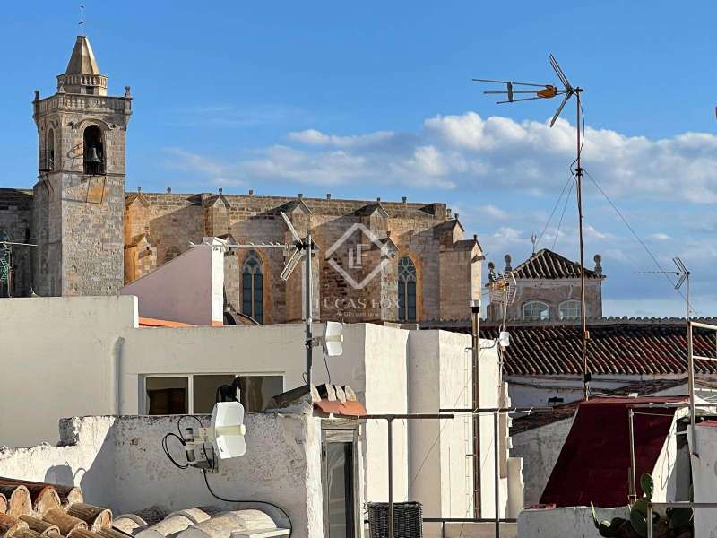 Lucas Fox exclusively presents this wonderful 200 m² house with a patio and terrace on a pedestrian street in the historic center of Ciutadella de Menorca. The property is spread over four floors. The ground floor welcomes us with a spacious entrance hall with a typical wooden beamed ceiling. From here, we access an open-plan living room that connects to the sandstone staircase leading to the upper floors. There is also a bright kitchen and a spacious living room, both with access to the 15 m² patio with a covered area with a cistern and utility room. On the first floor, there is a double bedroom on one side, and on the other, through a hall with a wardrobe area, there are two large bedrooms with two bathrooms. On the second floor, there is a loft room that can be used as an optional bedroom , another double bedroom , and a bathroom. On the upper floor, there is a 30 m² terrace with a solarium on two levels, offering beautiful views of the old town and the cathedral. The house is in good condition and only needs updating. It has an alarm system. Without a doubt, this is an ideal property for year-round living or spending time with family and/or friends. Contact us for more information or to arrange a viewing.