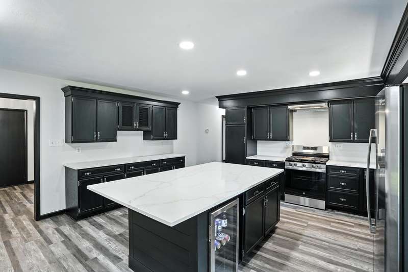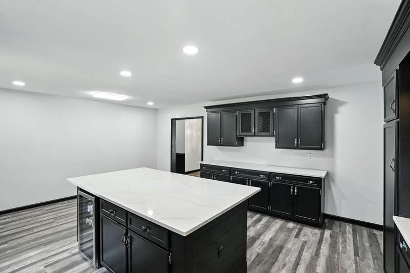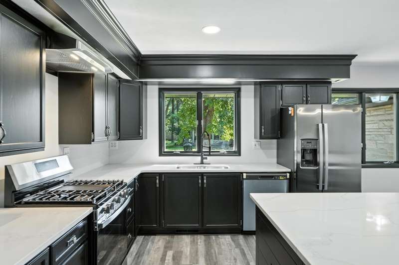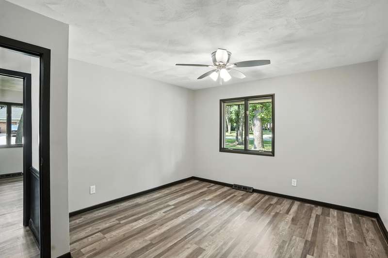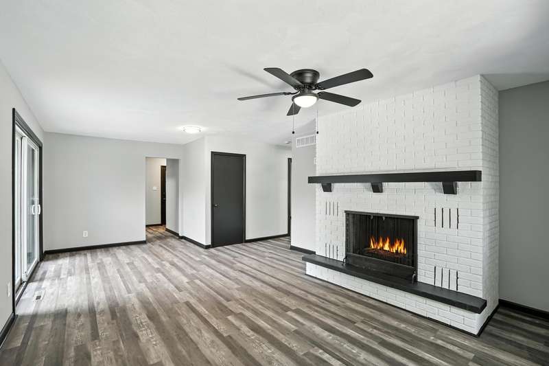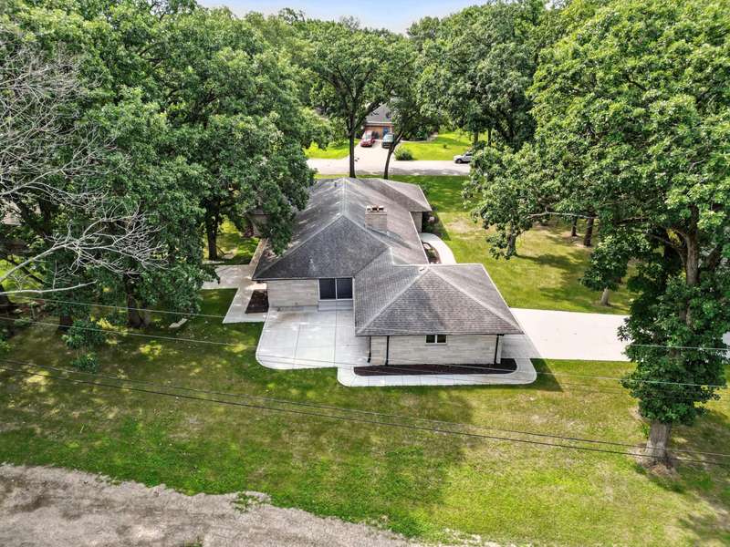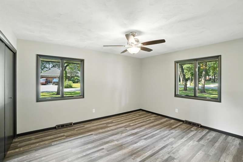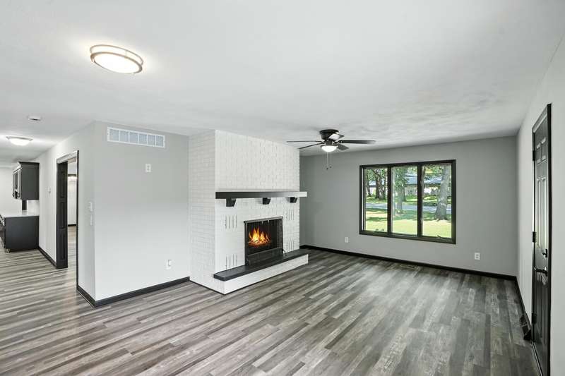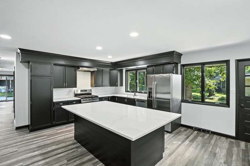 Beautifully updated limestone ranch in Dyer, Indiana, located in desirable St. John Township and served by the Lake Central School district. A prime location for those commuting to Illinois and anyone looking to enjoy the shopping, dining, and recreational amenities Indiana has to offer. This spacious home offers over 2,300 square feet of well-designed living space, including 4 bedrooms and multiple living areas. The standout kitchen features new quartz countertops, modern appliances, an oversized island with seating, generous storage, and a built-in mini-fridge. The primary bedroom includes an ensuite bathroom, and the flexible Den/Dining Room with double glass doors provides a perfect space for work or entertaining. You'll find both a large Living Room and a separate Family Room--each with a wood-burning fireplace and gas starter--offering warmth and character. With new LVP flooring throughout, large windows, and all of these updates, this home will be easy to move in and start enjoying the neighborhood. Enjoy the outdoors with two expansive patios and a large yard situated on a corner lot with mature trees. The finished 2-car garage includes a new door and an epoxy floor, and the basement with painted floors adds valuable extra space. This home combines comfort, functionality, and location--ready for you to move in and enjoy.