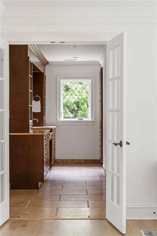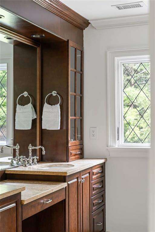 Stunning English Estate in Buckhead Nestled on 2.15 acres of breathtaking grounds, this exquisite English estate offers resort-style living in the heart of Buckhead. From manicured gardens to a sparkling Pebble Tec pool, every detail evokes the serenity of a private European villa. Inside, sunlight pours through newly installed windows, illuminating fresh paint, trim, and floors. Graceful arched doorways connect the living, dining, sitting, and sunroom, all opening to a sweeping slate terrace with panoramic garden views. The showpiece kitchen is a chef's dream, featuring an oversized island, walk-in pantry, double wine cooler, and coffee bar. A main-level ensuite bedroom offers comfort and flexibility. Upstairs, the generous primary suite is a sanctuary with a limestone fireplace, spa-inspired bath with double vanity, two lavatories, garden tub, and oversized shower, plus a walk-in closet and private beverage center. Three additional bedrooms, two bathrooms, a laundry room, and a versatile landing complete this level. The lower level features a three-car garage (two tandem + one), mudroom, fitness room with rubber flooring, sauna, and full bath-with convenient access to the pool and gardens. Exterior details include hand-carved granite stonework, a slate roof, working greenhouse, outdoor fireplace, limestone and bronze statuary, and a cascading fountain-creating a timeless sense of grandeur. The home is only minutes from vibrant shopping, dining, and the recreation options of central Buckhead. Easy access to I-75 and very close proximity to Lovett, Westminster, and North Atlanta High. This is more than a home-it's an everyday retreat. Schedule your private tour and allow time to stroll the grounds, where each corner reveals the artistry and tranquility of estate living.