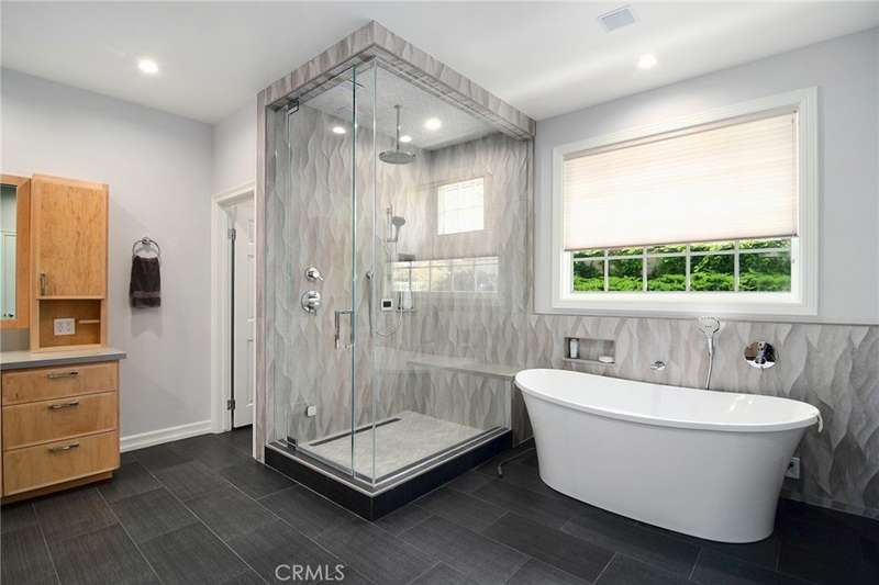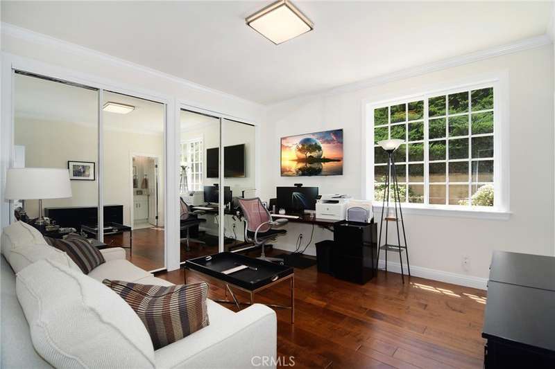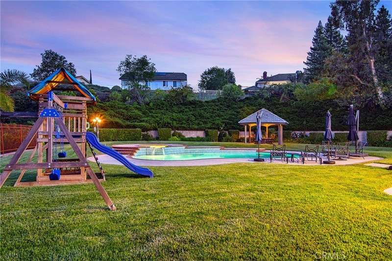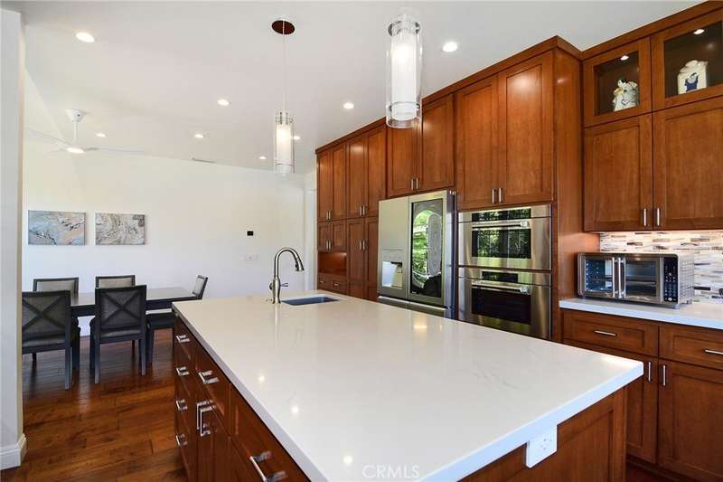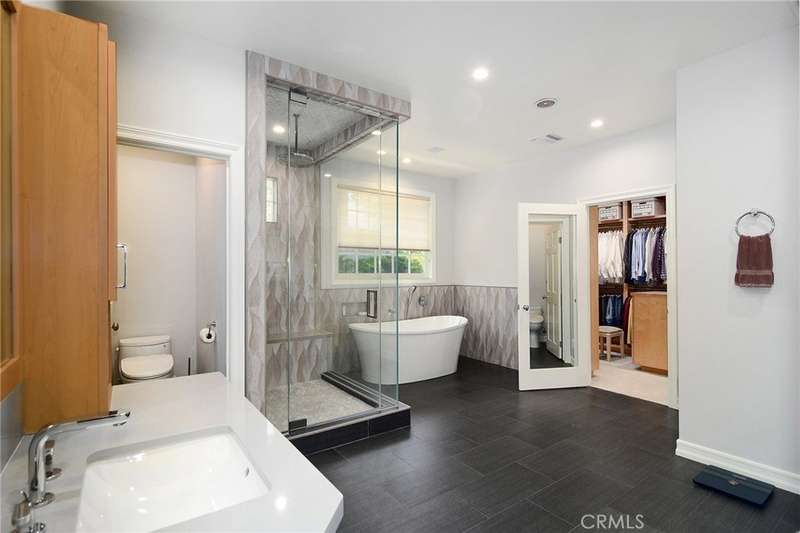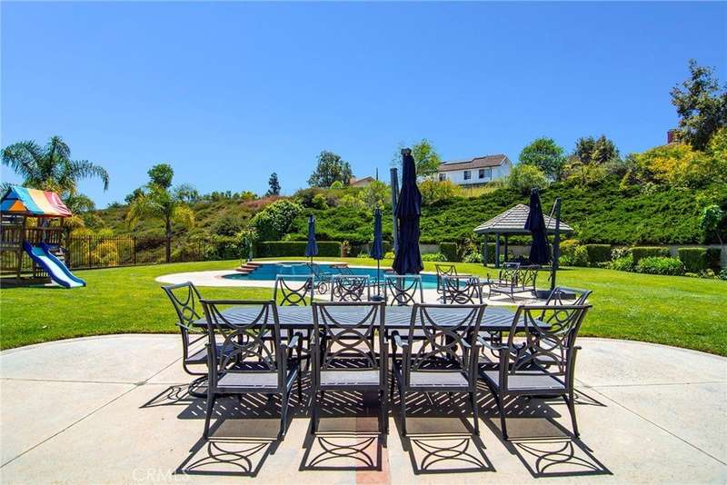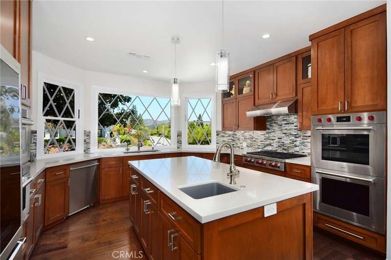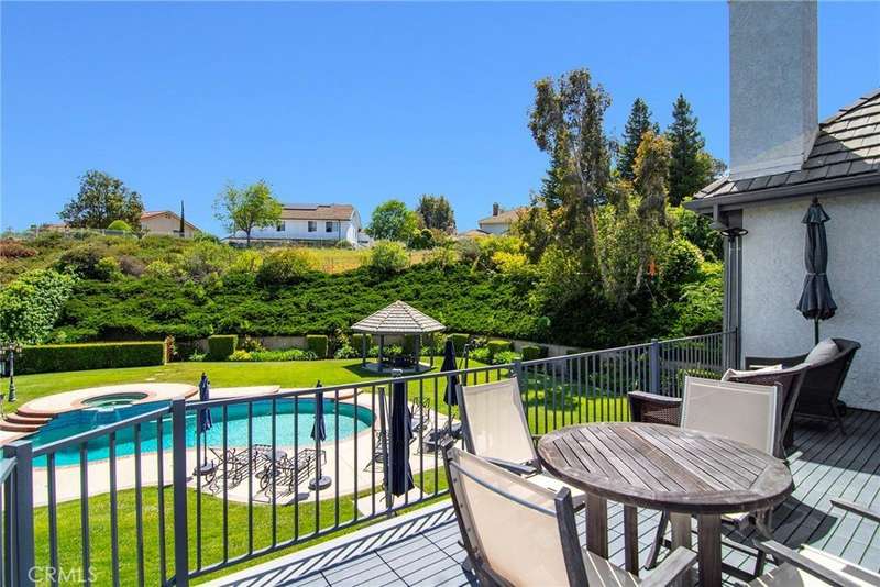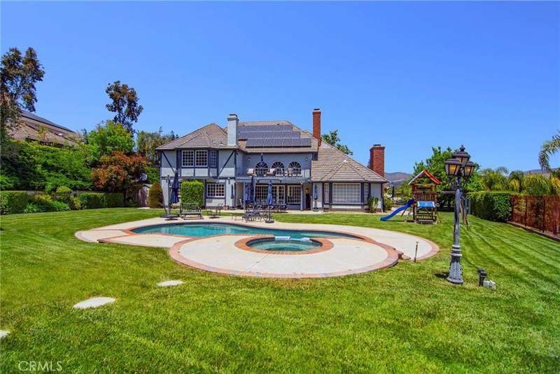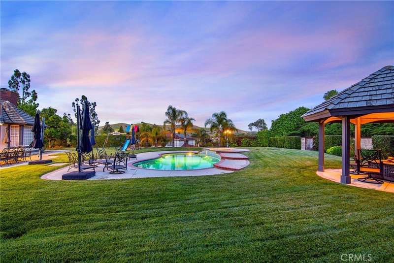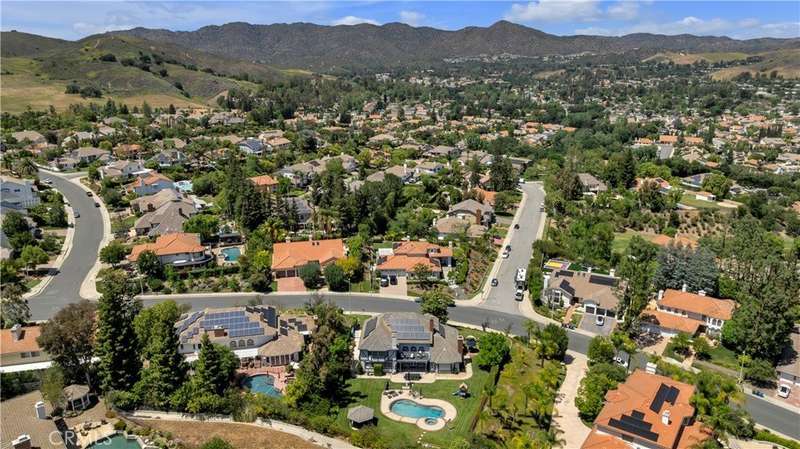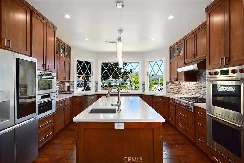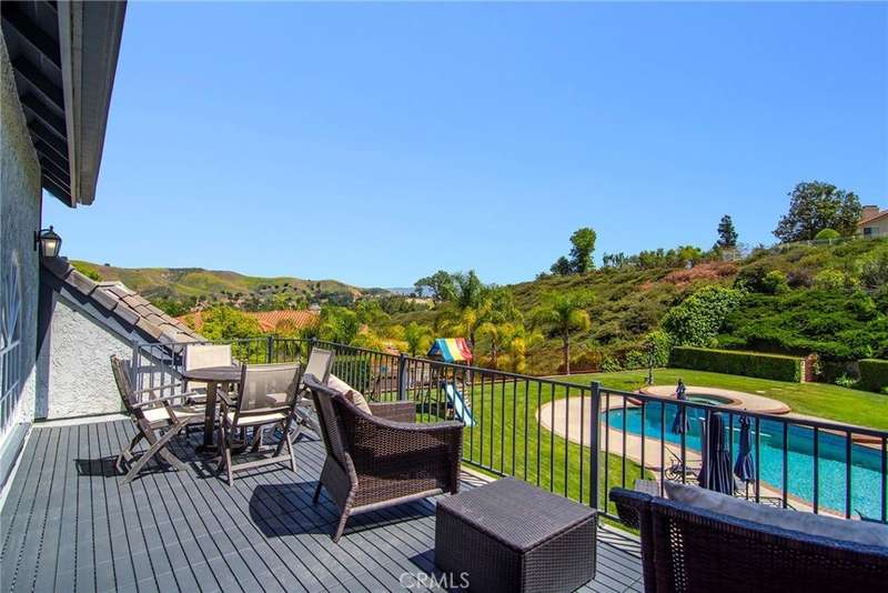 Welcome to this exceptional residence nestled in the prestigious Morrison Highlands community. Situated on a spacious lot with panoramic views, this beautifully upgraded home offers the ultimate in comfort, technology, and indoor-outdoor living. Enjoy resort-style amenities in your expansive backyard featuring a sparkling pool and spa, gazebo with lighting, lush lemon and grapefruit trees, a fire pit, and a natural gas BBQ. A removable pool fence ensures flexibility for family fun or elegant entertaining. Inside, the completely remodeled chef’s kitchen is a culinary dream, boasting custom maple cabinetry, quartz countertops, a large center island with sink and storage, and premium Wolf and LG Signature appliances—including four ovens, a built-in steam convection oven, and a see-through refrigerator with an auto-opening door. A butler’s pantry adds even more functionality. The luxurious upstairs primary suite is a true retreat, with a private balcony, a custom walk-in closet with built-in dresser, and a spa-inspired bathroom complete with soaking tub, steam shower, dual water closets, and Toto bidet washlets. This home also features a professionally built, 10-seat home theater—featured in two audio-video magazines—fully equipped with smart iPad controls. The theater equipment was upgraded just four years ago. Designed with smart living in mind, the home includes motorized shades in the primary bedroom, a Ring alarm system, smart controls for lighting, thermostats, irrigation, and pool equipment, as well as digital locks on all exterior doors. The garage is wired for EV charging and supported by owner-owned solar panels. Located in the highly regarded Las Virgenes School District, this rare offering blends luxury, innovation, and timeless comfort in one of the area’s most coveted neighborhoods.
