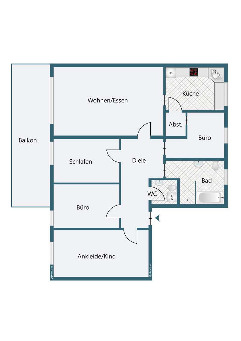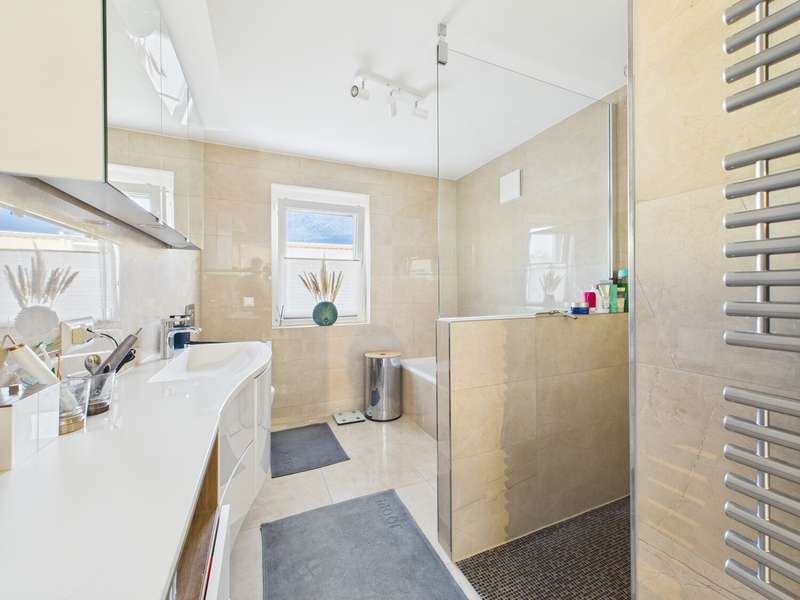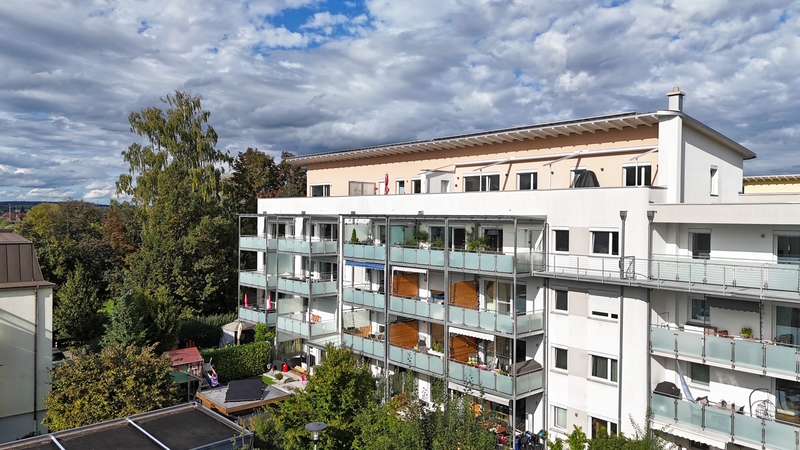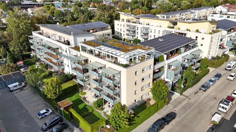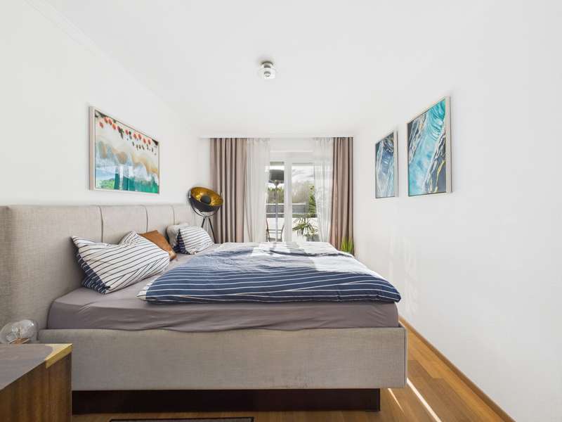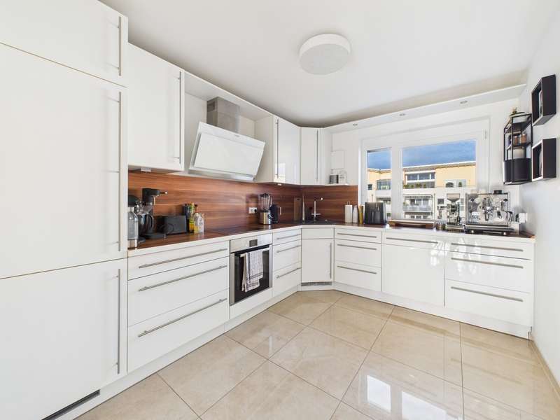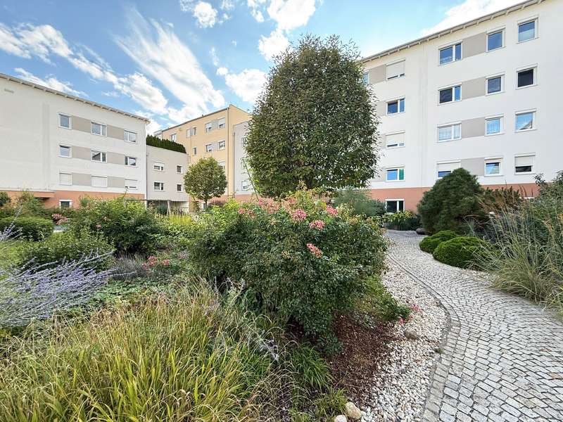 This exceptionally spacious 5-room apartment is situated in a prime location in Landshut, directly on the idyllic Flutmulde. With around 124 m² of living space, it offers a stylish home for families or discerning couples who want to combine urban living with relaxation close to nature. Built in 2014, the building is part of a well-kept residential complex with a park-like inner courtyard and boasts high-quality construction and modern technology. The apartment is located on the 4th floor and impresses with its well thought-out floor plan: The centerpiece is the spacious living and dining area with almost 30 m², all-round ceiling spotlights and direct access to the impressive south-west-facing balcony. With an area of over 22 m², privacy screen and glass roofing, it can be used as a lounge, dining and barbecue area in equal measure - a real highlight for sun lovers and connoisseurs. In addition to the master bedroom of approx. 18 m², there are two children's bedrooms and a further study or guest room - ideal for a home office or family life. The separate kitchen with modern fitted kitchen and adjoining pantry is accessible via a stylish sliding door. The high-quality bathroom with bathtub, rain shower, built-in furniture and window is complemented by a separate guest WC with its own washing machine connection. The fittings include underfloor heating, parquet and tiled floors, triple-glazed windows, electric blinds, fly screens and central ventilation with heat recovery. A spacious cellar room and two underground parking spaces (plus €20,000 each) round off the offer. The location speaks for itself: the train station and city center can be reached in just a few minutes, and shopping facilities, kindergarten and leisure activities are in the immediate vicinity. This apartment combines urban comfort, high-quality fittings and plenty of space in one of Landshut's most sought-after residential areas.