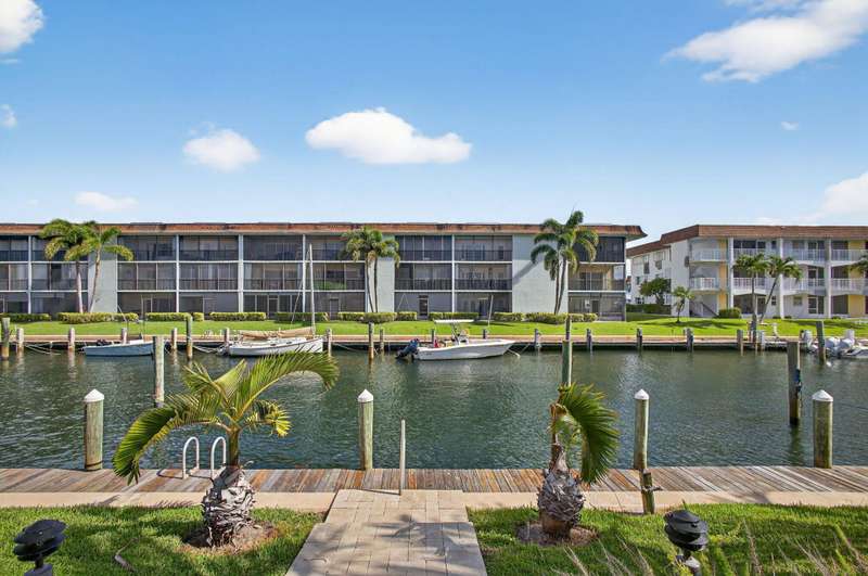 Live on the water! Neat as a pin and a great price! Beautiful one bedroom, one bathroom available on the 3rd floor with newly updated kitchen, featuring granite countertops and white soft close shaker cabinets. Enjoy serene water views from the bedroom and balcony. This unit has been freshly painted and renovated with new neutral carpet throughout, laminate flooring in kitchen, hurricane impact windows, doors and slider, accordion shutters, new appliances and water heater and a brand new a/c, updated electrical and lighting. New roof! Lake Colony is an over 55 community. Boat slips are available to lease inexpensively from the association, first come first serve. Central location near NPB Country Club and I-95, 10 min. to beaches.