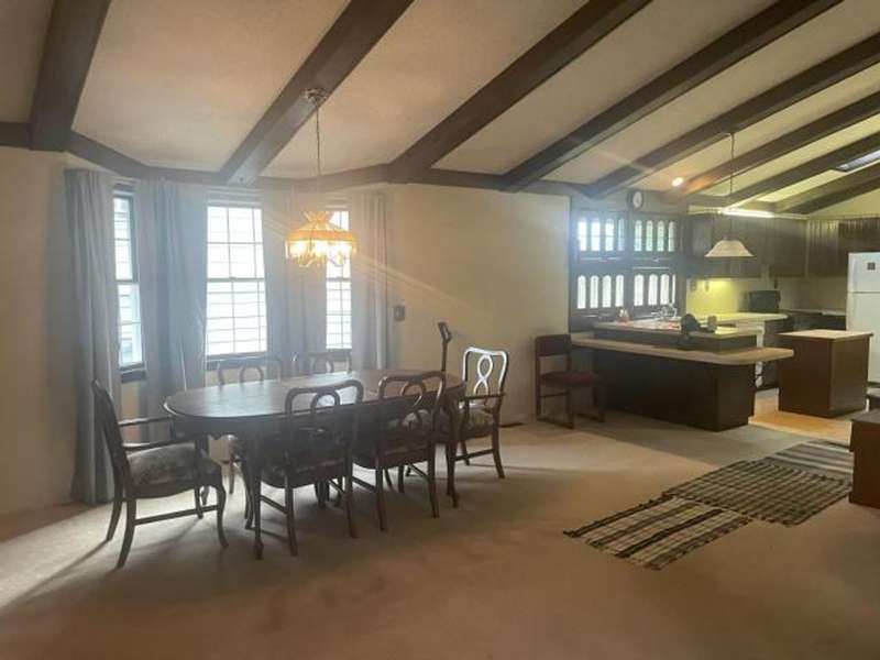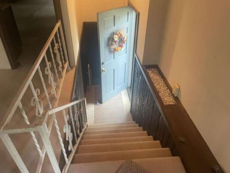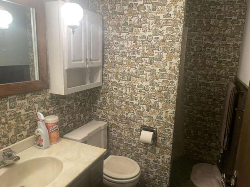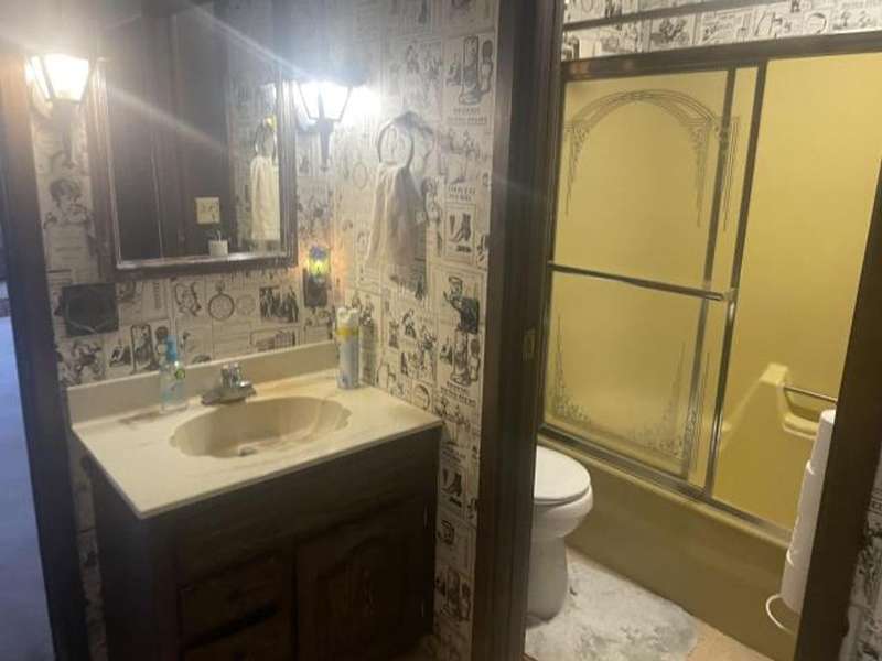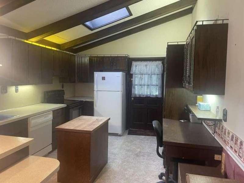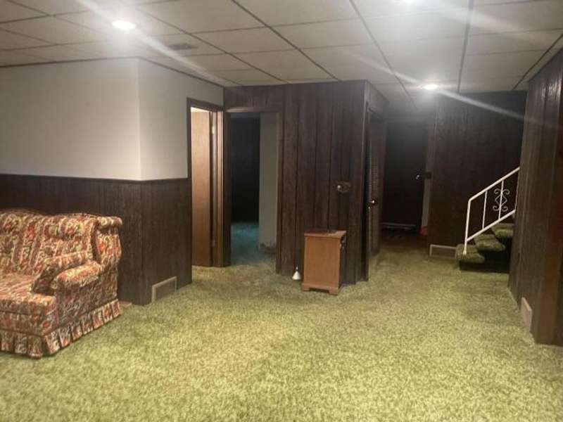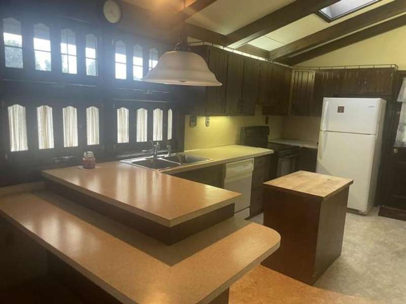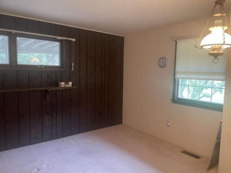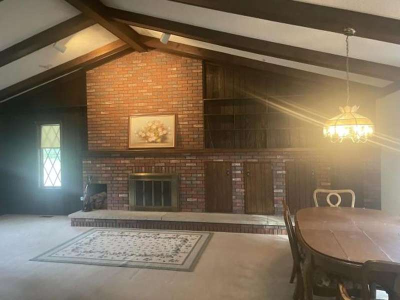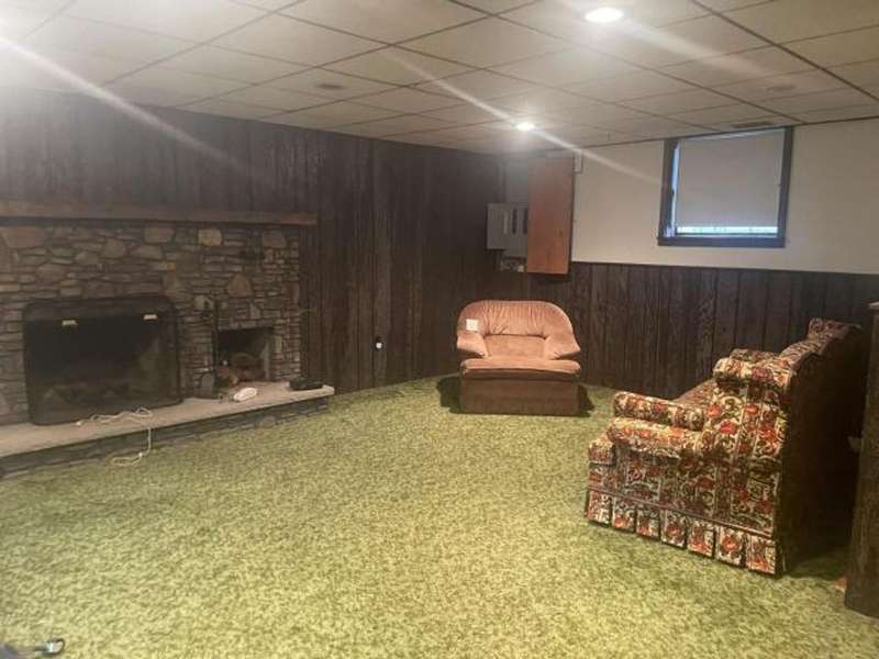 This home features an open concept living space. The large living/dining room area has a cathedral ceiling, a beautiful wood burning fireplace with plenty of built-in storage. The main bedroom is on the first floor. The lower level has an extra large family room with a stone wood burning fireplace, full bath, bedroom, and laundry room with outside access. The deck leads off from the kitchen making it convenient to enjoy outside eating or just a relaxing place to unwind. The back yard has a cement pad that would be ideal for adding a garage or pavilion. Updates include metal roof, gas meter and lines, furnace & hot water heater. Washer & dryer included along with kitchen appliances With a little TLC this can be a beautiful home.