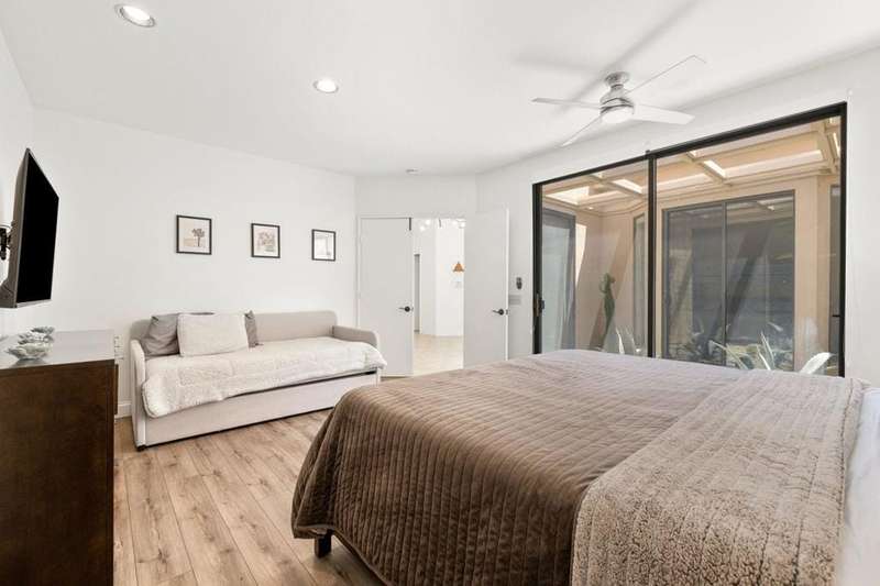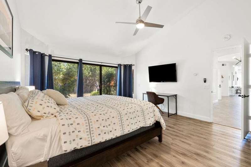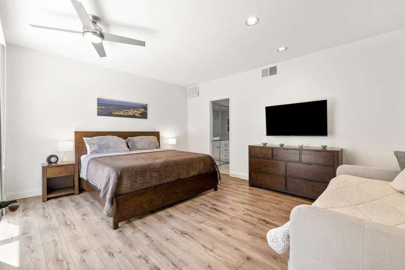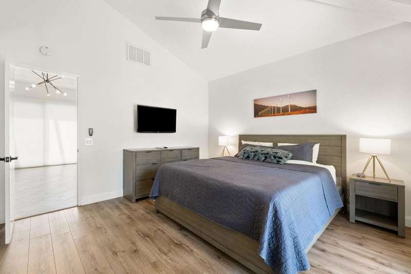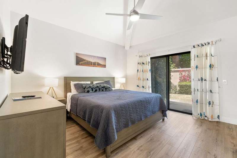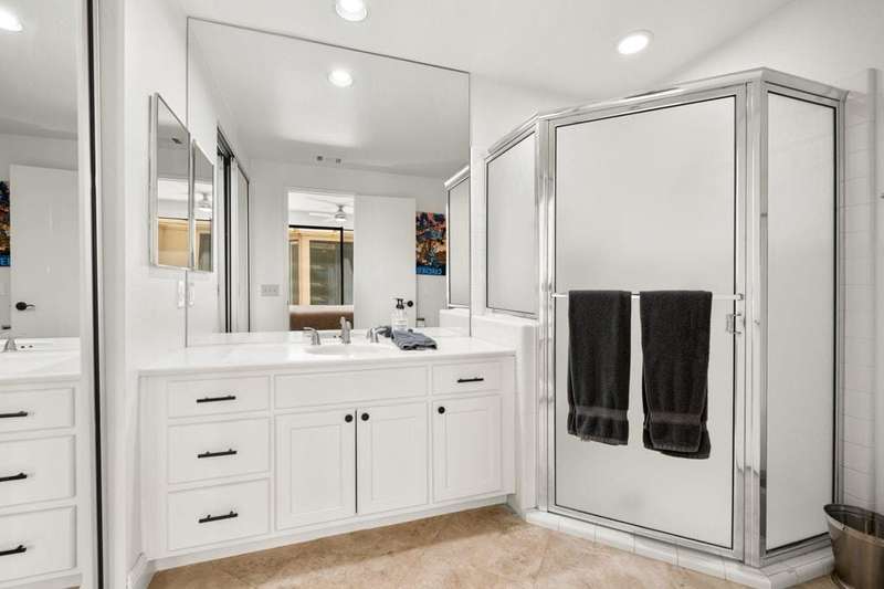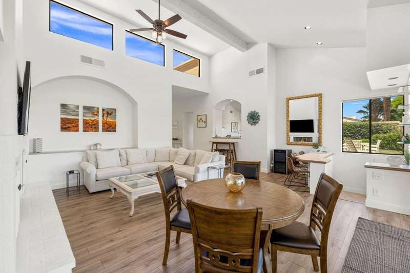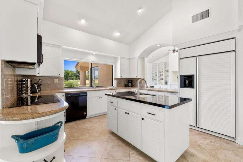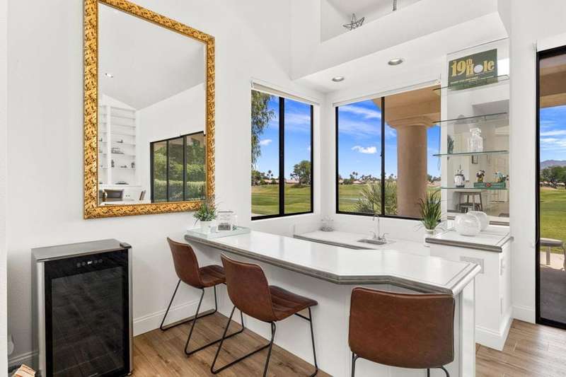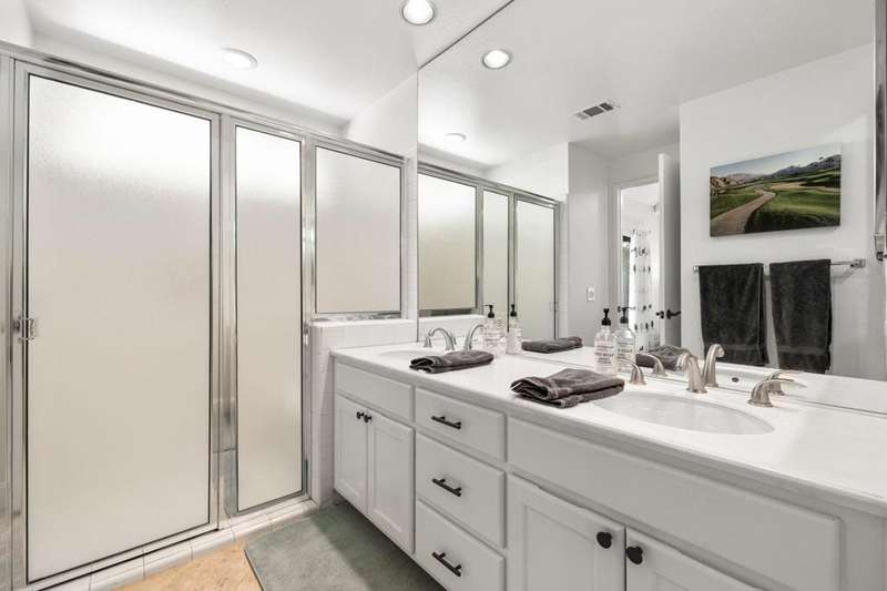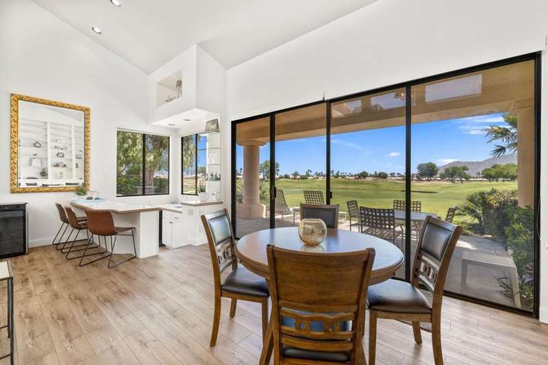 This is a fantastic PGA West unit with Southern mountain views and overlooks the 5th hole of the famed Stadium Course, home of the PGA tours American Express tournament. This gorgeous remodeled, turnkey furnished home has 4 bedrooms, 3 and a half bathrooms and is conveniently located next to a pool and spa. Outdoor living at its finest with a large private side yard and an expansive rear patio complete with built in BBQ and fire pit to take in the phenomenal views. This is desert living at its finest.