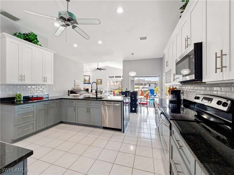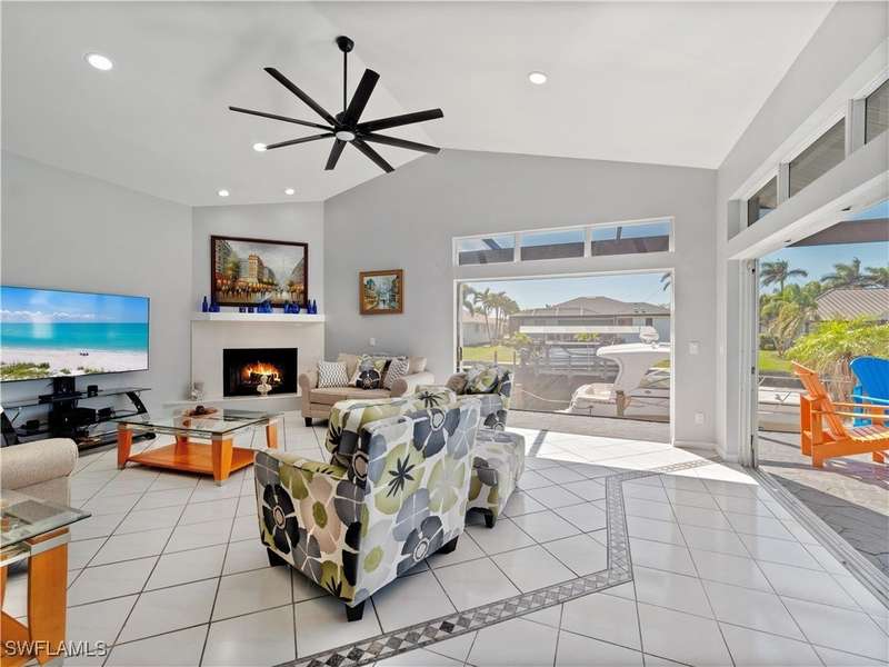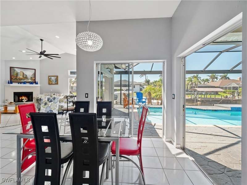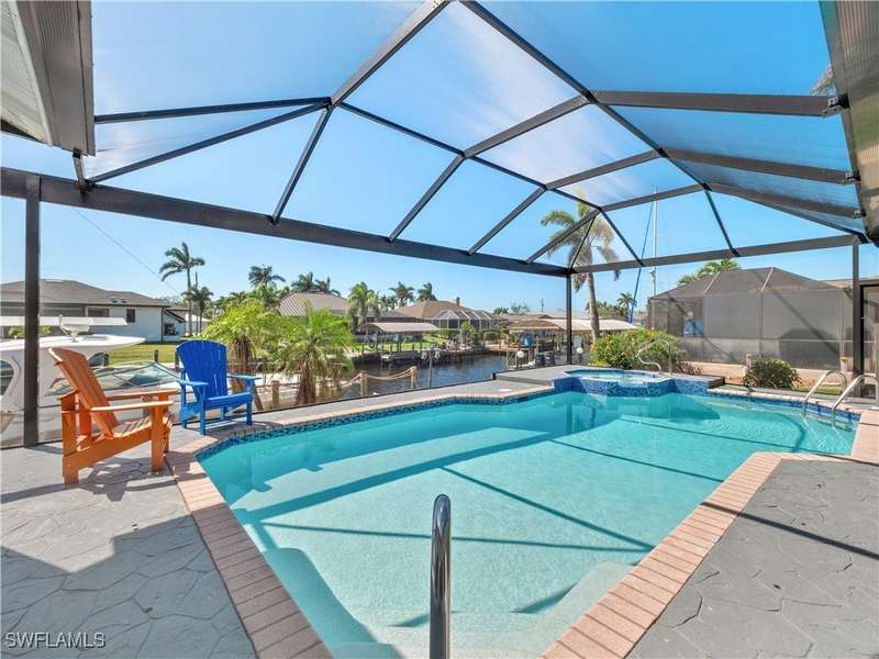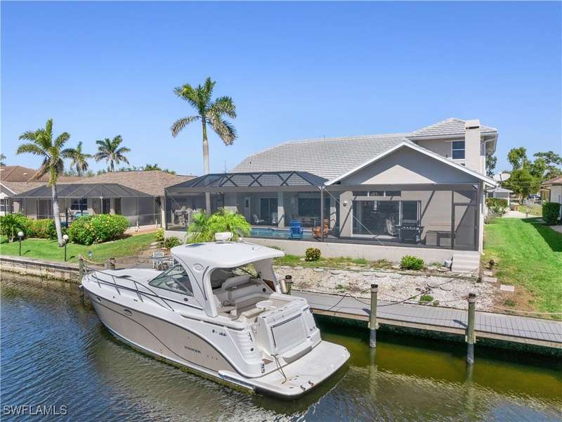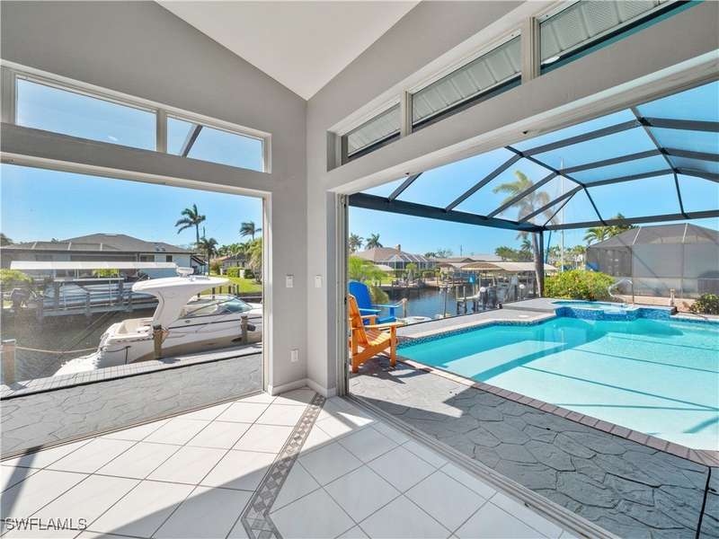 Boater's Paradise with Sailboat Access in SW Cape Coral. This exceptional 4-bedroom + den, 4-bathroom home with a 2-car garage offers the perfect location for boating enthusiasts. Situated on a deep sailboat-access canal, the property accommodates large boats with direct Gulf access-no bridges, no locks-ideal for those who love to cruise the waters in style. Inside, the home has been beautifully updated, featuring a newly renovated kitchen with granite countertops, new stainless steel appliances, and a spacious breakfast bar perfect for casual dining or entertaining. The open floor plan flows effortlessly into the formal living and dining areas, where soaring ceilings create a bright and welcoming atmosphere. The cozy family room, complete with a fireplace, is perfect for those relaxing evenings. The first-floor master suite offers privacy and easy access to the lanai, while the updated master bath provides a spa-like retreat with dual sinks, a vanity area, a jetted tub, and a walk-in shower. Step outside to the southern-exposure lanai, where you can enjoy the sun and tranquil canal views. The pool and integrated hot tub have been newly refinished and are both solar- and electric-heated for year-round enjoyment. Additional updates include a newer tile roof (2022) and newer AC units. This home is ideally located just a 5-minute walk to shopping, dining, and all the amenities you need. With quick boat access to Tarpon Point, Rumrunners, Safe Harbour, Gas and the Gulf. You'll be living the ultimate Florida lifestyle with everything you need right at your doorstep.