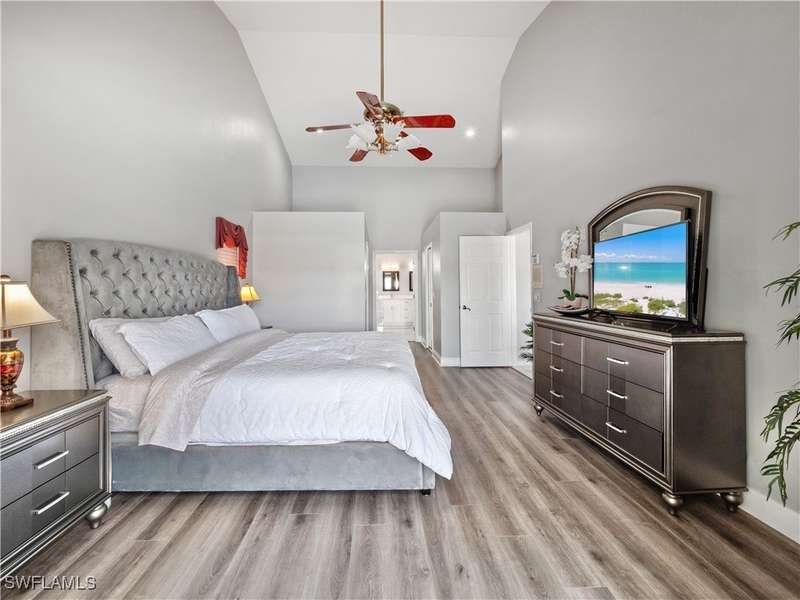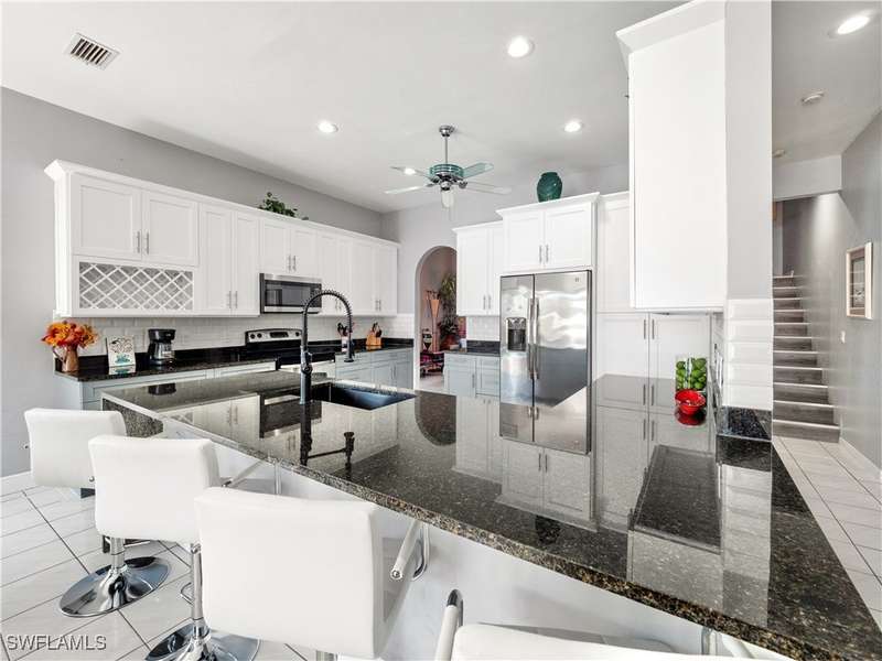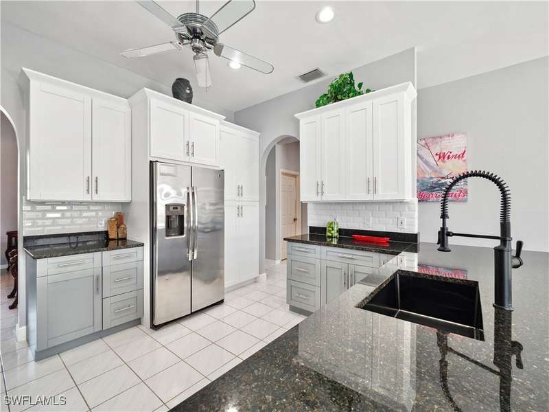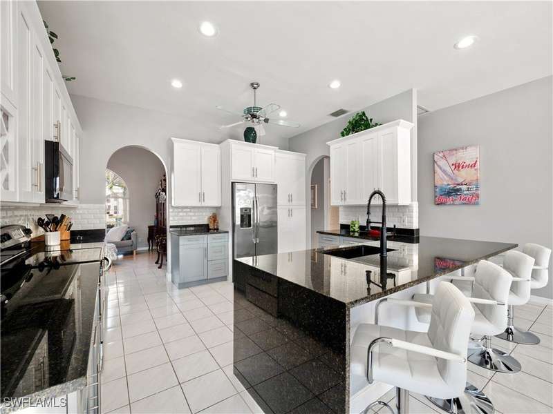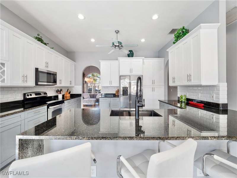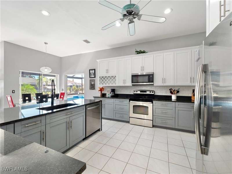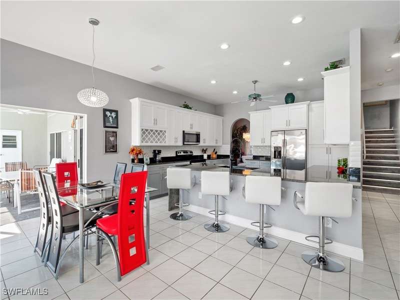 Boater's Paradise with Sailboat Access in SW Cape Coral. This exceptional 4-bedroom + den, 4-bathroom home with a 2-car garage offers the perfect location for boating enthusiasts. Situated on a deep sailboat-access canal, the property accommodates large boats with direct Gulf access-no bridges, no locks-ideal for those who love to cruise the waters in style. Inside, the home has been beautifully updated, featuring a newly renovated kitchen with granite countertops, new stainless steel appliances, and a spacious breakfast bar perfect for casual dining or entertaining. The open floor plan flows effortlessly into the formal living and dining areas, where soaring ceilings create a bright and welcoming atmosphere. The cozy family room, complete with a fireplace, is perfect for those relaxing evenings. The first-floor master suite offers privacy and easy access to the lanai, while the updated master bath provides a spa-like retreat with dual sinks, a vanity area, a jetted tub, and a walk-in shower. Step outside to the southern-exposure lanai, where you can enjoy the sun and tranquil canal views. The pool and integrated hot tub have been newly refinished and are both solar- and electric-heated for year-round enjoyment. Additional updates include a newer tile roof (2022) and newer AC units. This home is ideally located just a 5-minute walk to shopping, dining, and all the amenities you need. With quick boat access to Tarpon Point, Rumrunners, Safe Harbour, Gas and the Gulf. You'll be living the ultimate Florida lifestyle with everything you need right at your doorstep.