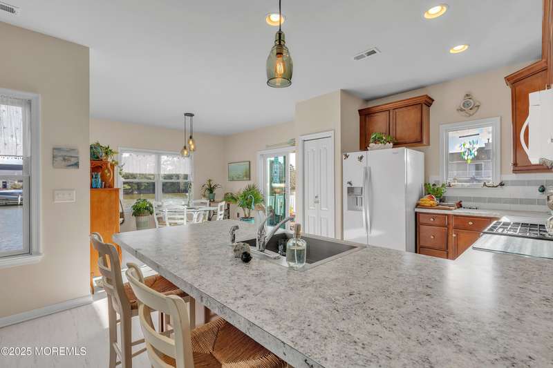 Custom Built in 2014 Raised ranch with spectacular panoramic water Views. The Private dead end street and Wide lagoon makes this home a tranquil retreat. Open concept living with 9' ceilings and coastal decor are perfect for entertaining. The maintenance free deck and yard overlooking the water with the vinyl bulkhead and dock with ample room for your boat and water toys! Come and enjoy this move in ready wonderful property.