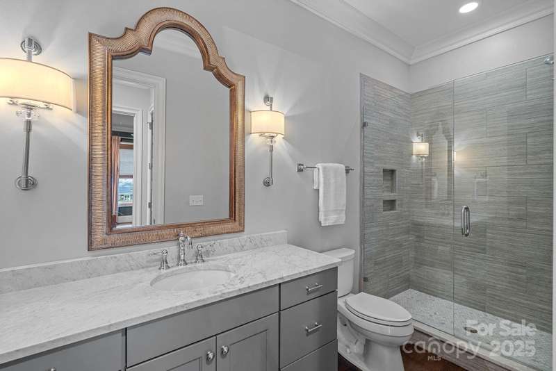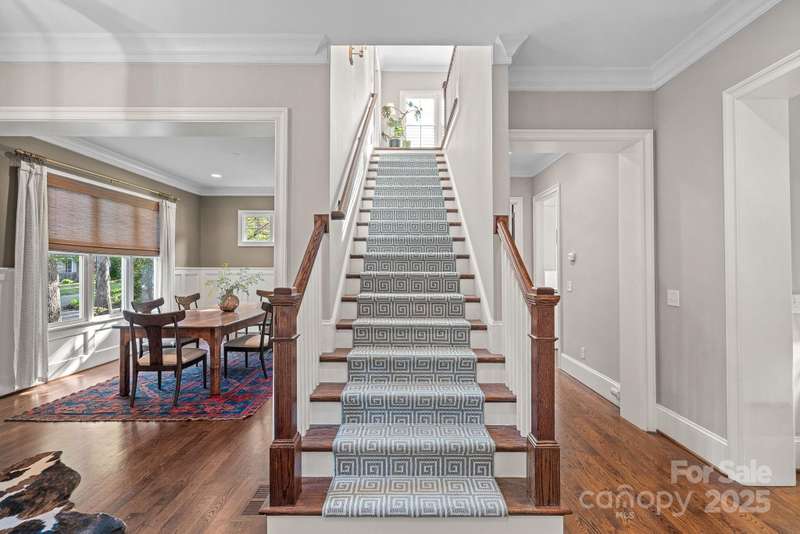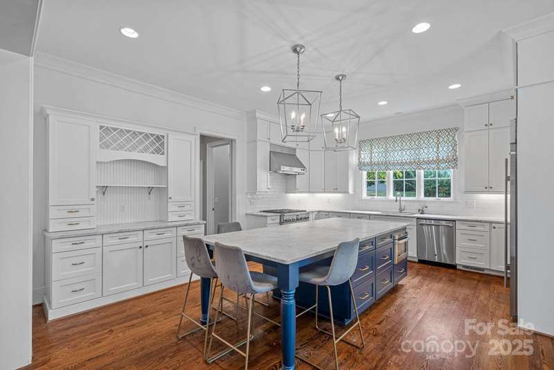 Welcome to Cotswold! Built in 2015, this exceptional 5-bedroom, 6-full bath home offers a modern open floor plan w/10 ceilings on the main floor, creating an airy, spacious feel throughout. The gourmet kitchen features marble countertops, cabinets that extend to the ceiling, sub-zero fridge, and a walk-in pantry. It flows seamlessly into the living and dining areas, perfect for entertaining. Private guest suite on the main floor doubles as a home office, adding versatility and convenience. Four bedrooms on the 2nd floor, each w/private bath. 3rd floor huge bonus room with full bath. Mudroom w/desk space becomes home central, leads to detached garage and hobbyist's dream shed, fully equipped w/power, heating, and air. Enjoy outdoor living with a screened porch that features powered screens for easy adjustments, plus a cozy patio with string lights for fire pit gatherings. The all-brick exterior, circular drive, and location on the desirable Ashworth Rd make this home truly special.