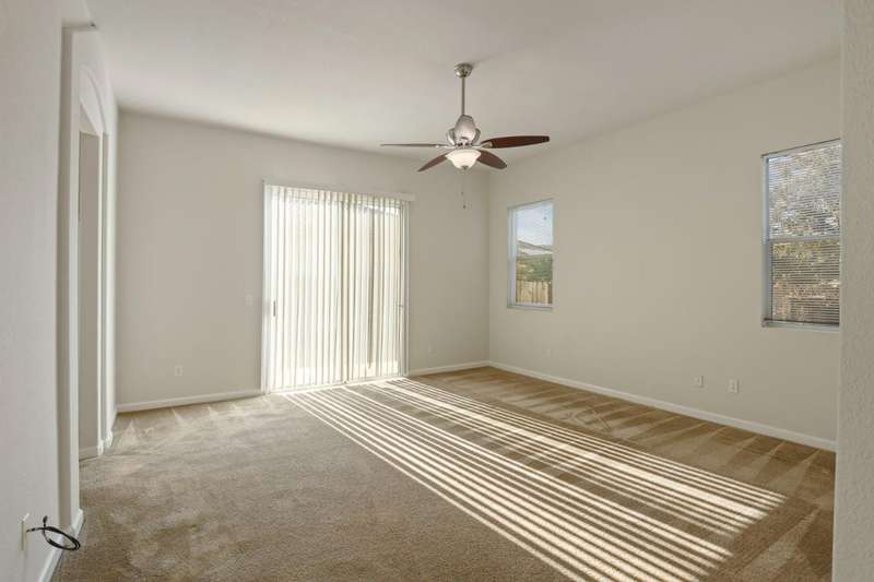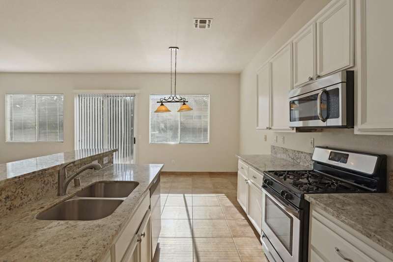 Welcome to 2402 Sailboat Court! This beautiful single story home offers over 2100 sq. ft of living space on a desirable corner lot in a peaceful cul-da-sac. Featuring 3 bedrooms plus a den(optional 4th bedroom), 2 full bathrooms, and a 3 car garage, this property is designed for both comfort and functionality. Step inside to find high ceilings, tiled flooring throughout (with carpet in the bedrooms), and an inviting open-concept layout. The spacious kitchen is equipped with granite countertops, a large breakfast bar overlooking the family Rm, and a cozy dining area with a fireplace-perfect for everyday living. A formal dining and living Rm provide additional space to gather, while double doors open to the versatile den, ideal as a home office or guest Rm. The primary suite is a relaxing retreat, complete with a ceiling fan, sliding glass door with backyard access, dual walk-in closets, dual vanities, a soaking tub, and a separate shower. Outdoors, the backyard features extensive concrete work on both sides of the home, offering plenty of space for entertaining, play or future customization. The front yard's hardscaped landscaping provides great curb appeal, with room to add your personal touches. Don't miss the chance to make this spacious, well-designed home your own.